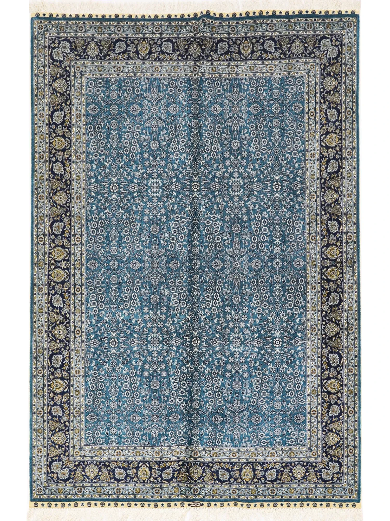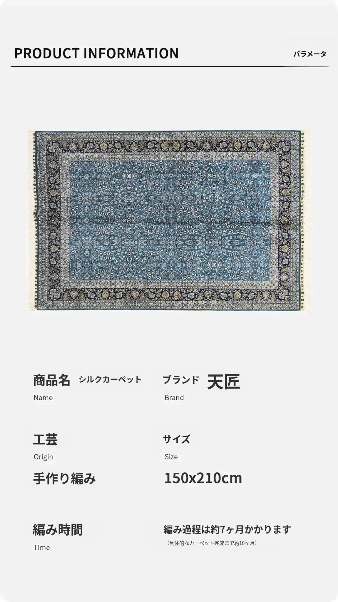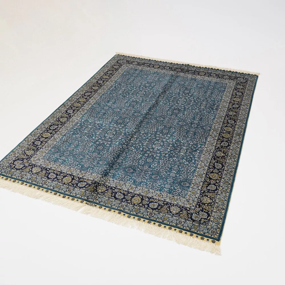 天匠手作の本格シルクカーペット - ペルシャ柄デザイン、南陽の伝統工芸、150x210cmの手作り美しいラグで、あなたの空間を華やかに彩ります。