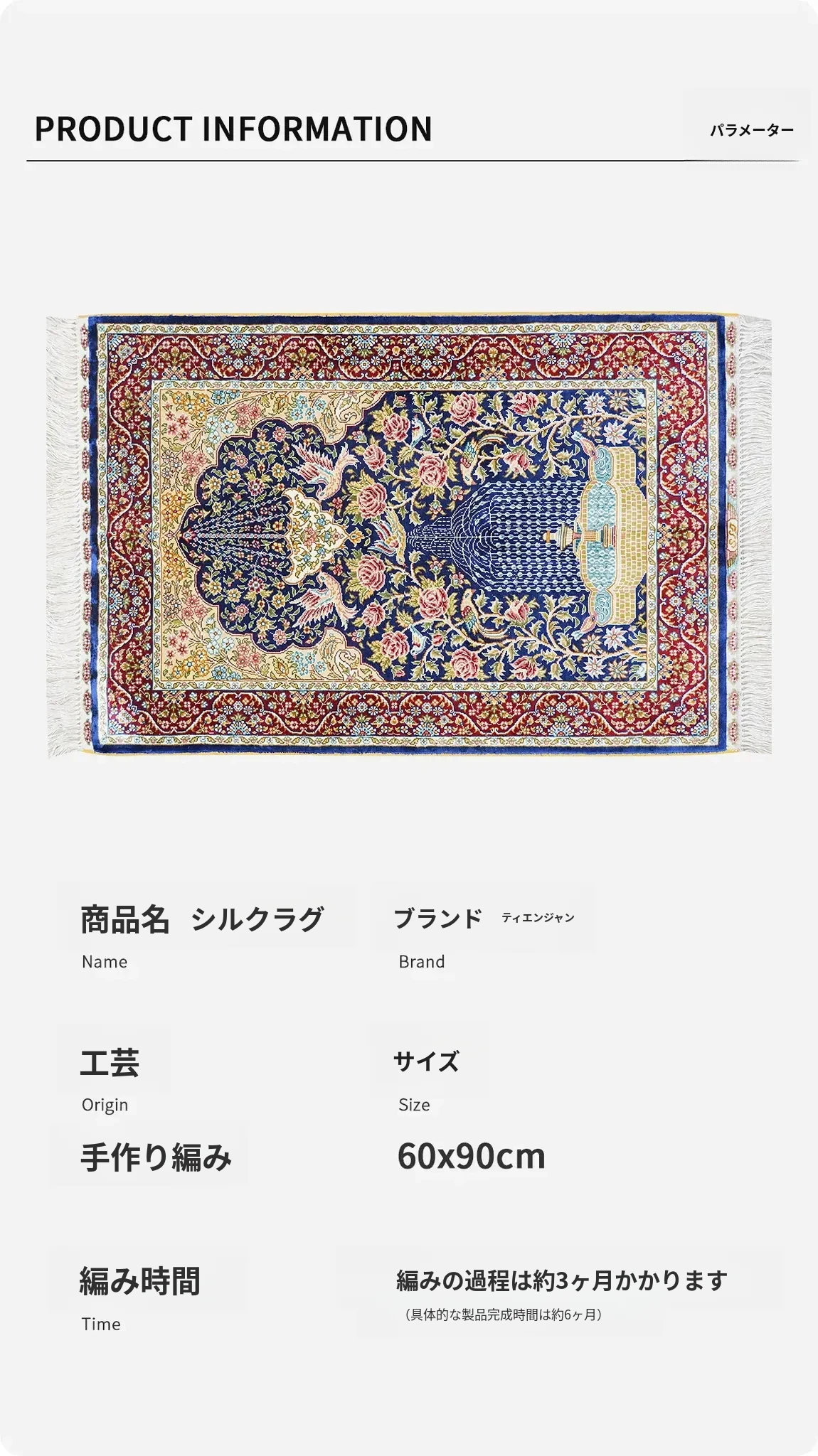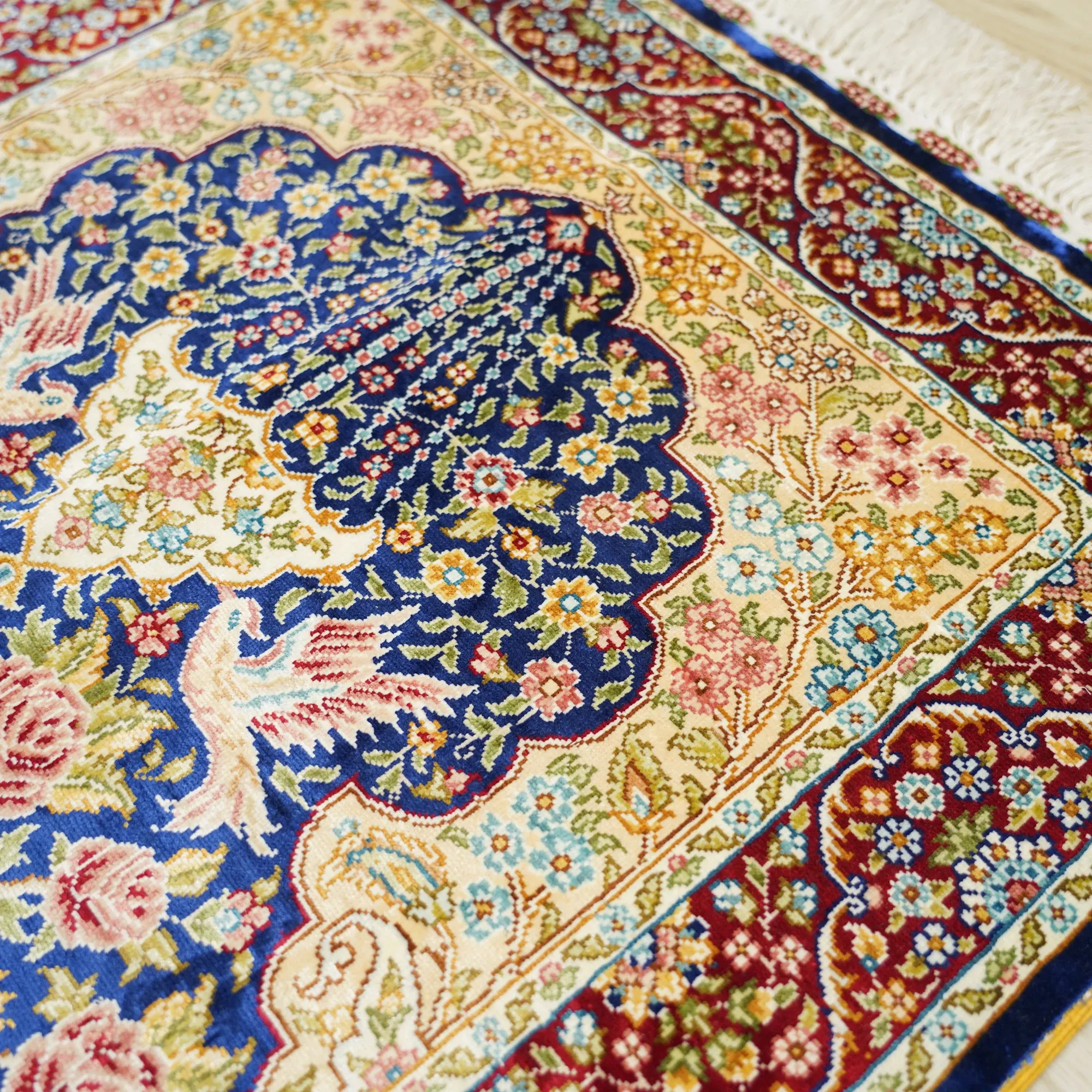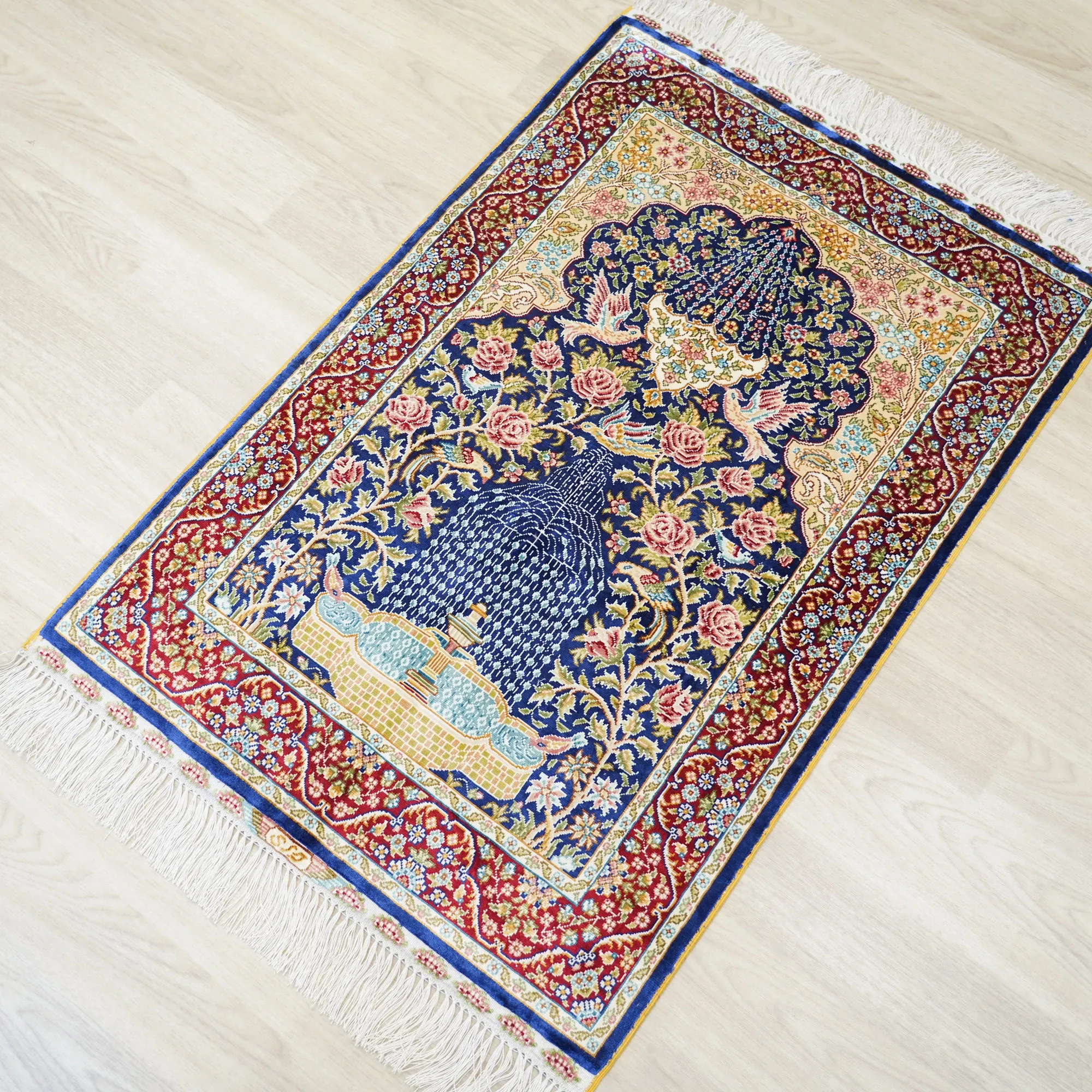 手作りシルクカーペット - 天匠のペルシャラグ、リビングや寝室にぴったり!トルコ製、中東スタイル、60x90cmの絶妙なサイズで、優雅さと高級感を演出します。