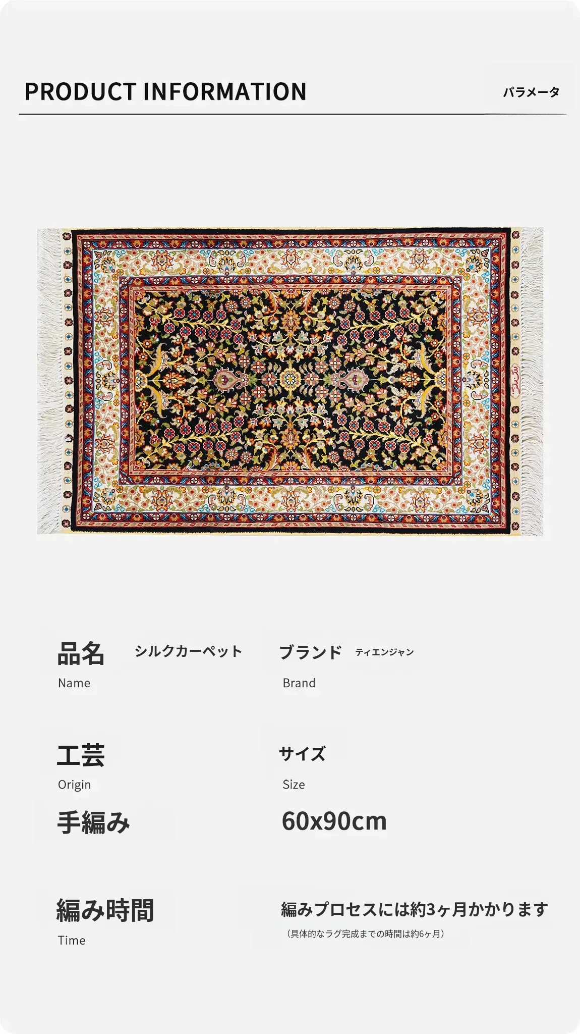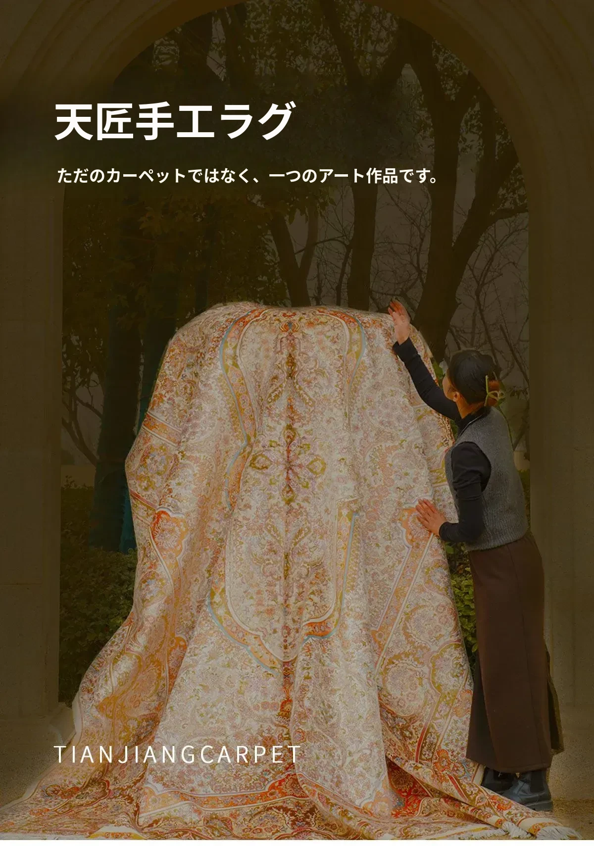 天匠手作シルクカーペット ペルシャタペストリー ヴィラ用カーペット 古典アメリカン・フレンチスタイル 60x90cm 美しいインテリアを演出。贅沢な手触りと優雅なデザインで、あなたの空間を格上げします!