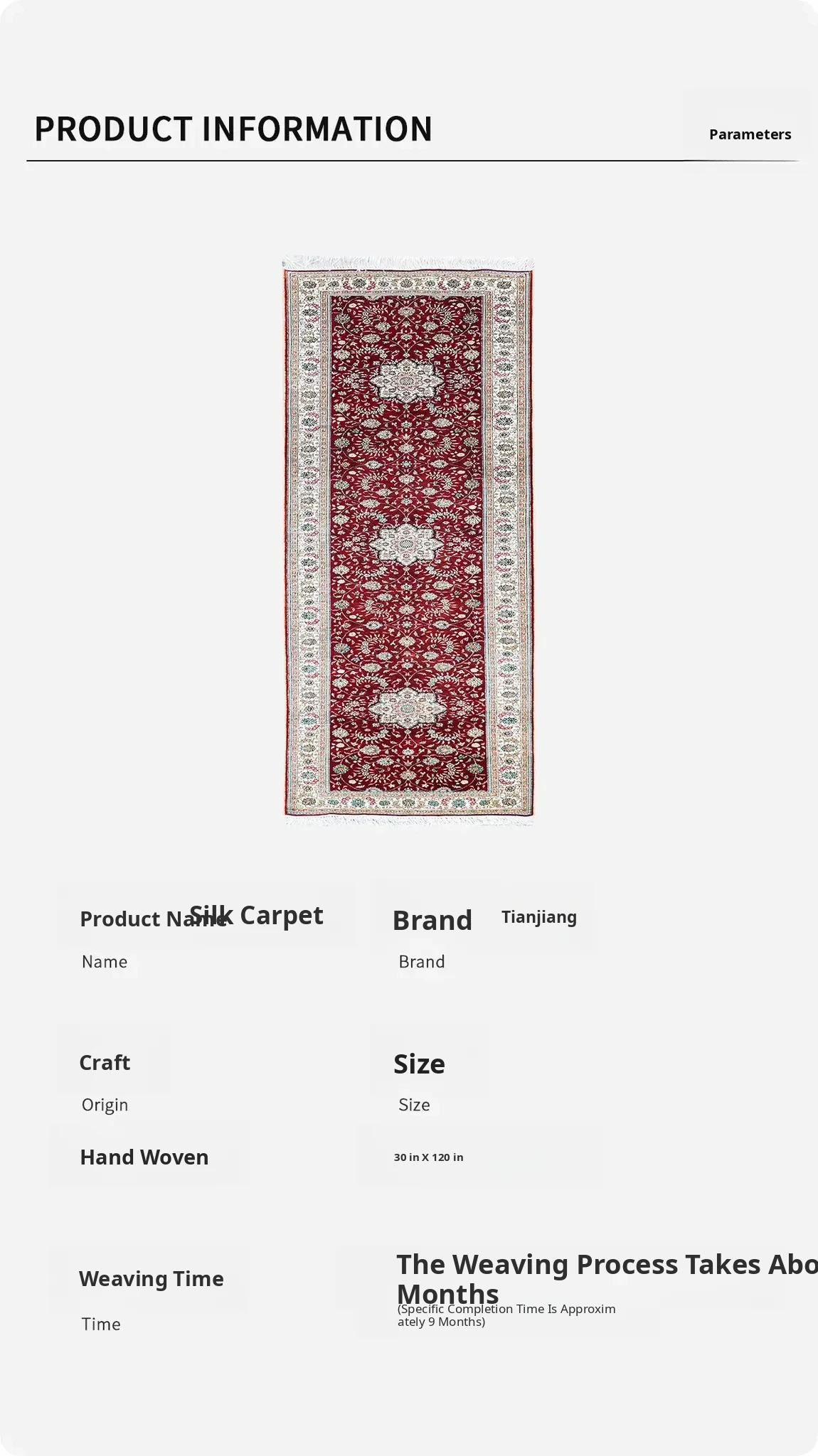 Handcrafted Turkish Silk Area Rug - Eco-Friendly, Washable, and Hand-Knotted - Perfect for Bedroom and Living Room - Size: 76x305cm