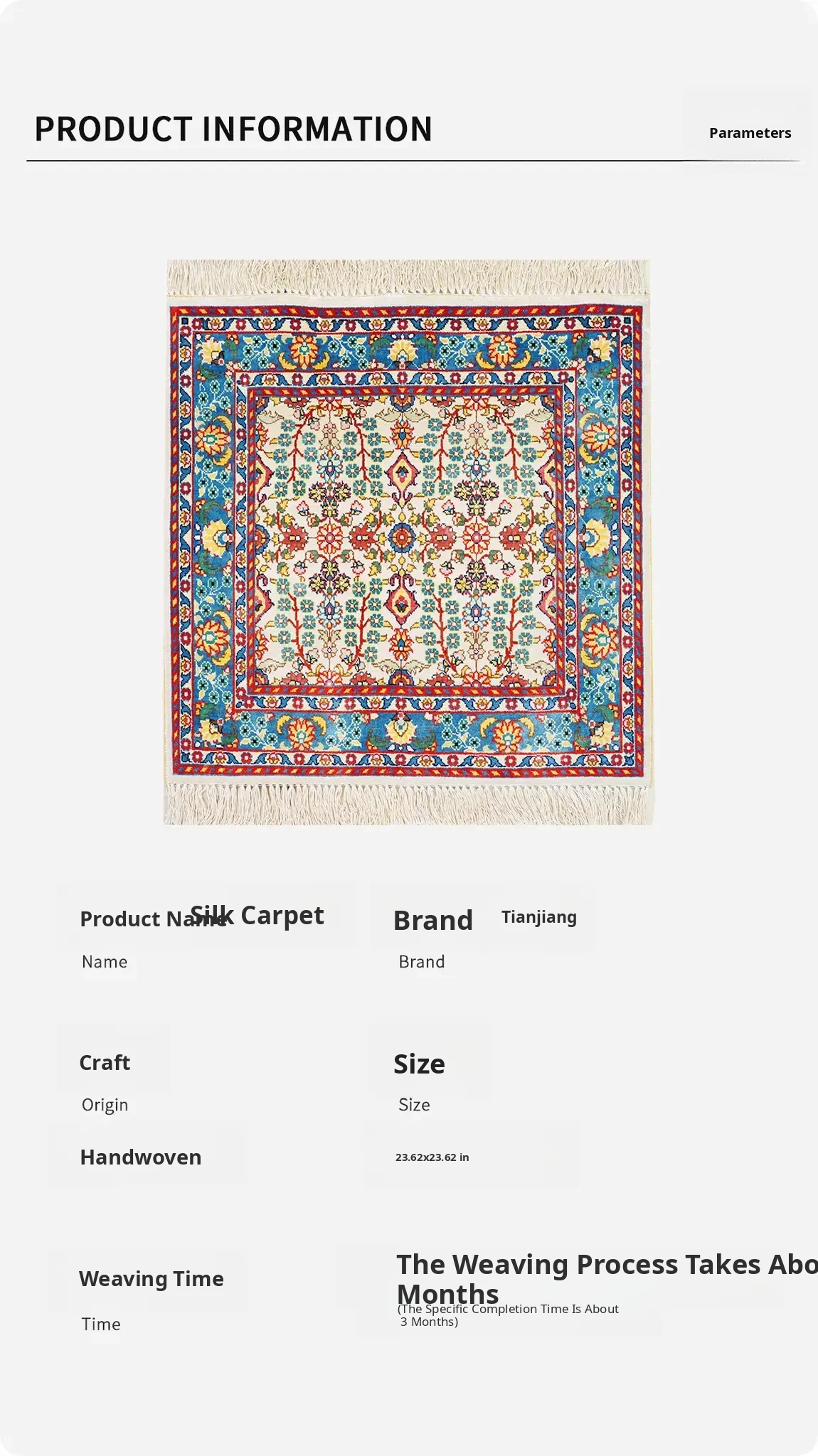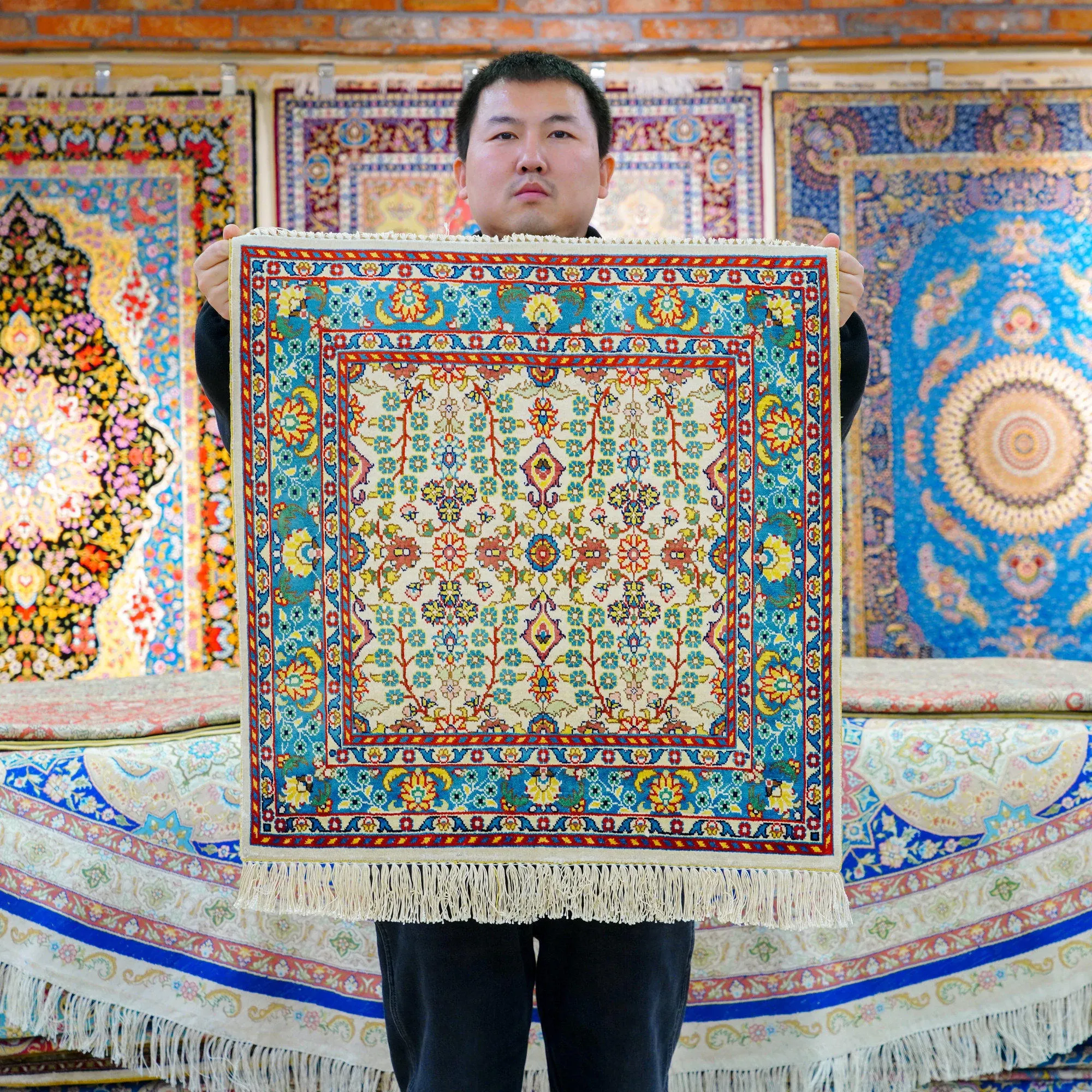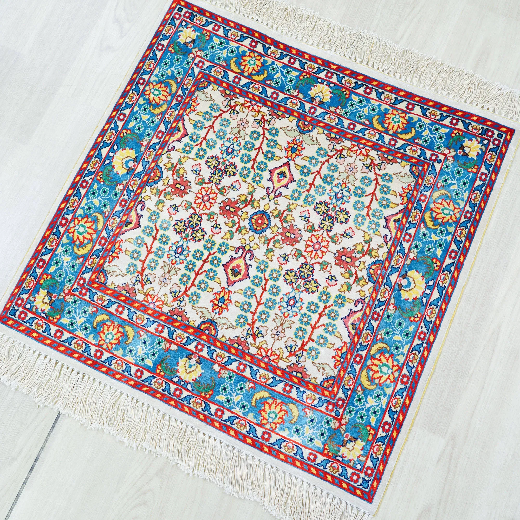 Handcrafted Turkish Silk Carpet - Luxurious 60x60cm European Style Area Rug for Living Room and Bedroom Decor