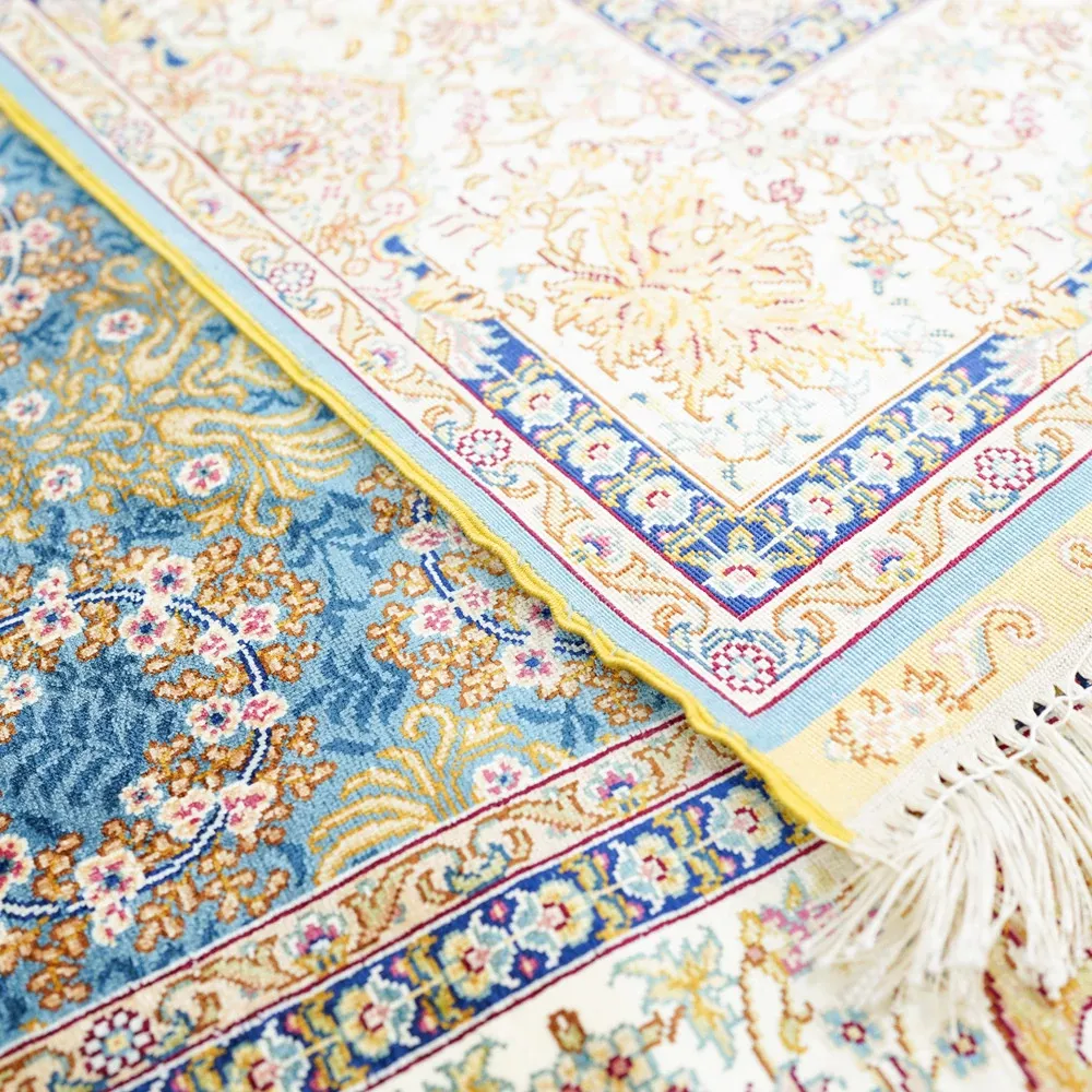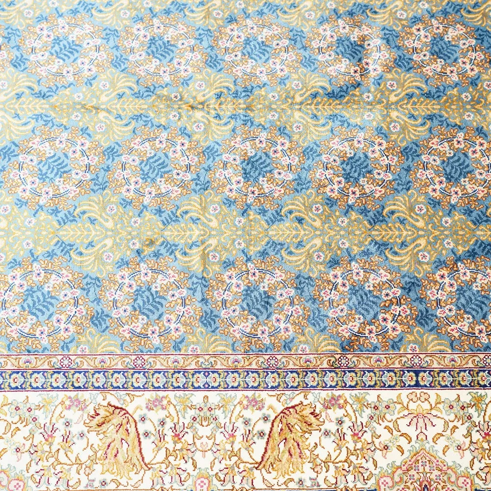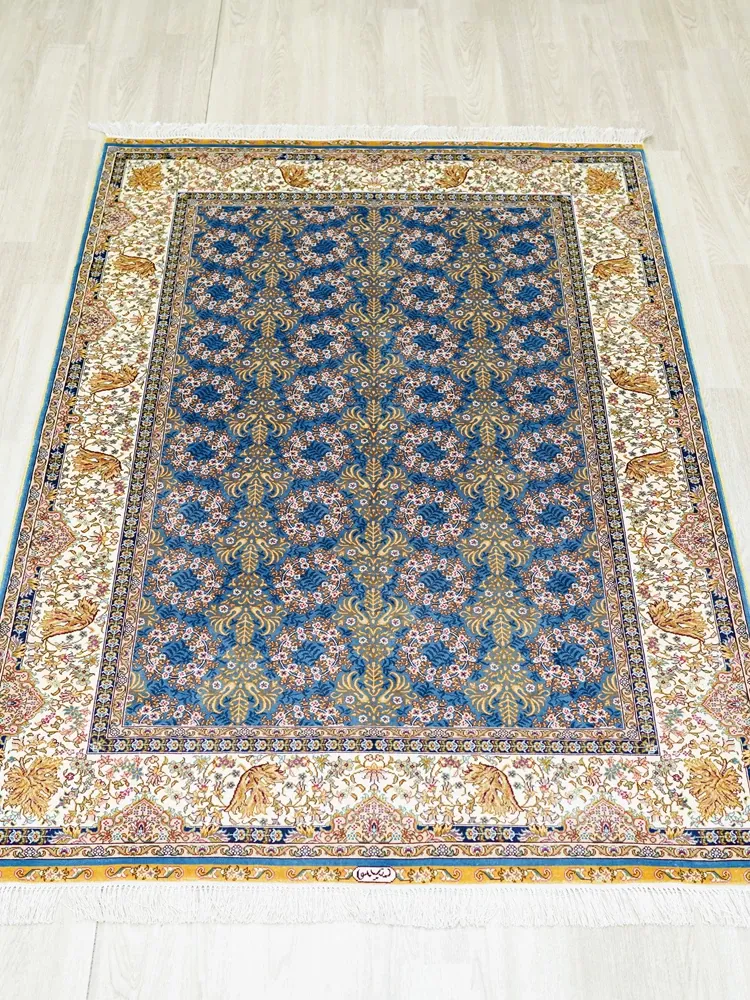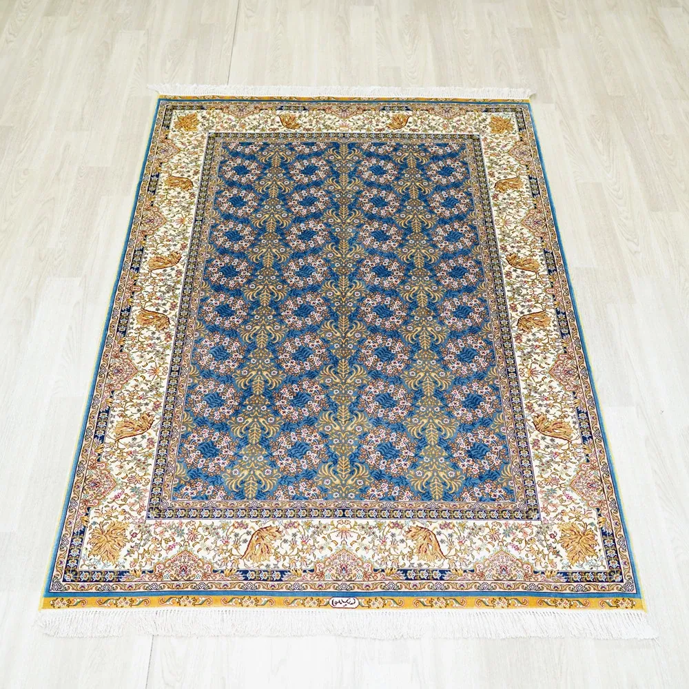 天匠の手作りトルコシルクカーペット - 高級別荘向け、ベッドサイドに最適な120x180cmサイズの美しいカーペットで、優雅な空間を演出!