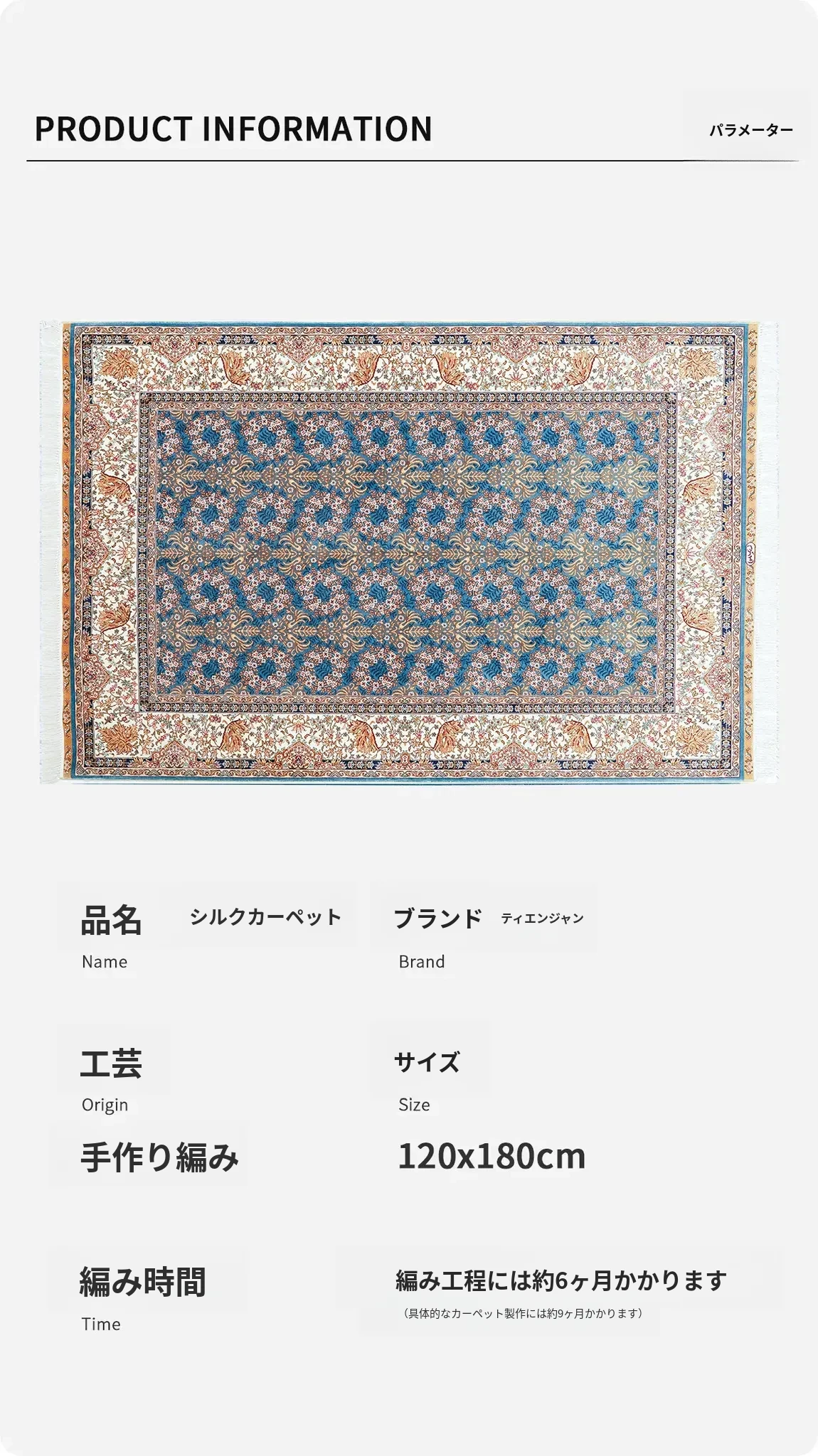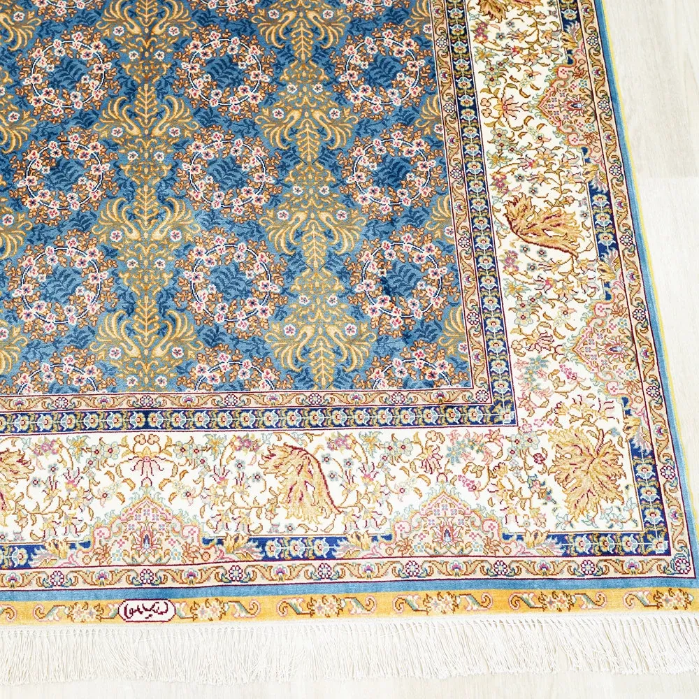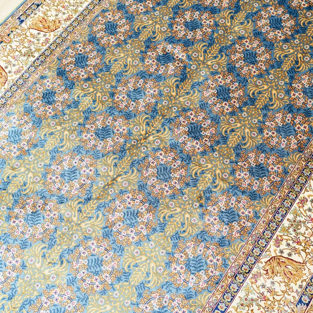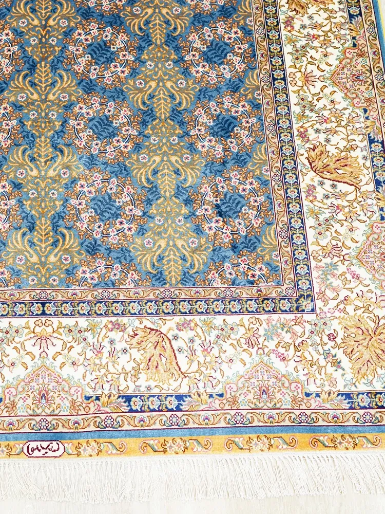 天匠の手作りトルコシルクカーペット - 高級別荘向け、ベッドサイドに最適な120x180cmサイズの美しいカーペットで、優雅な空間を演出!