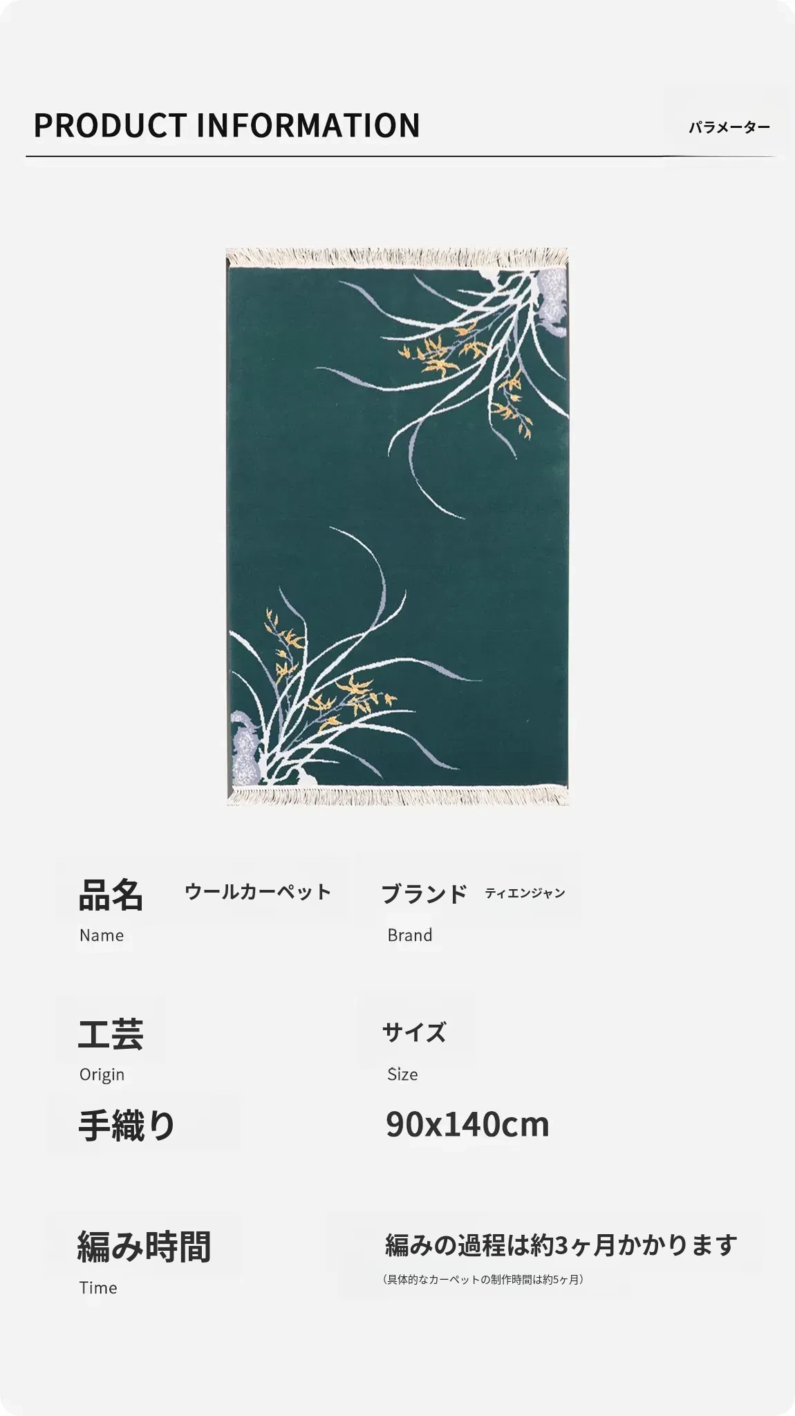 職人の手作りウールカーペット、寝室や玄関に最適!ヴィンテージ風で汚れに強い、個性的なデザインのカーペット(90x140cm)。高品質と温かみを兼ね備えた一枚で、お部屋を華やかに演出します。