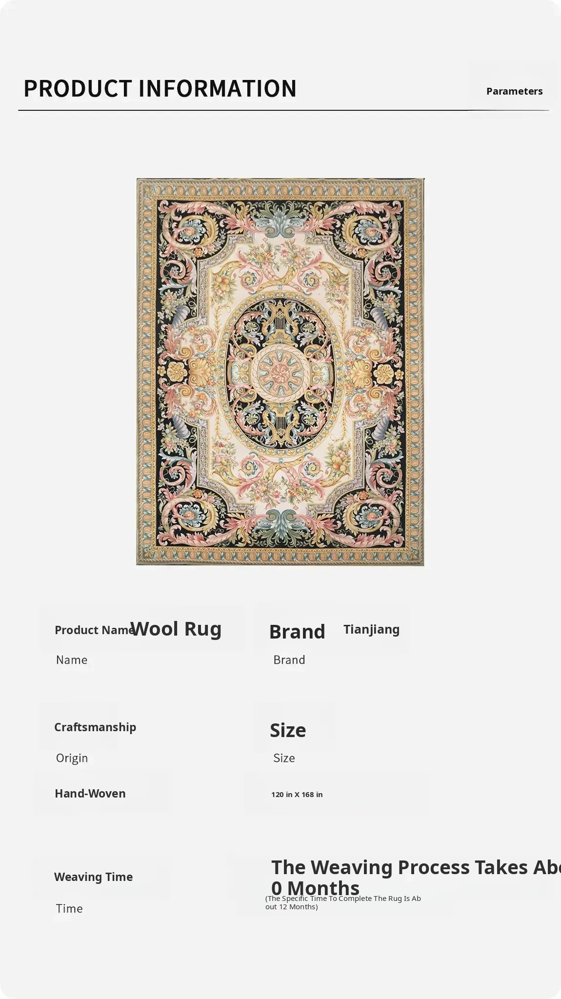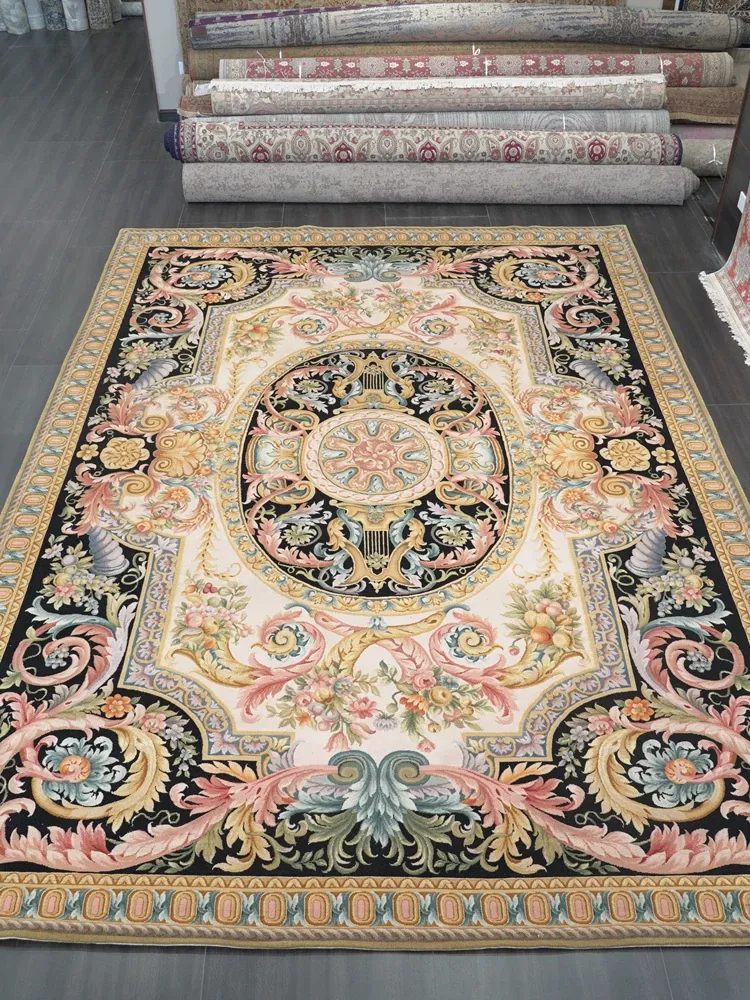 Handcrafted Wool Area Rug - Elegant European Style for Villas and Homes, Stain-Resistant & Easy to Clean, Perfect for Living Rooms - Size: 305x427cm