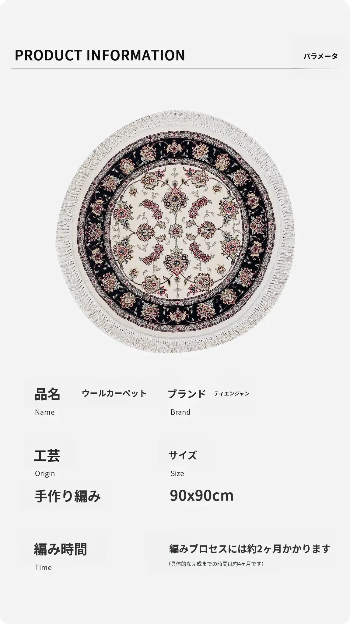 天匠手作のウールカーペット - インポート別荘向け、リビングや寝室に最適な90x90cmのラグ。お試し施工も可能!上質な素材とデザインで、あなたの空間を華やかに演出します。