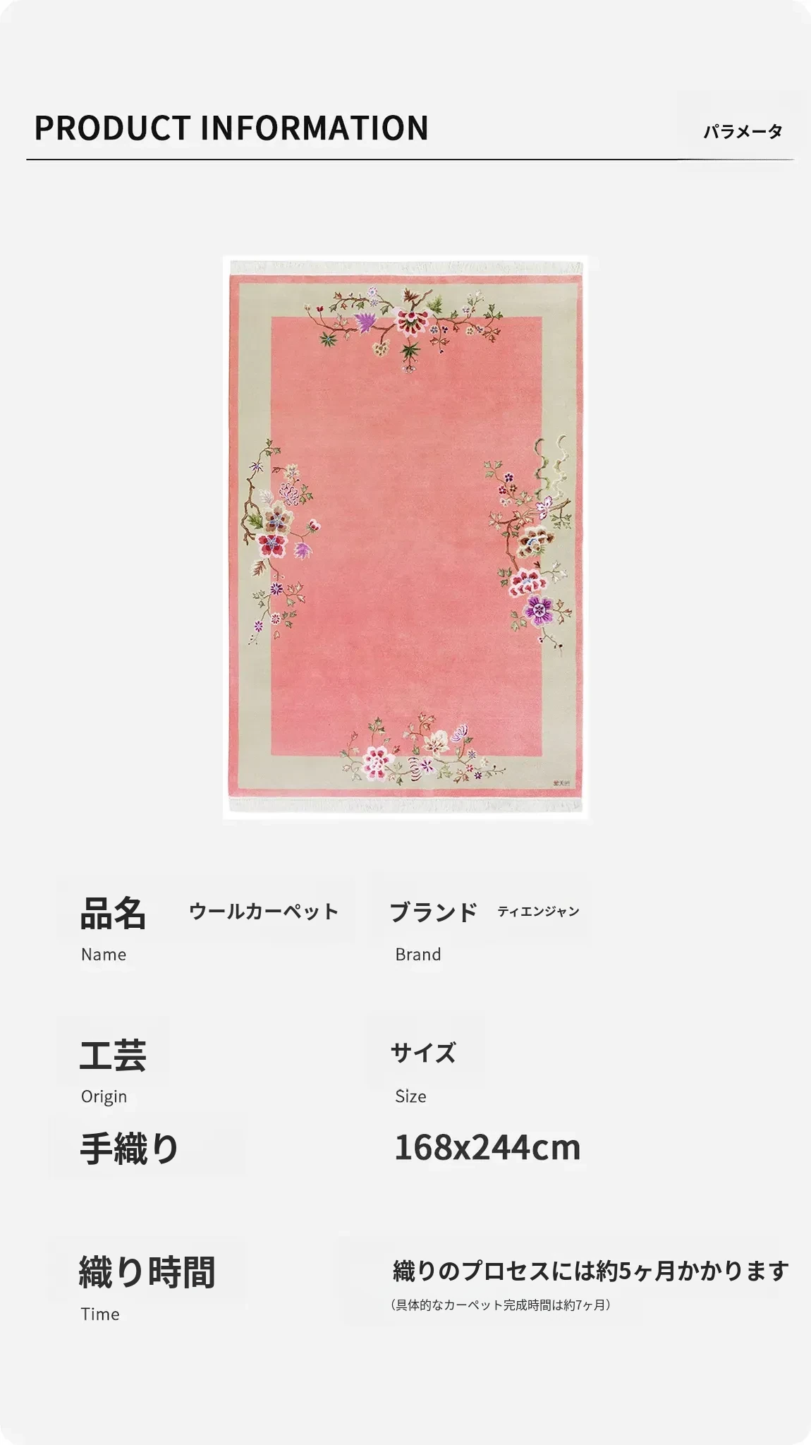 天匠手作ウールカーペット 新中式デザイン 書斎・寝室に最適!どんなインテリアにも合う高級接着剤不使用カーペット 168x244cm