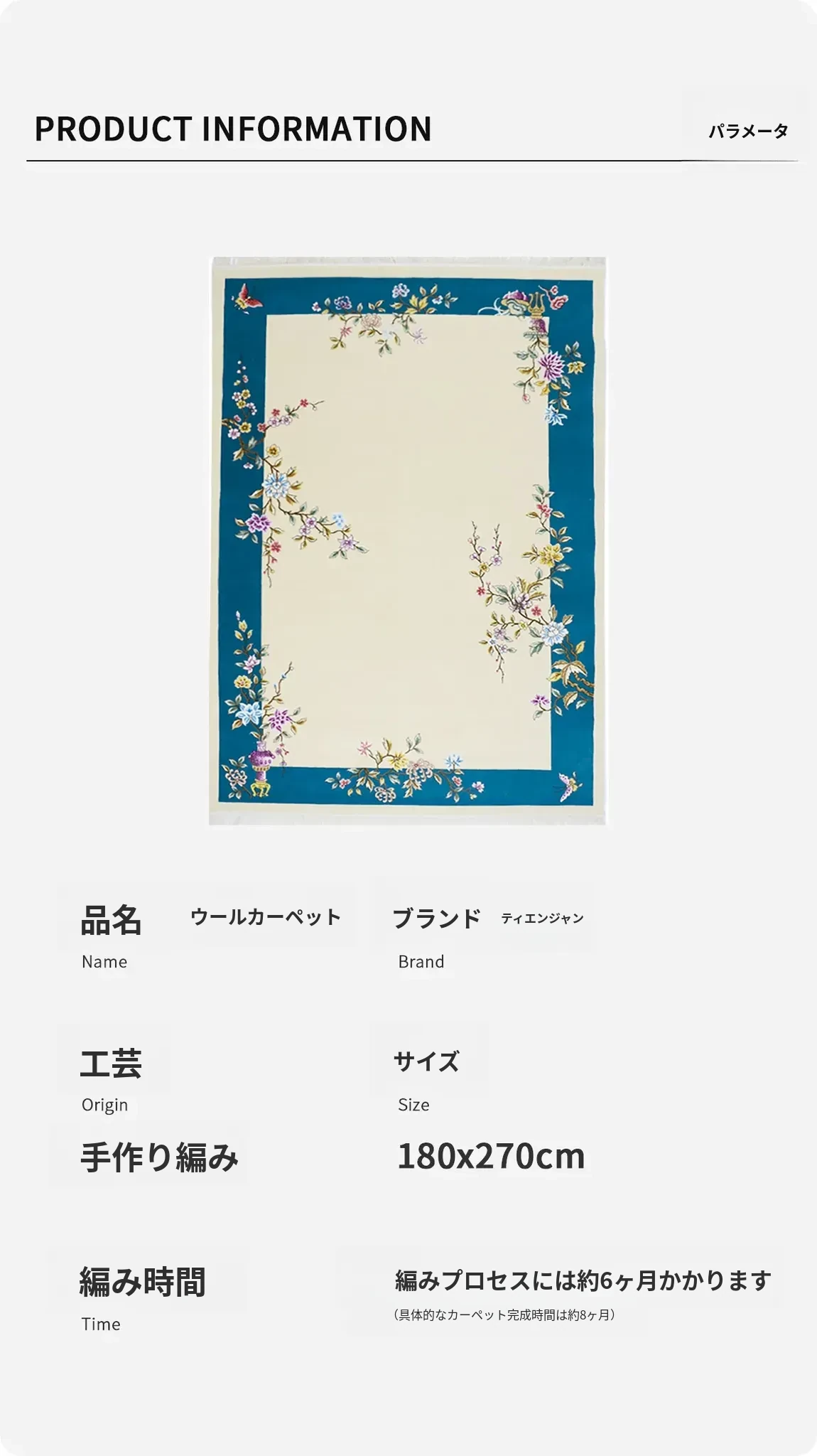 匠心手作のウールカーペット - 新中式スタイル、紅木家具にぴったり!180x270cmのサイズで、寝室や書斎、リビングルームを華やかに彩ります。心温まる空間作りを実現!