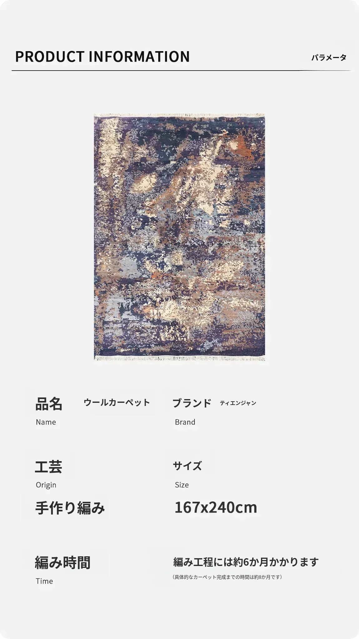 天匠製 手作りウールラグ 高級感溢れる別荘・寝室・書斎用 167x240cm 耐汚れタイプのラグマットで、上質な空間を演出します!