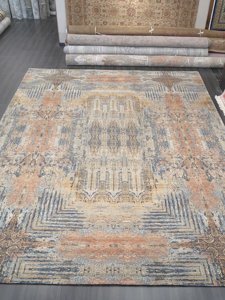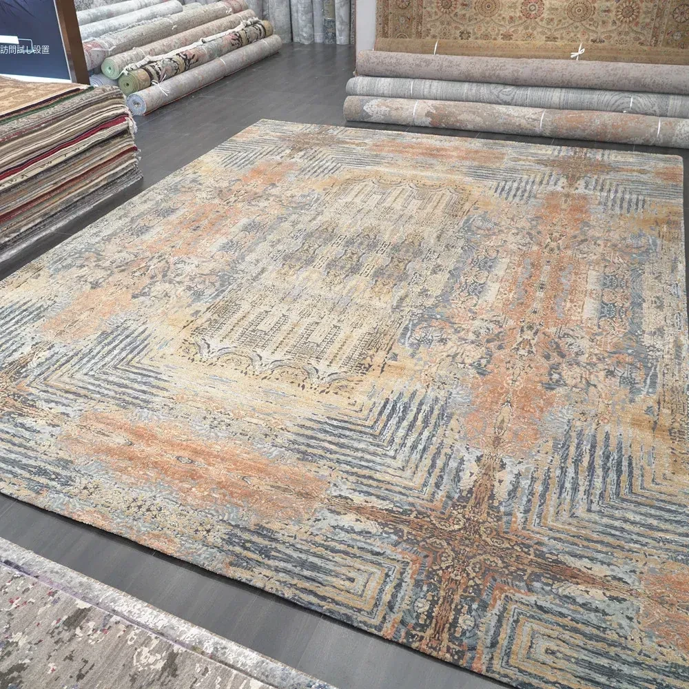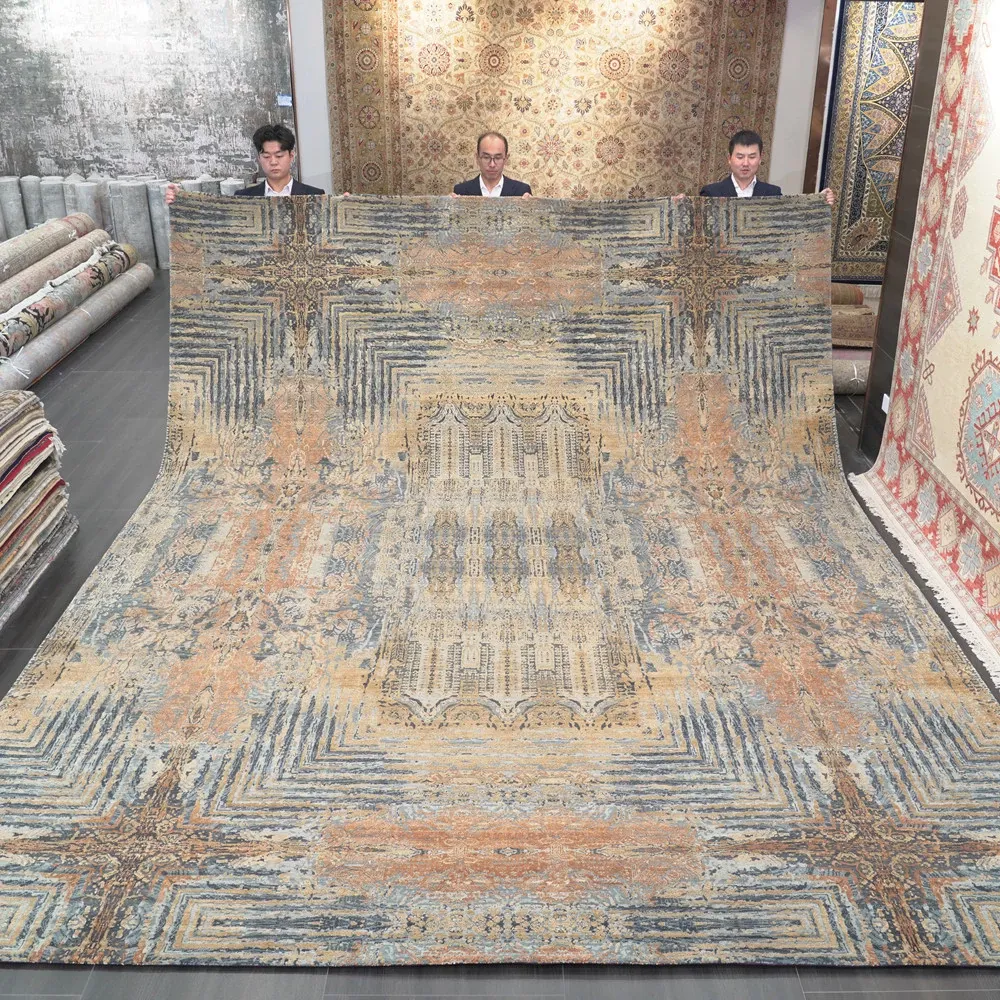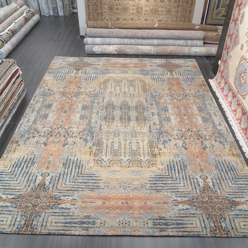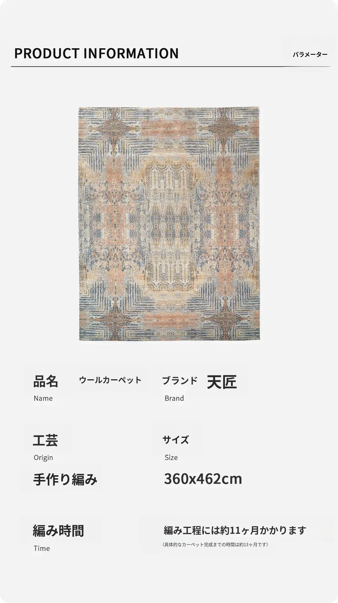 天匠の手作りウールカーペット - イタリアン&アメリカンスタイルのリビング&寝室にぴったりなラグ。高級感あふれるデザインで、360x462cmの広さを誇ります。心地よい触り心地と洗練された美しさをお楽しみください。