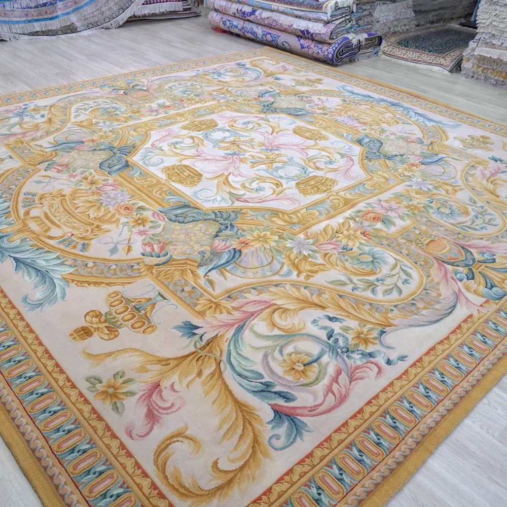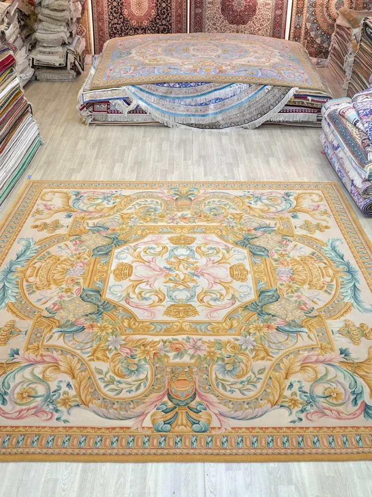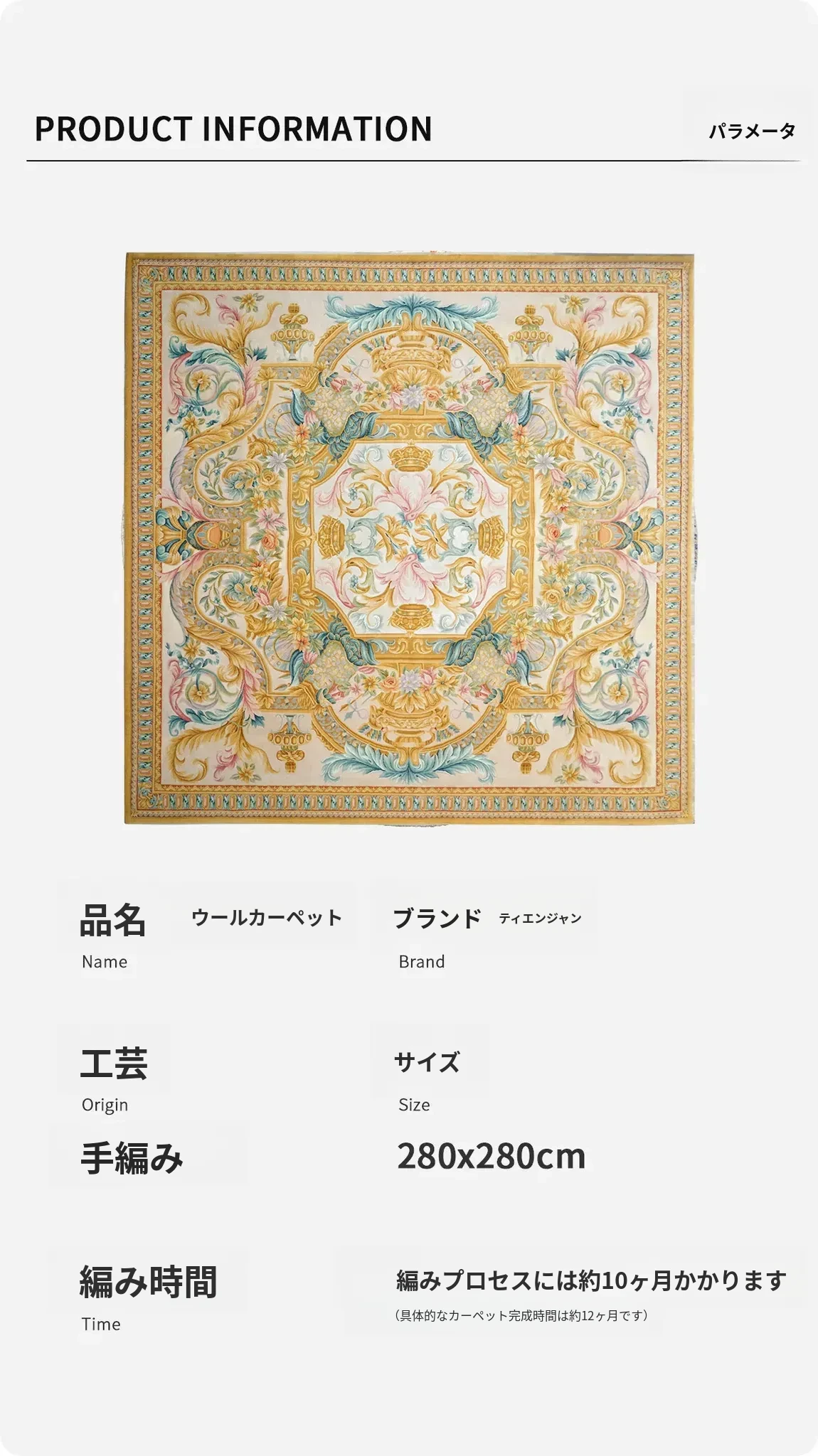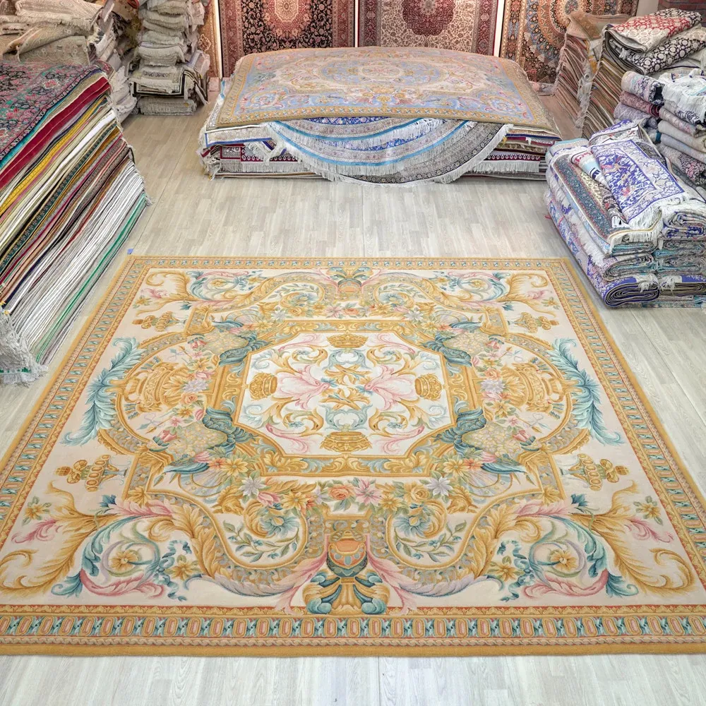 職人の手作りウールカーペット フレンチロイヤルスタイル クラシックヴィラ用 寝室・書斎にぴったりな375x375cmの豪華なラグで、優雅な空間を演出します。