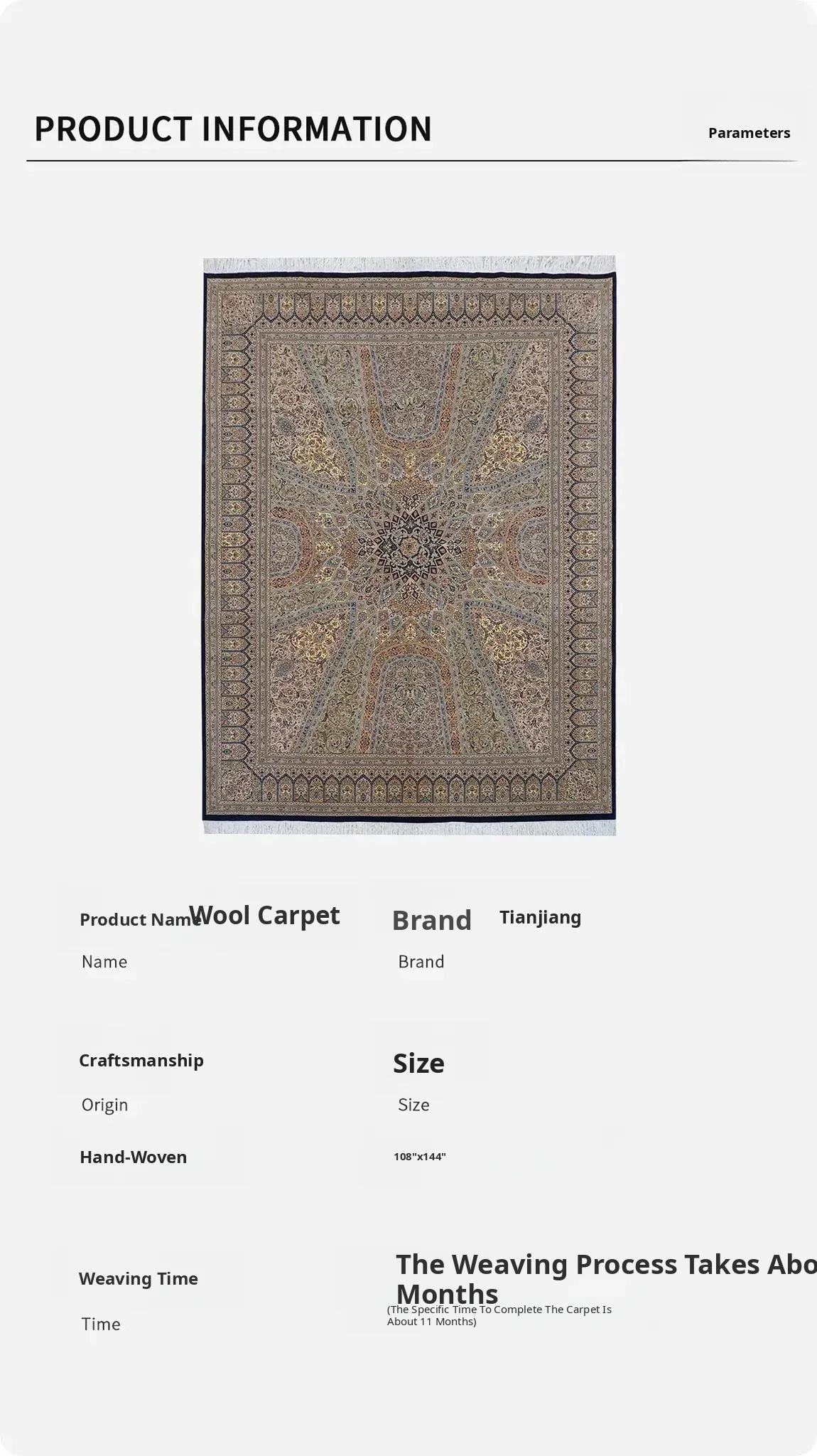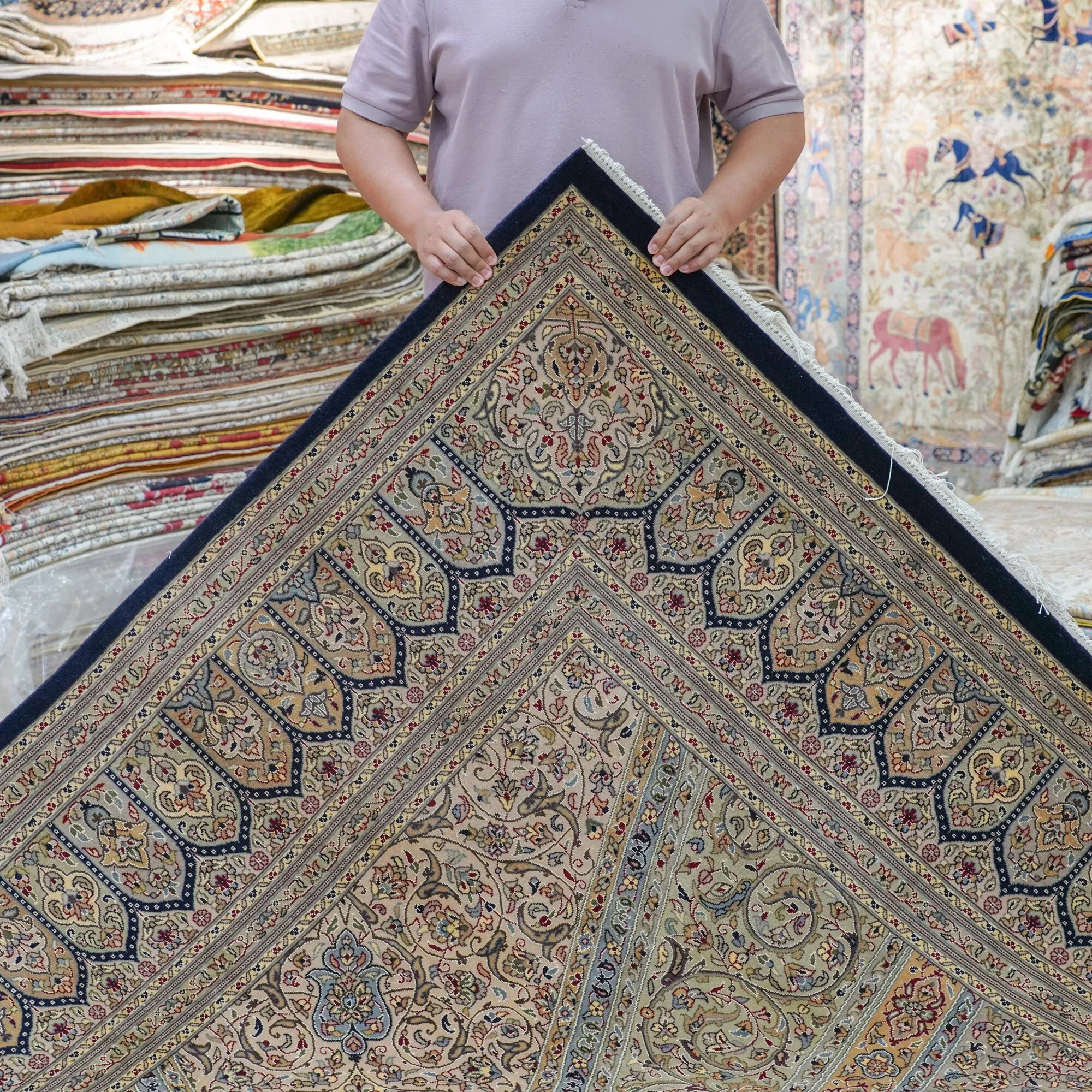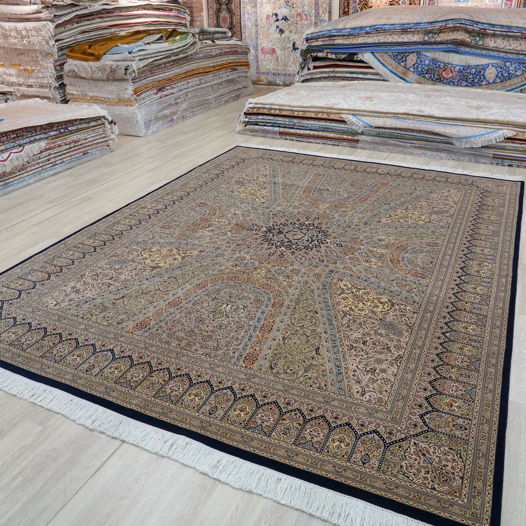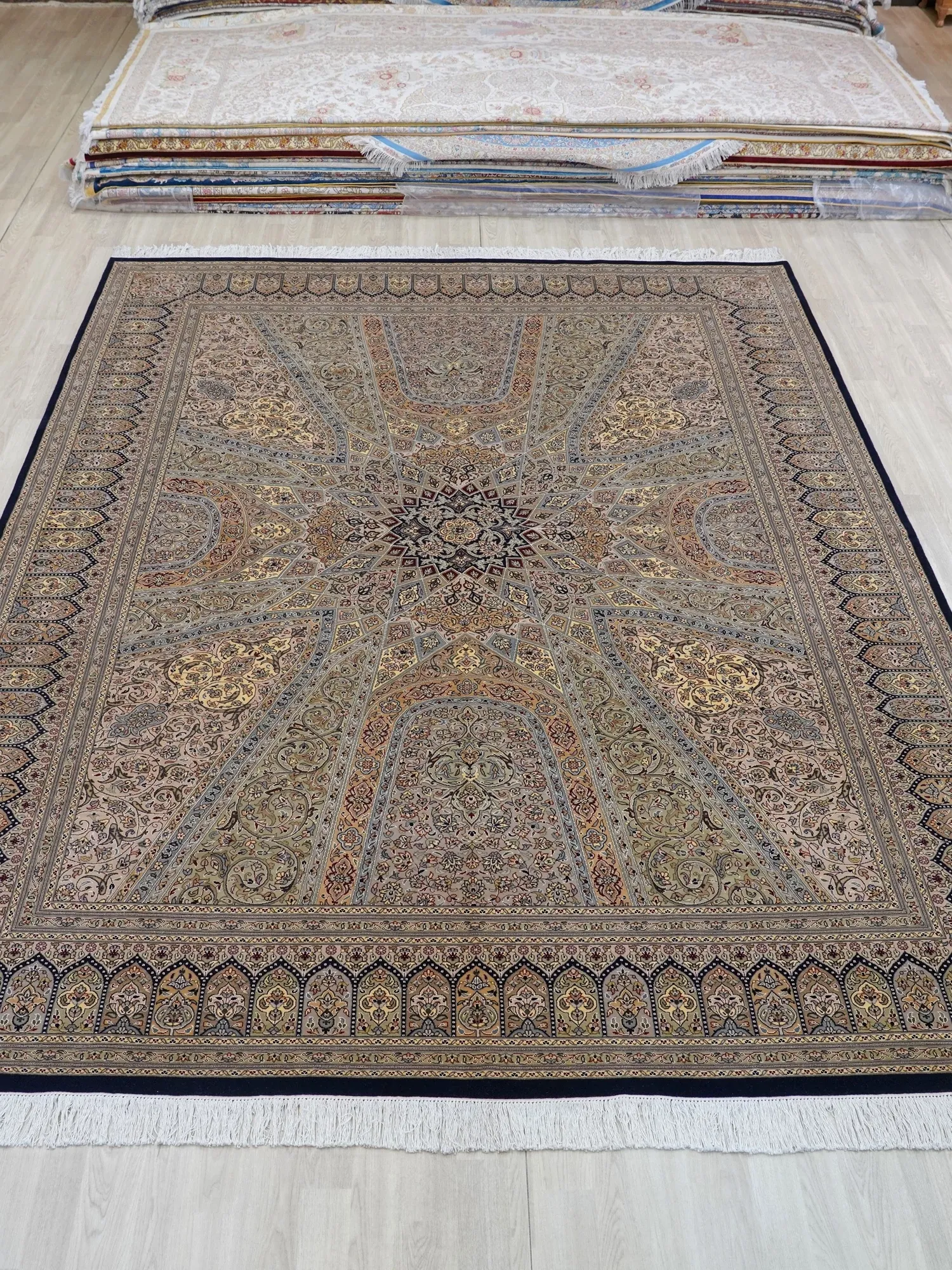 Handcrafted Wool Persian Carpet for Living Room and Bedroom - Eco-friendly, Glue-free, Perfect for Villas and Mansions, 274x366cm