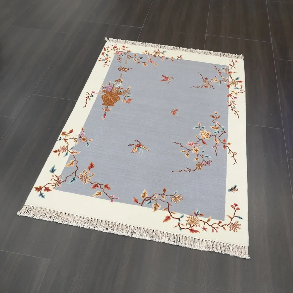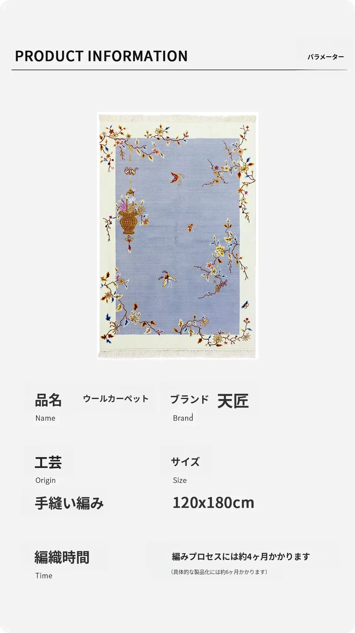 天匠の手作りウールカーペット|リビングや寝室にぴったりの民族風デザイン|接着剤不使用、安心・安全|120x180cmの使いやすいサイズで、どんなインテリアにもマッチ!