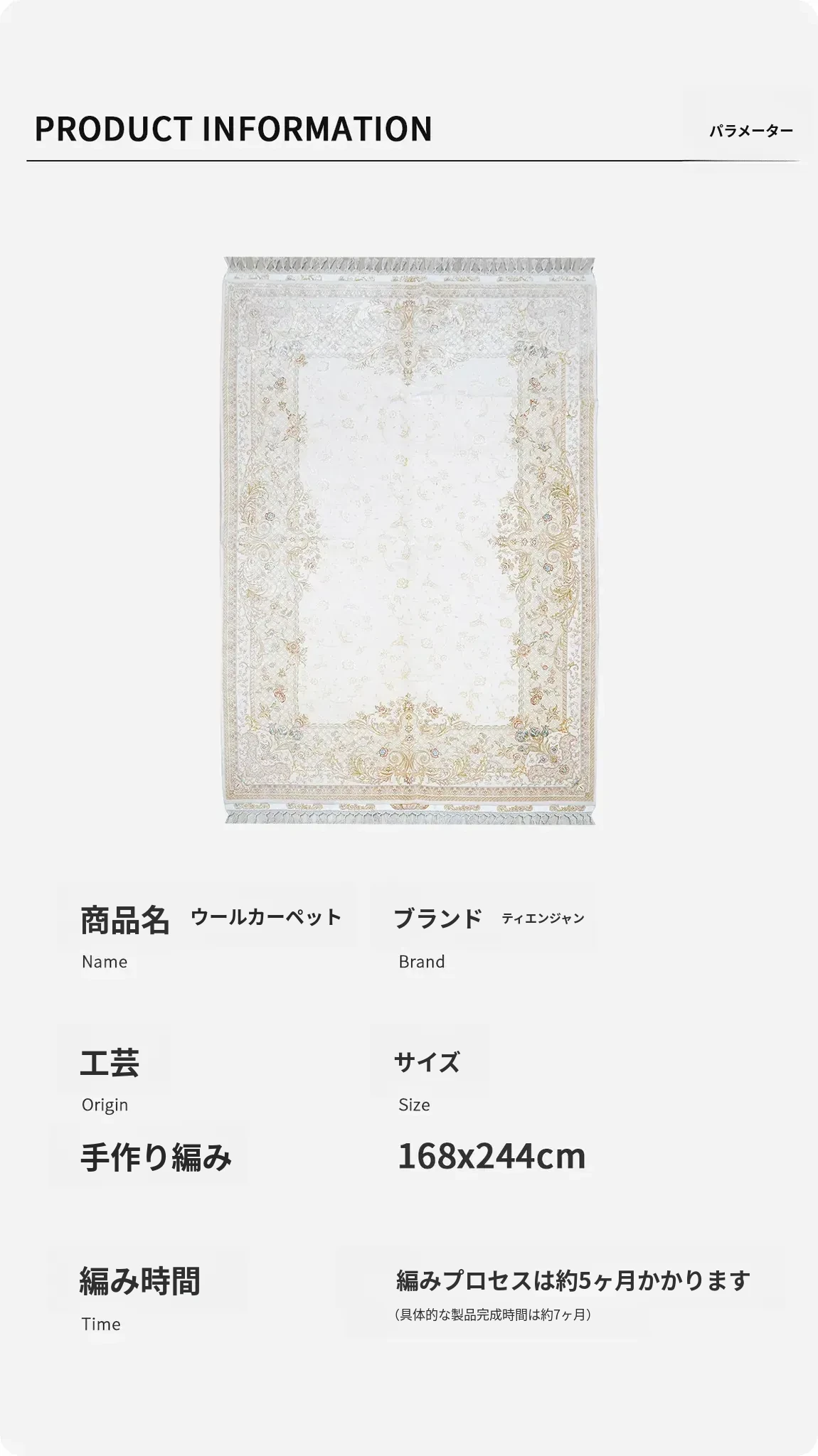 天匠の手作りウールカーペット - ヨーロピアンスタイルの寝室や書斎にぴったり!別荘にも最適な168x244cmの上質なカーペットをお試しでお届けします。