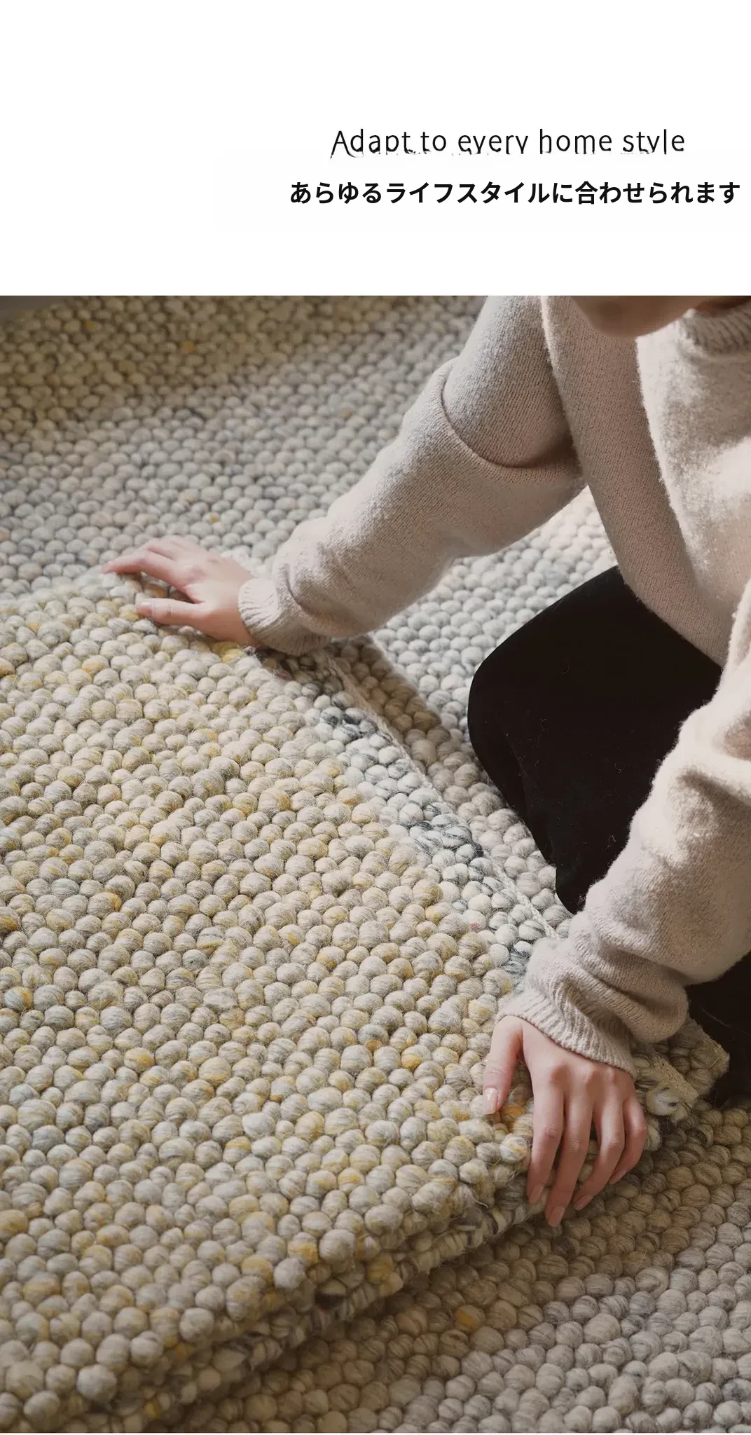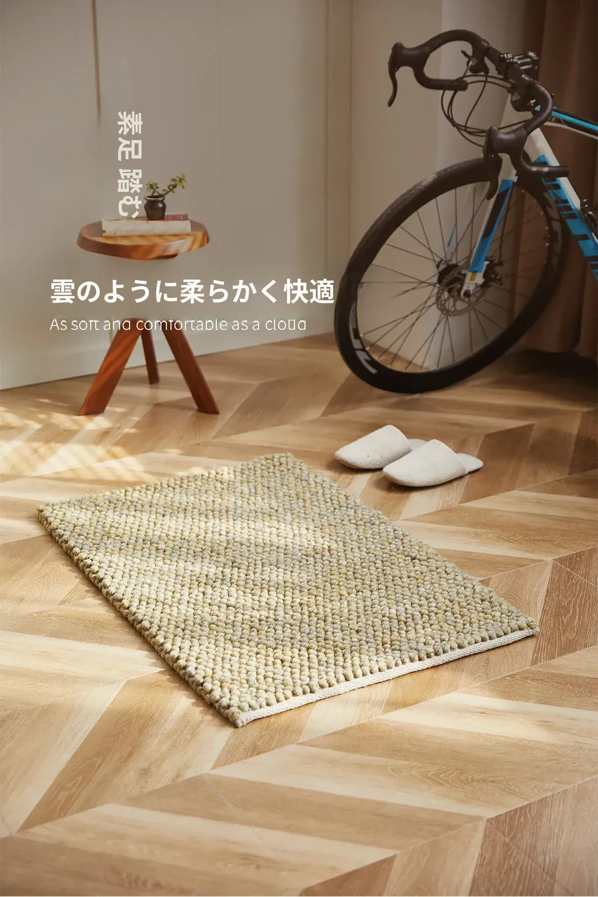 天匠手作のウールカーペット - グルー不使用の侘寂風デザイン、高級家庭用エントランスカーペット。上質な素材と洗練された美しさで、あなたの空間に温かみをプラス!