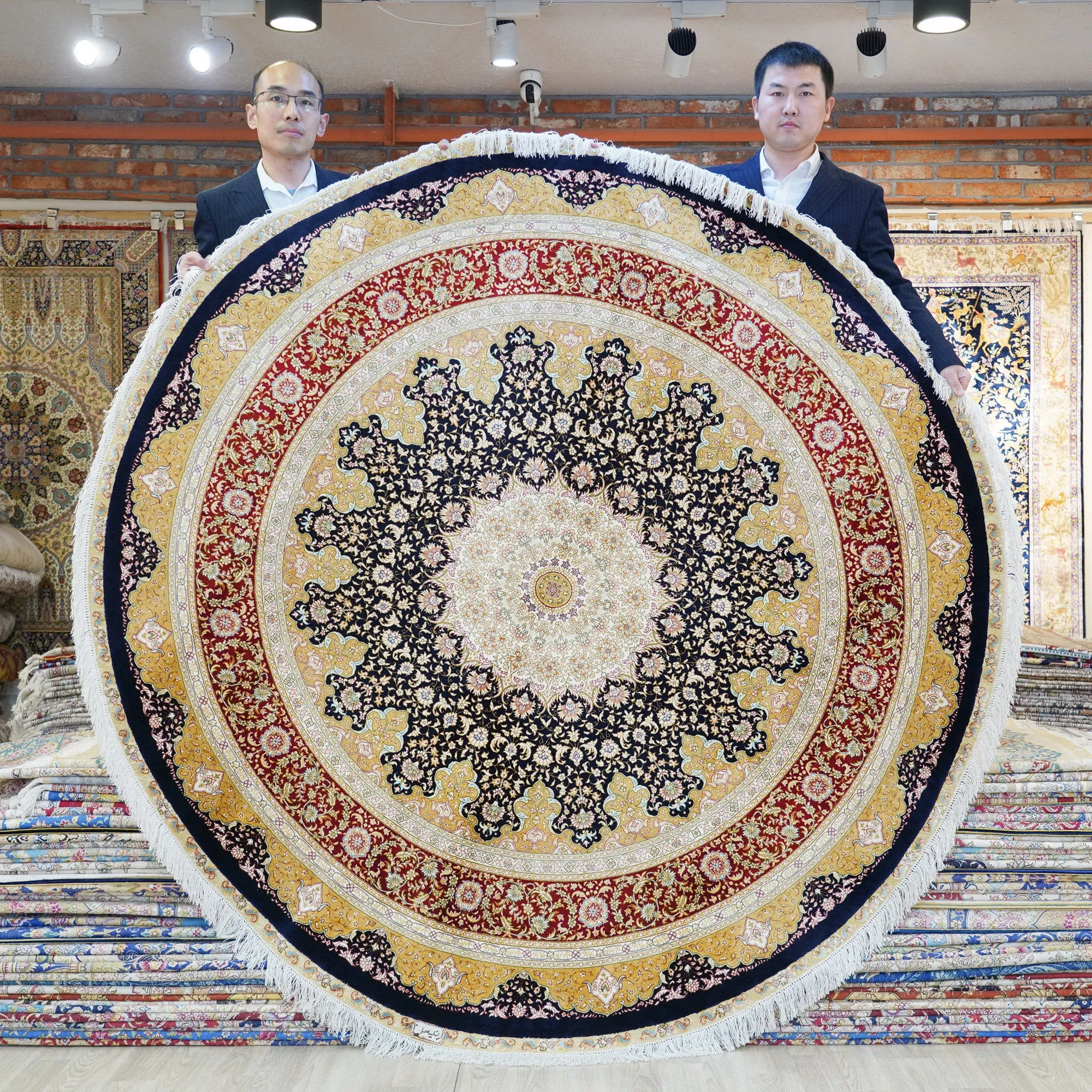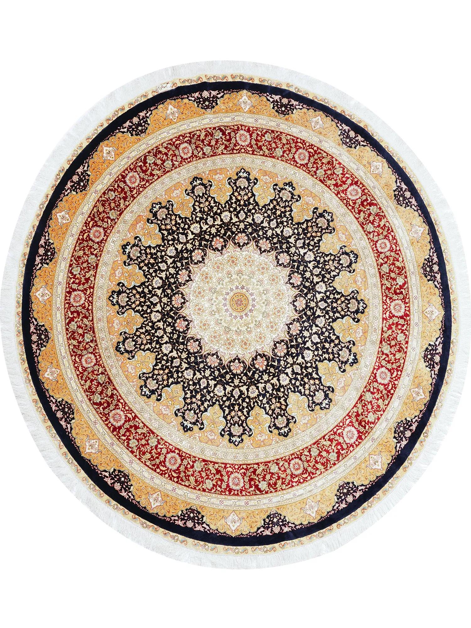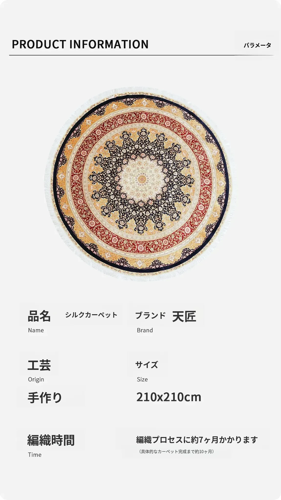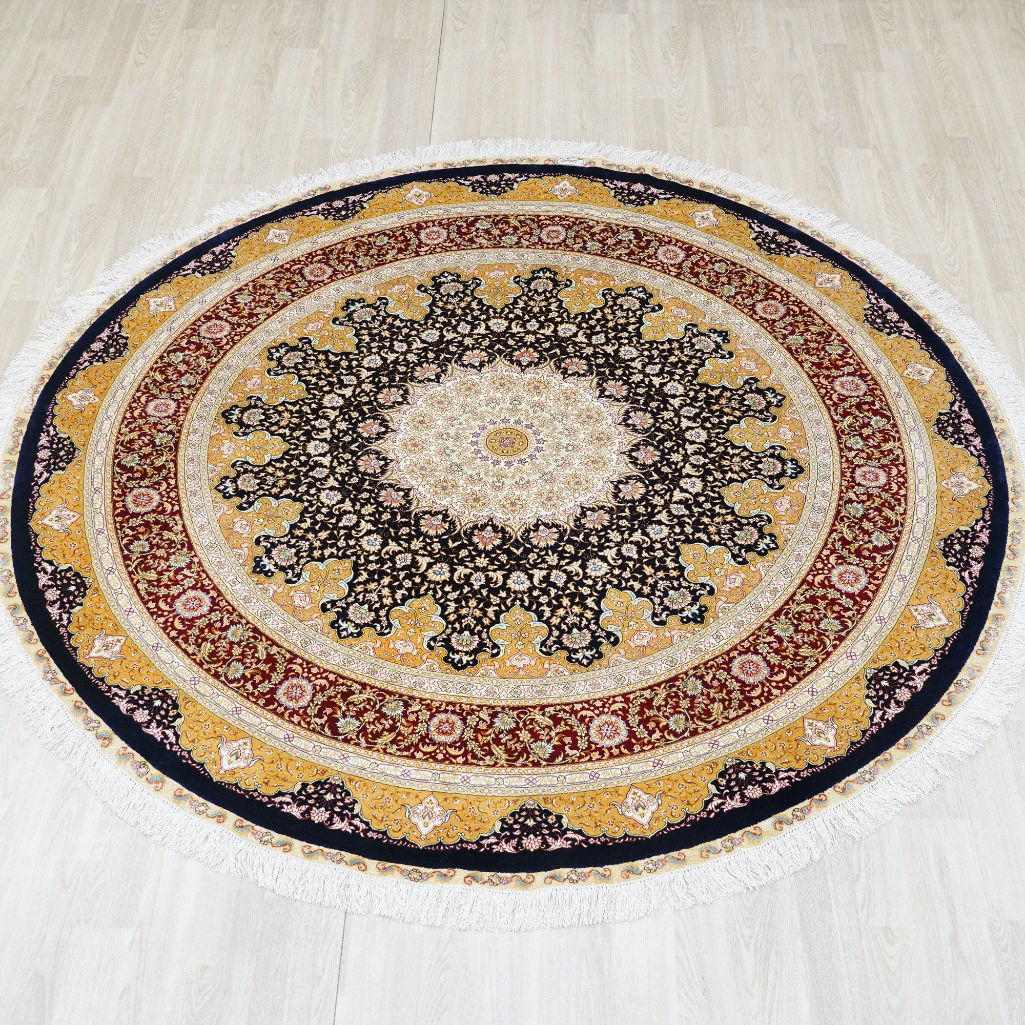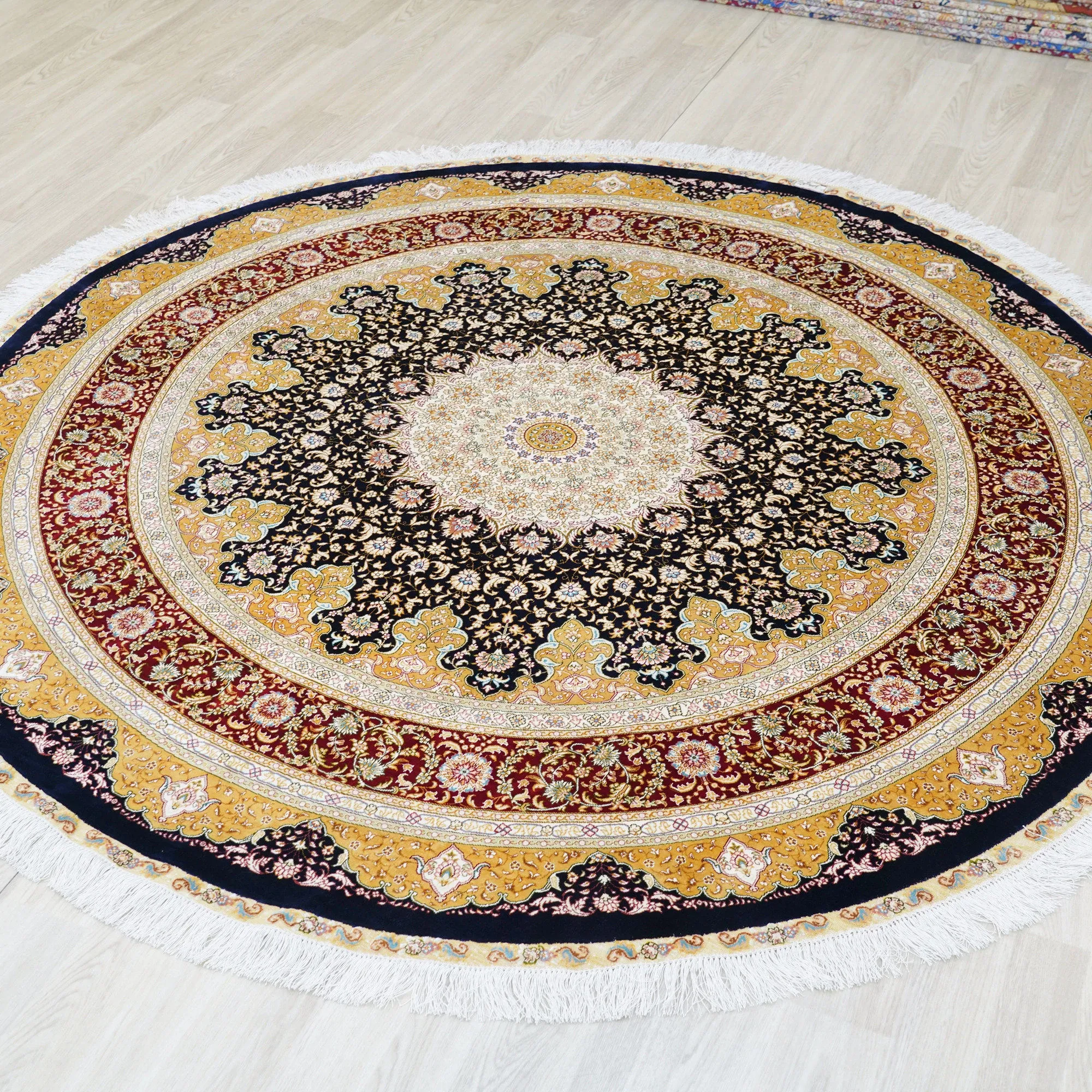 職人の手作りシルクペルシャカーペット - 美しいデザインで、ドバイやトルコ、欧米の寝室や書斎に最適!210x210cmの贅沢なサイズで、どんな空間にも調和します。