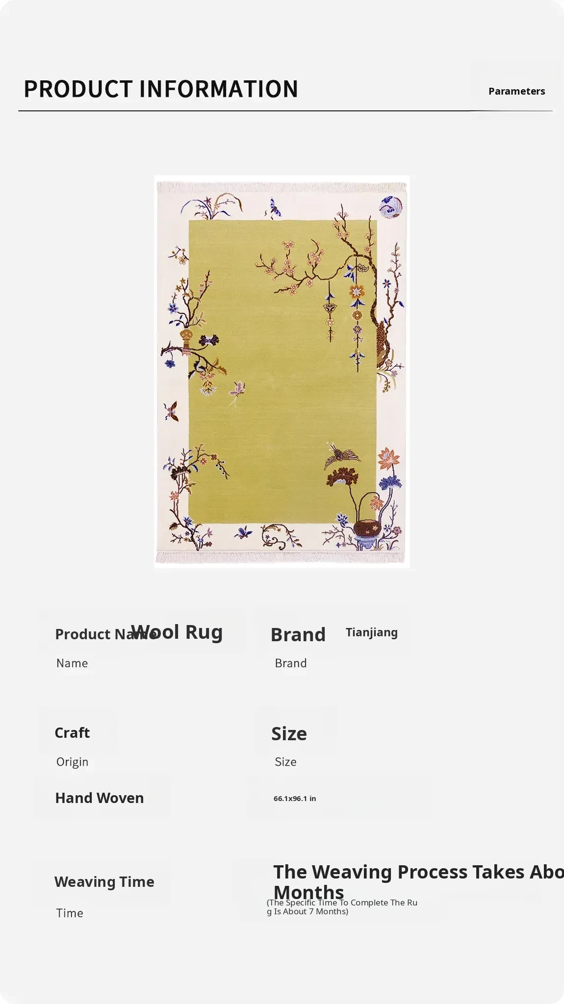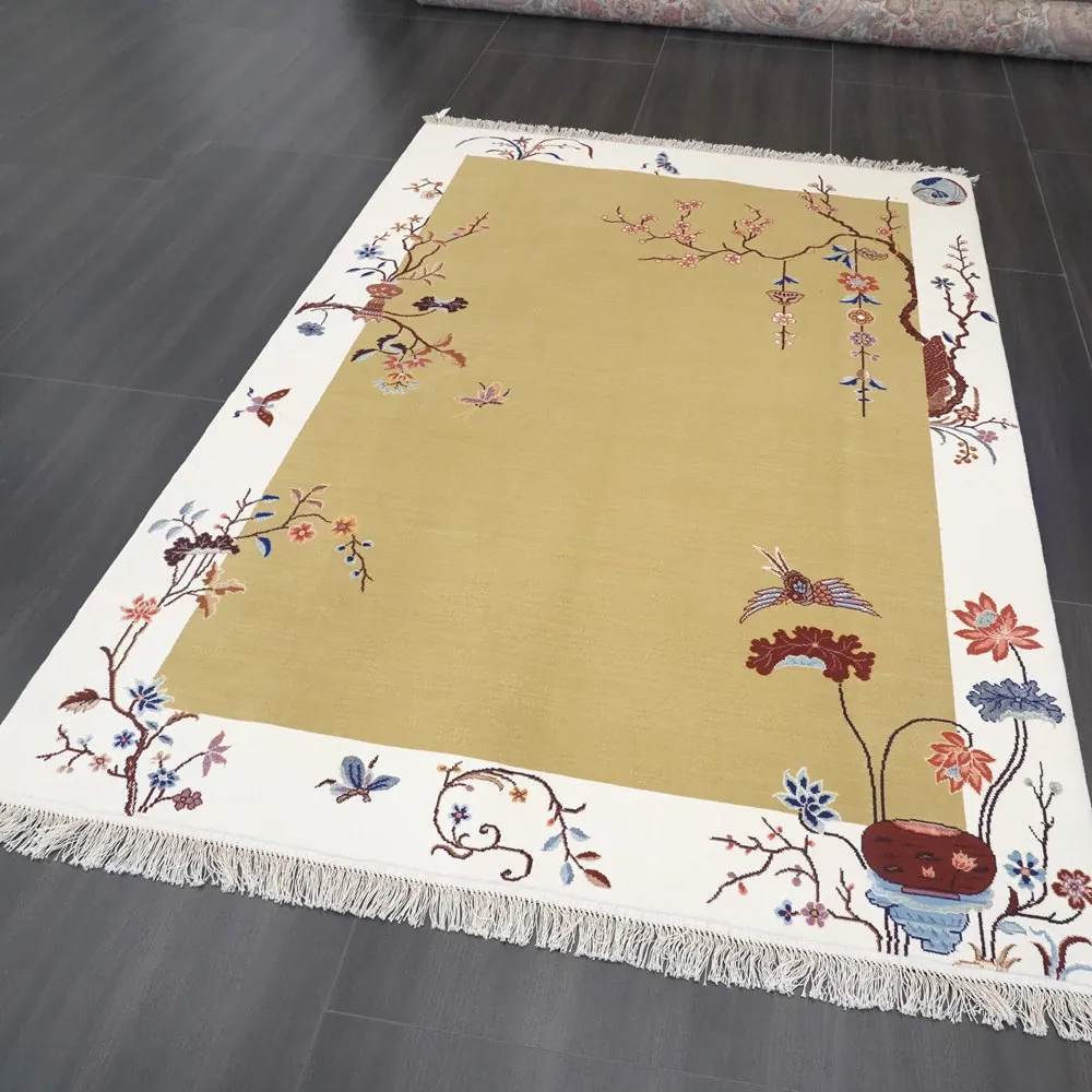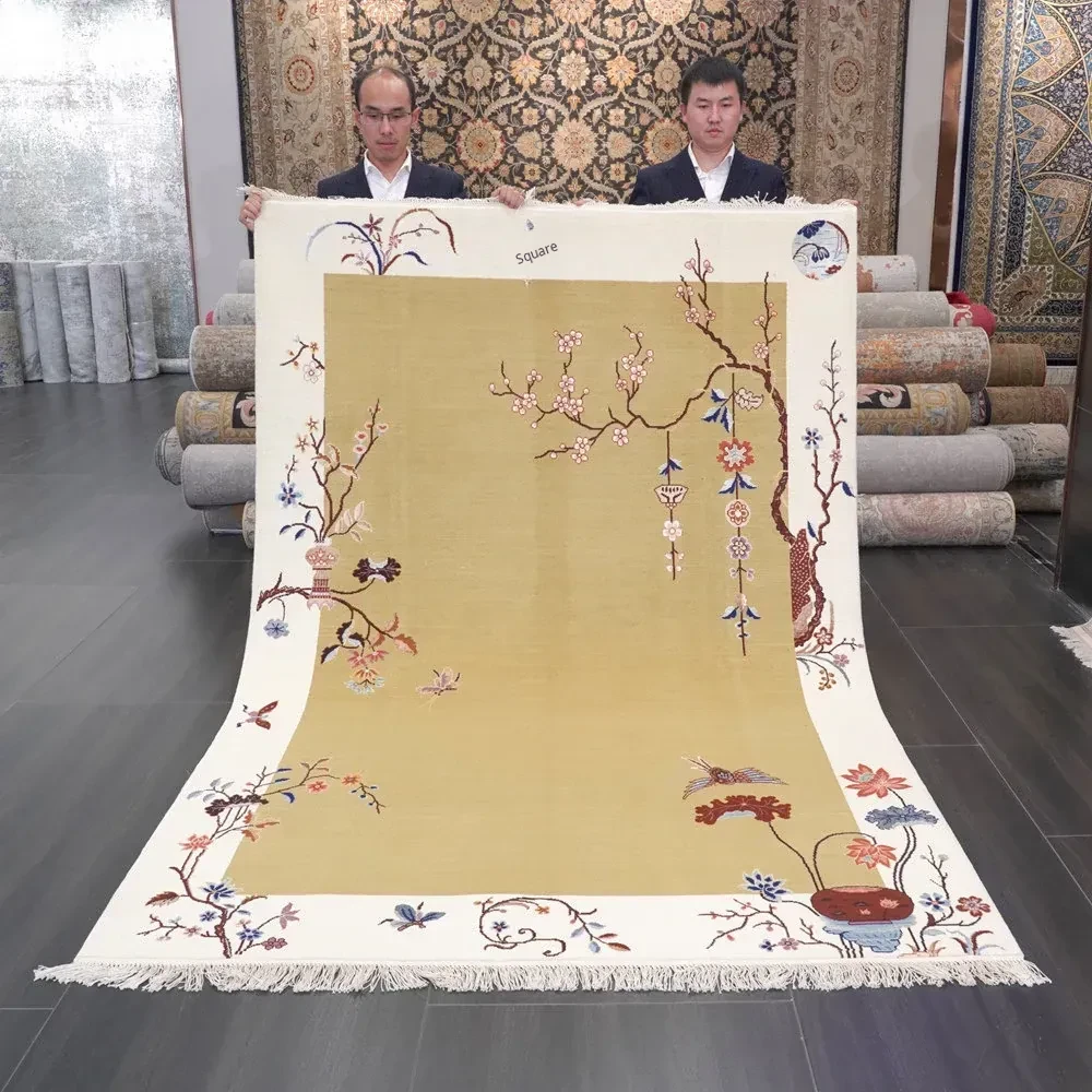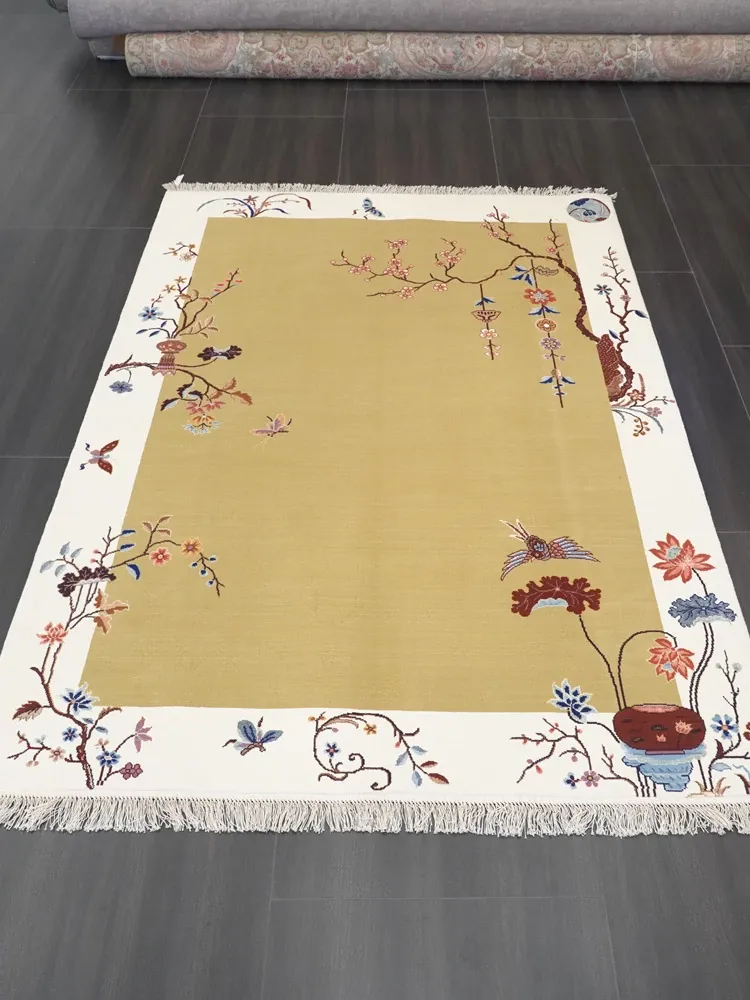 Handmade Wool Carpet by Tianjiang - Chinese Style Area Rug for Bedroom and Study, Villa Carpet with Home Trial, Dimensions: 168x244cm - Elevate Your Space with Luxury and Comfort!