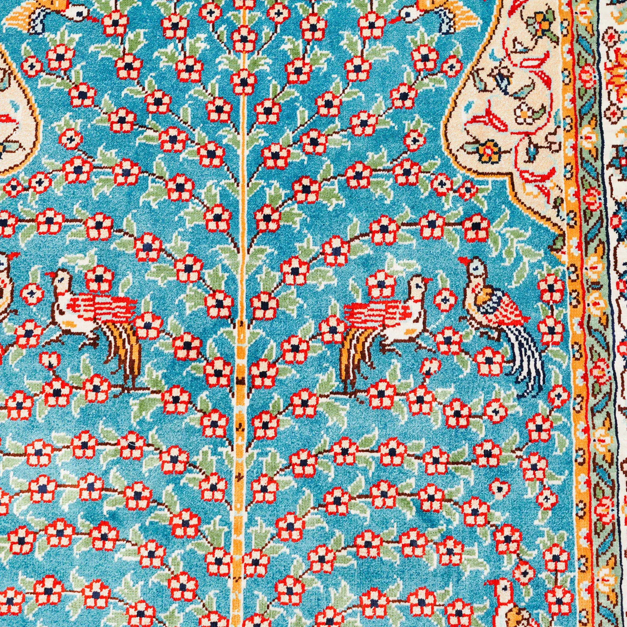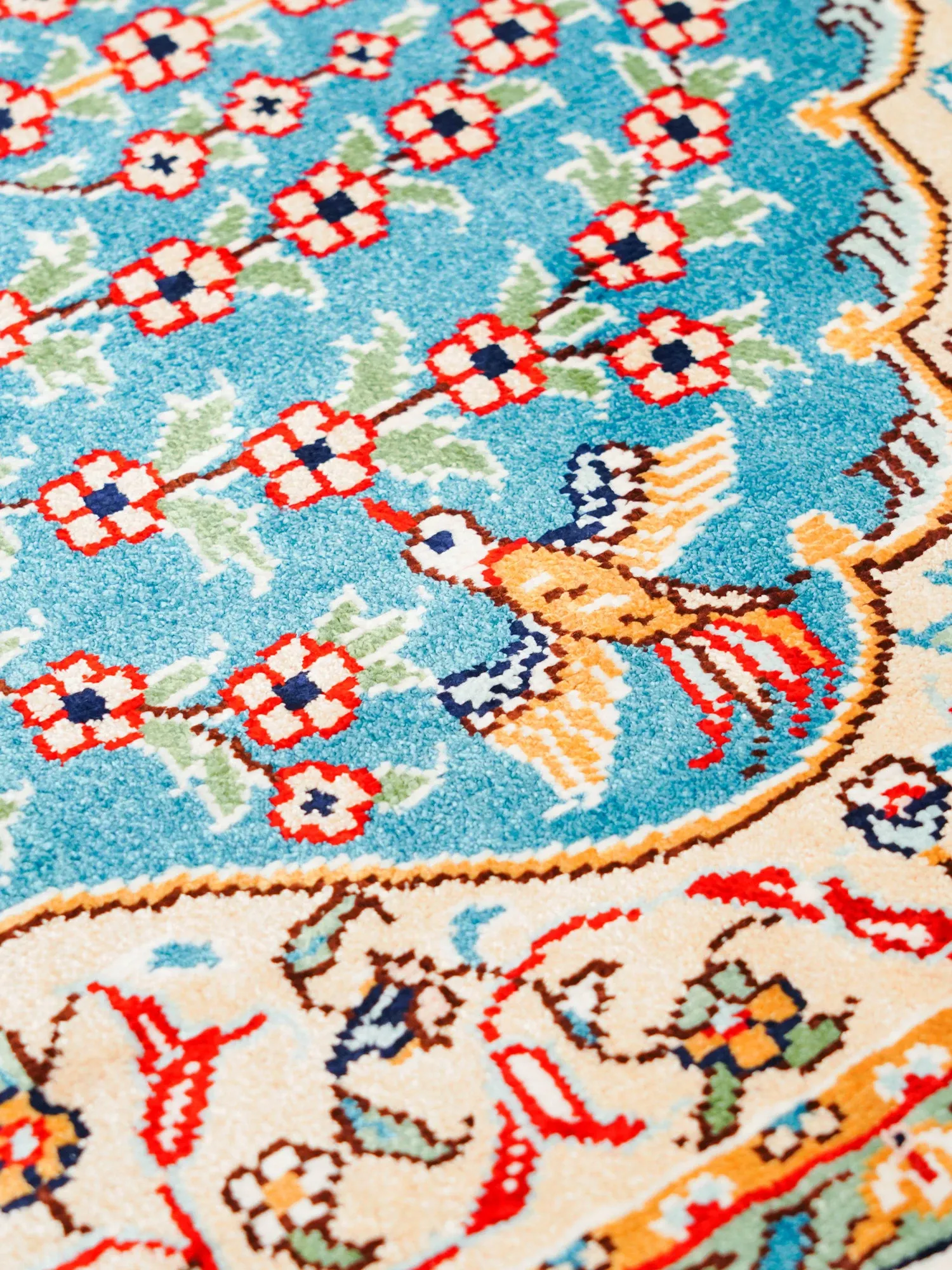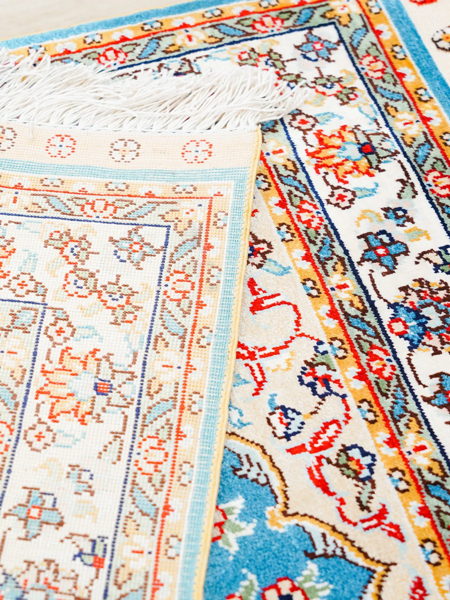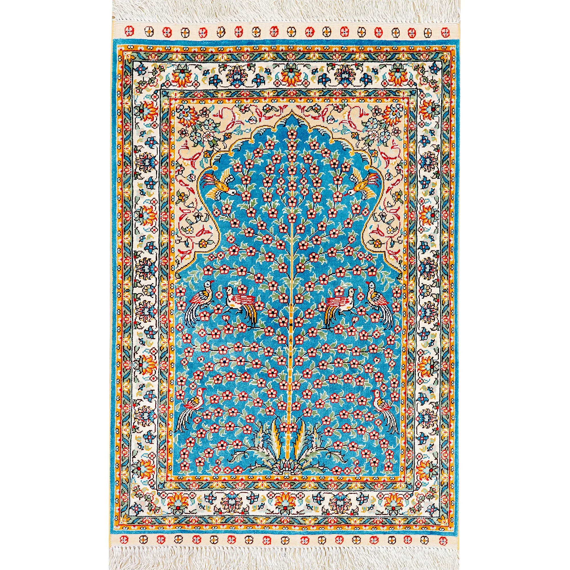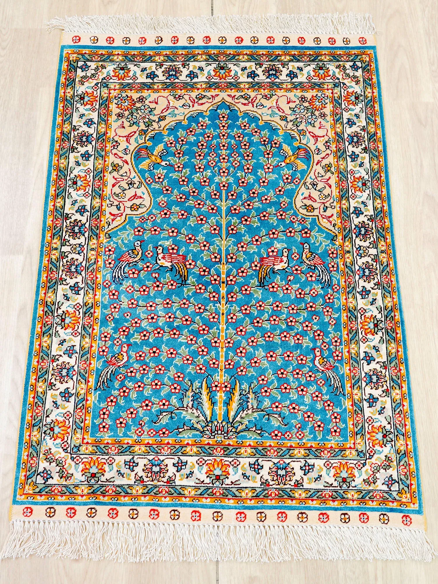 天匠の手作りシルクカーペット - 美しい青のペルシャデザイン、結び目編みの欧米スタイルタペストリー (60x90cm) - お部屋を優雅に彩る高級感溢れる逸品!