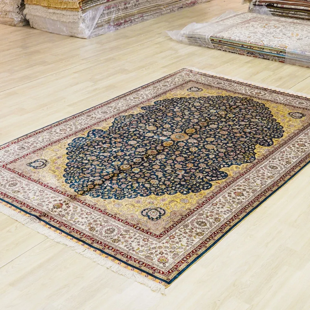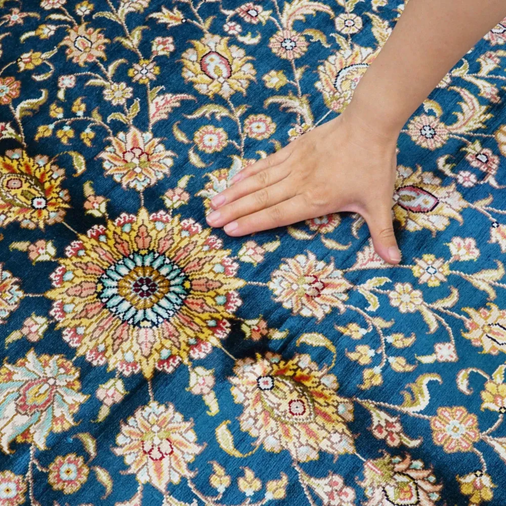 Heaven Artisan Handcrafted Genuine Silk Persian Carpet - Exquisite Silk Rug Exported to Turkey, Stunning Blue Design, Size: 180x270cm