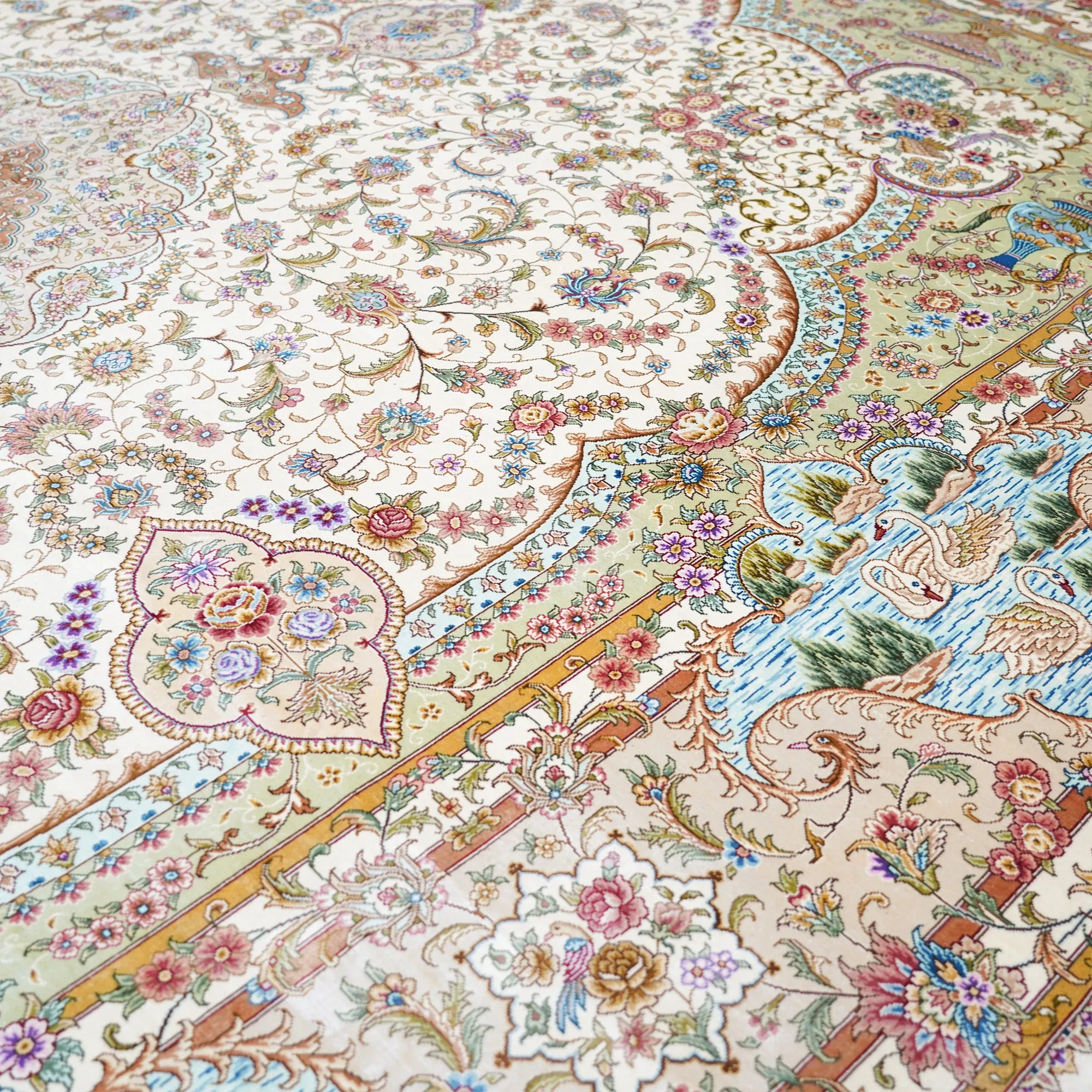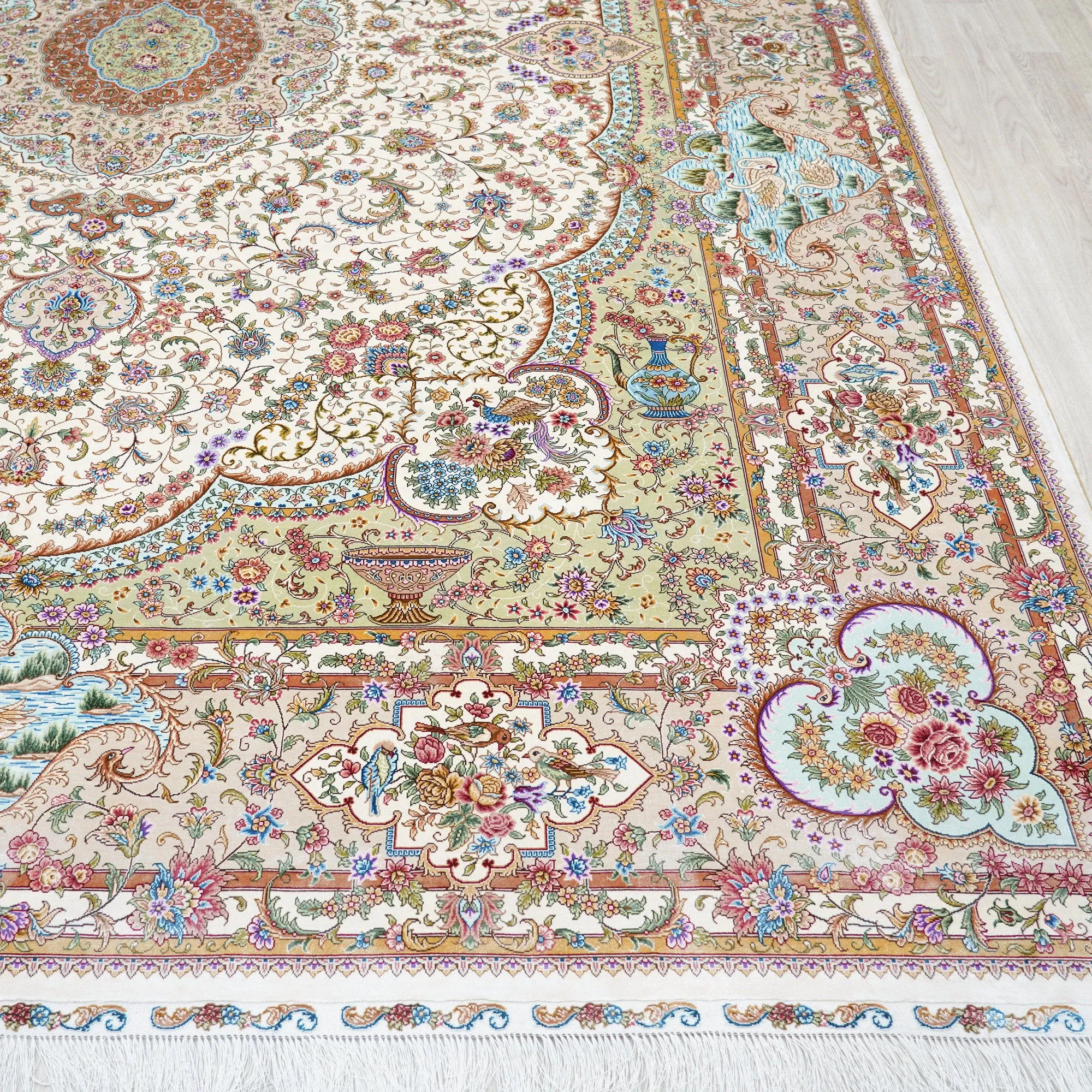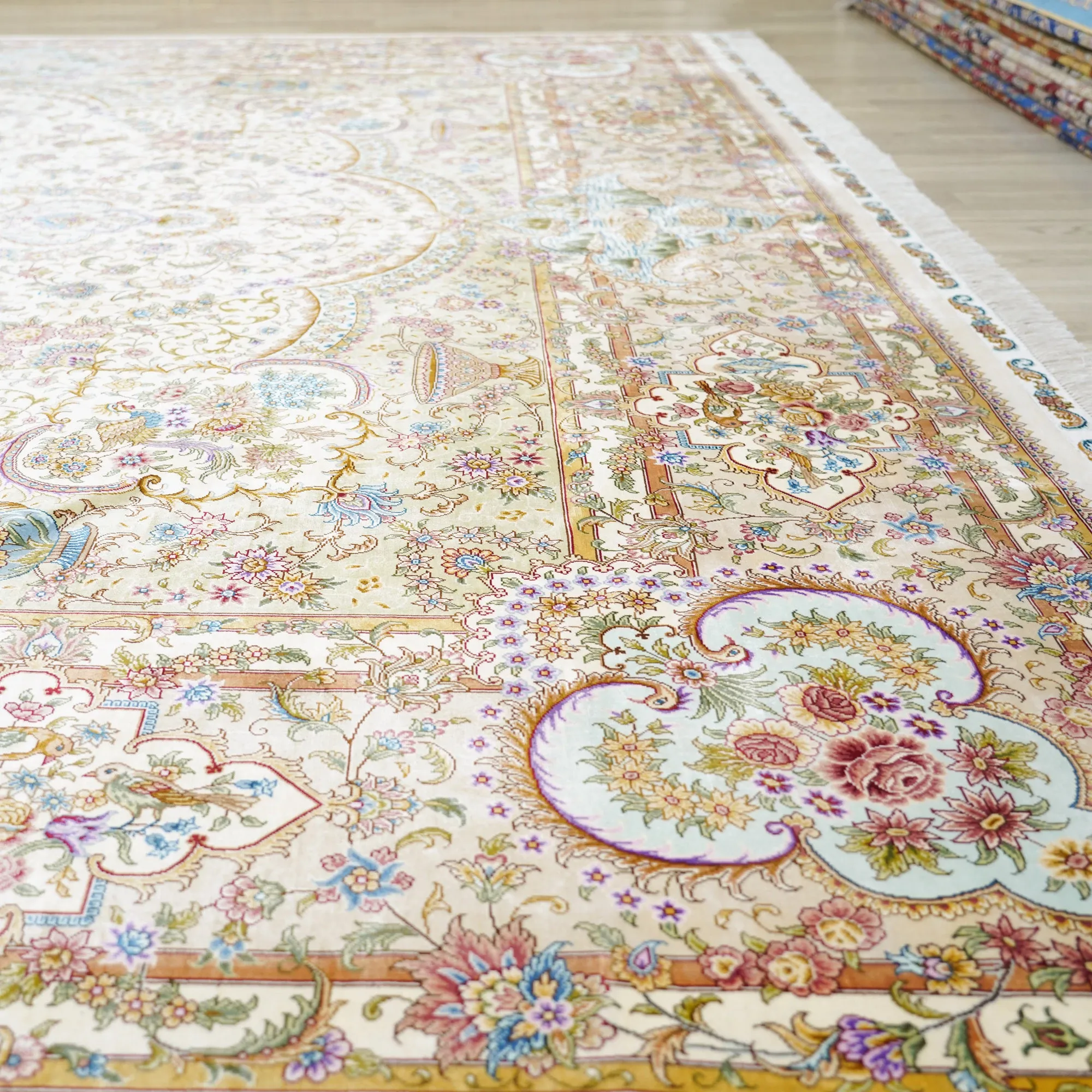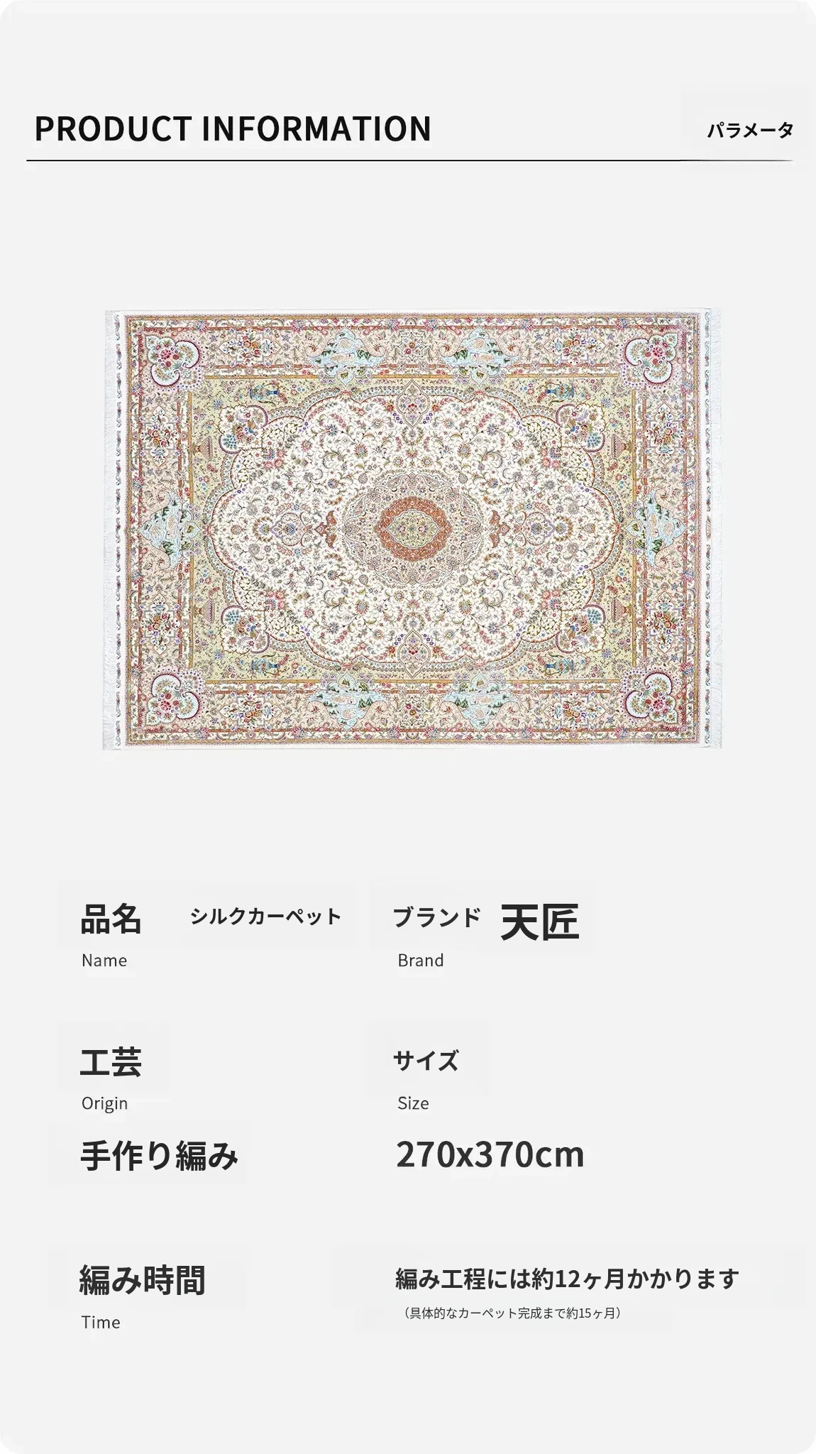 天匠の手作りシルクラグ - ヴィラの寝室にぴったりな高級手編みカーペット (270x370cm) - 贅沢な質感でお部屋を華やかに演出!