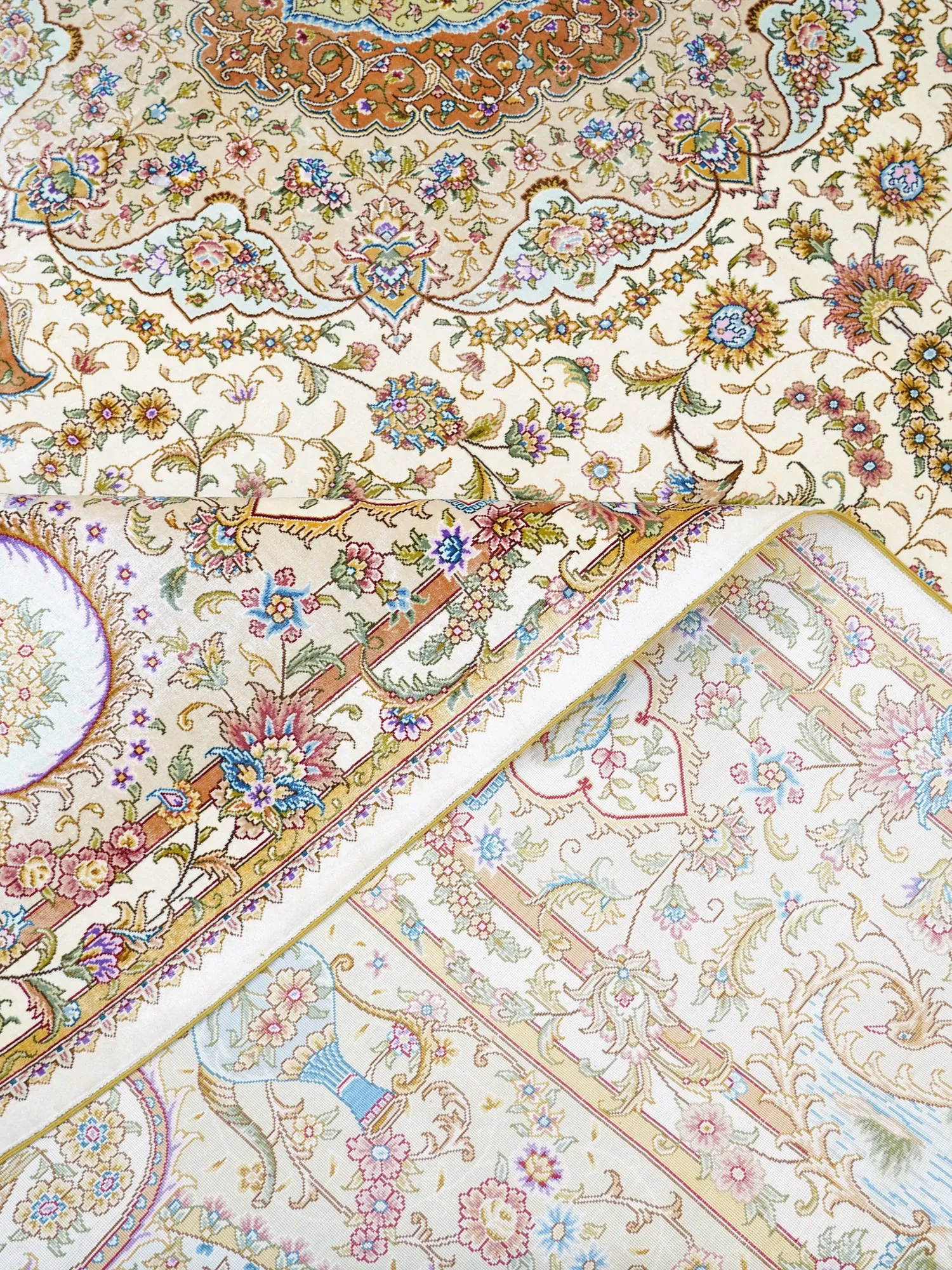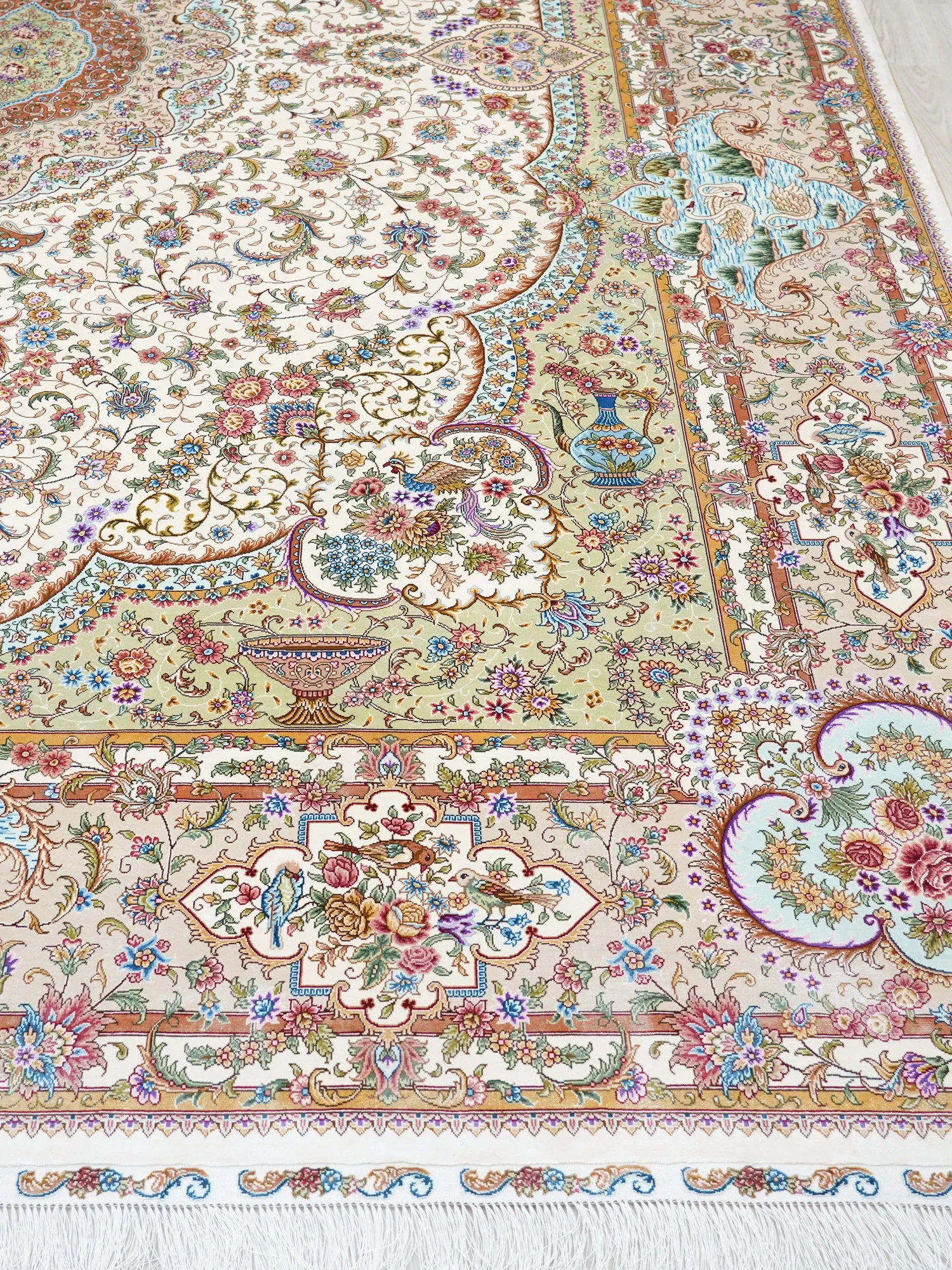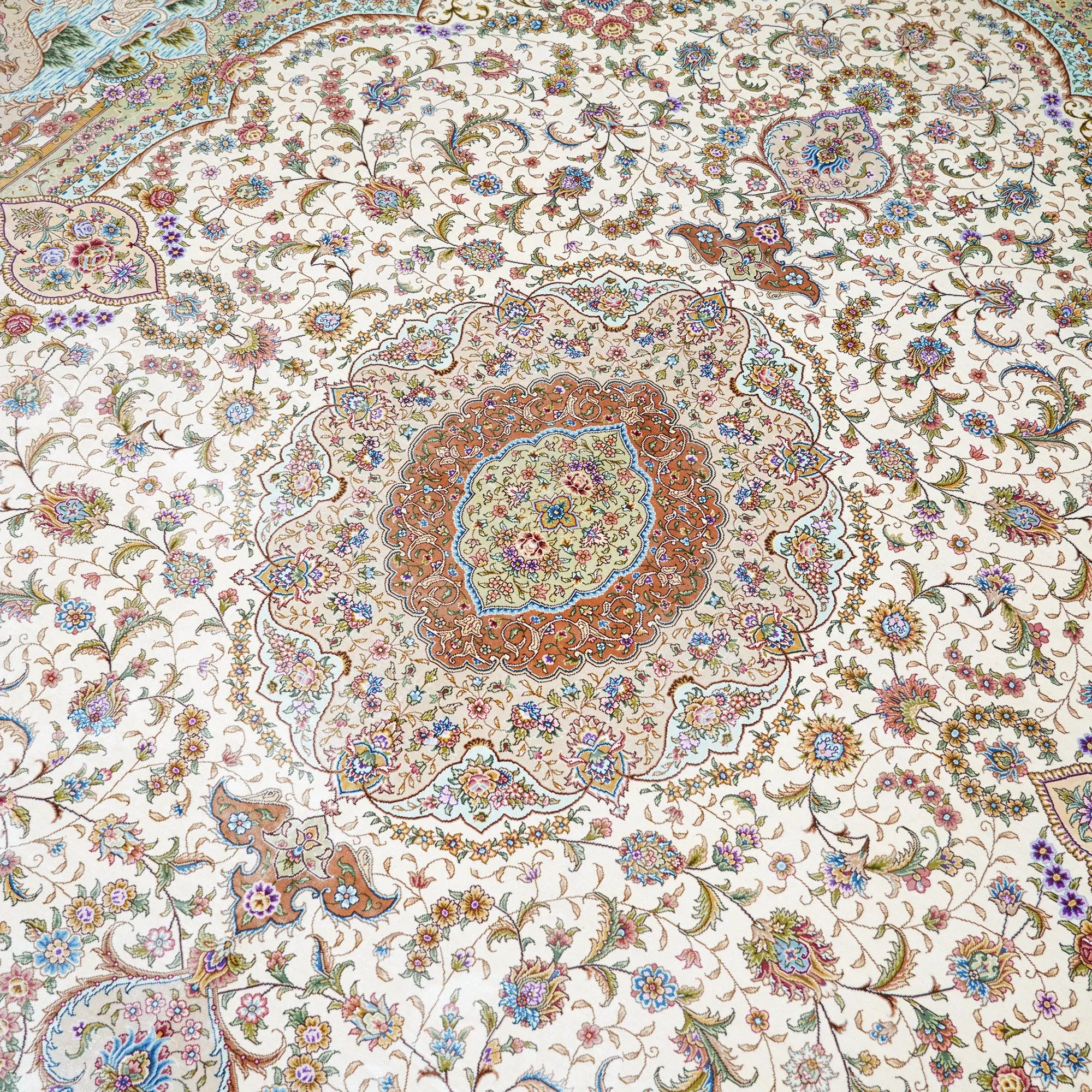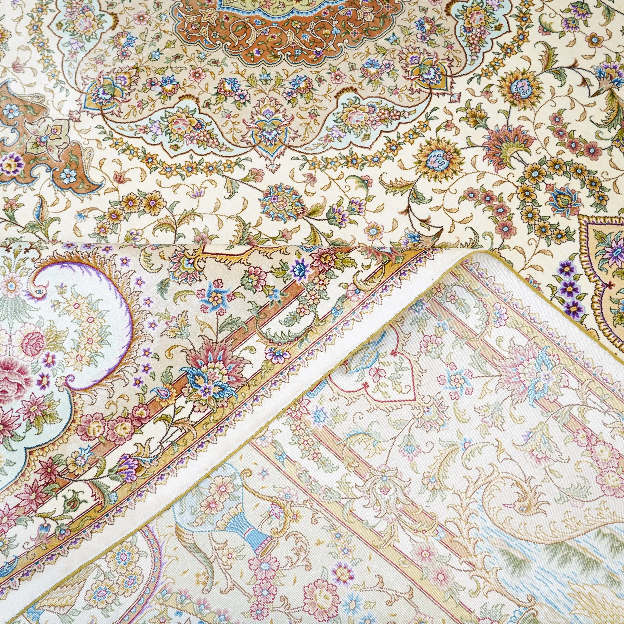 天匠の手作りシルクラグ - ヴィラの寝室にぴったりな高級手編みカーペット (270x370cm) - 贅沢な質感でお部屋を華やかに演出!
