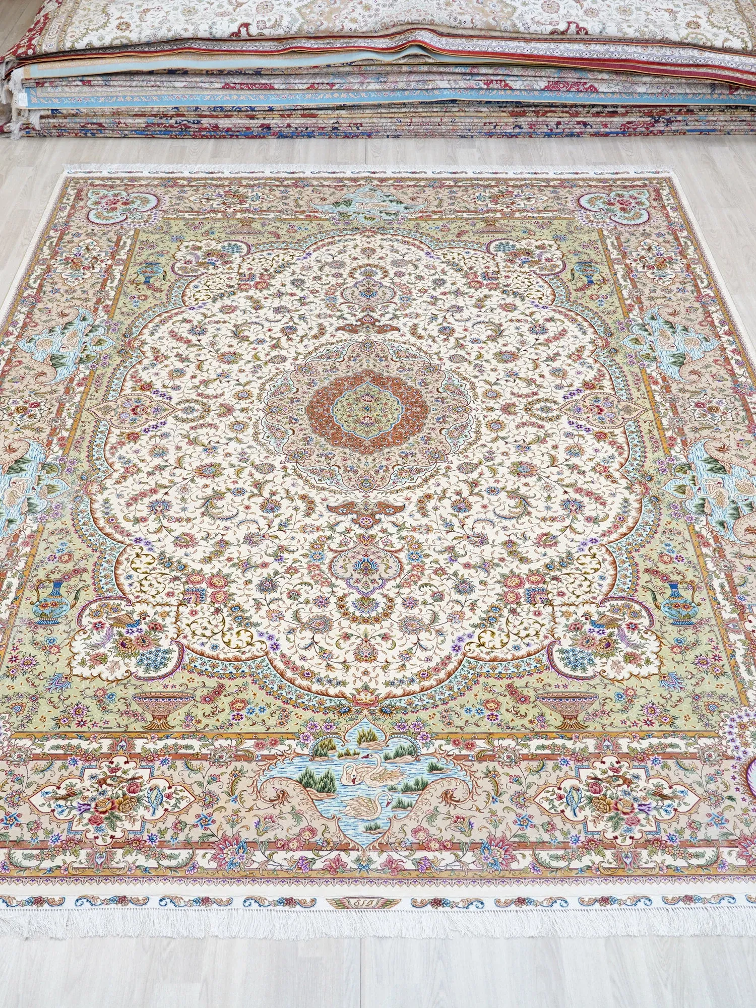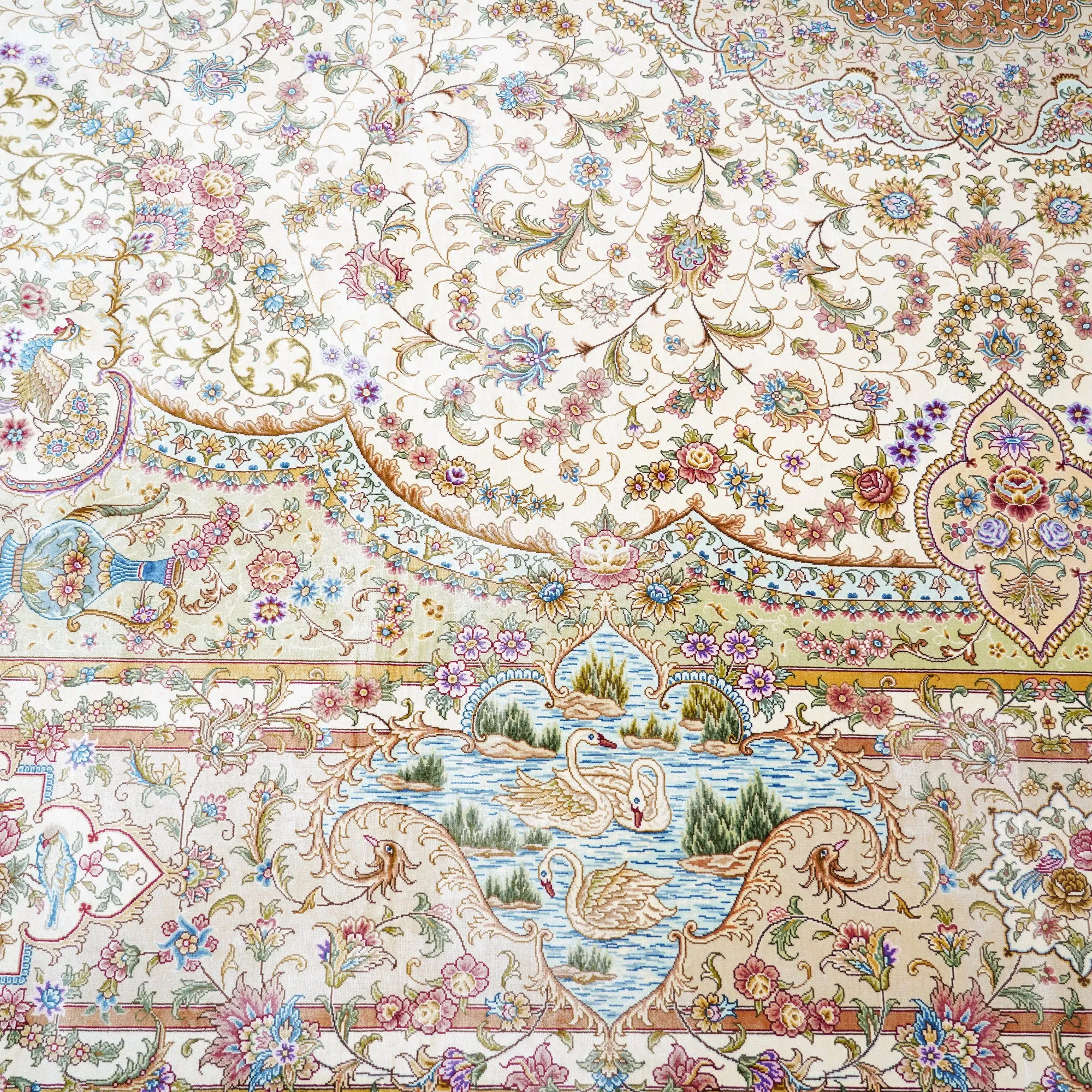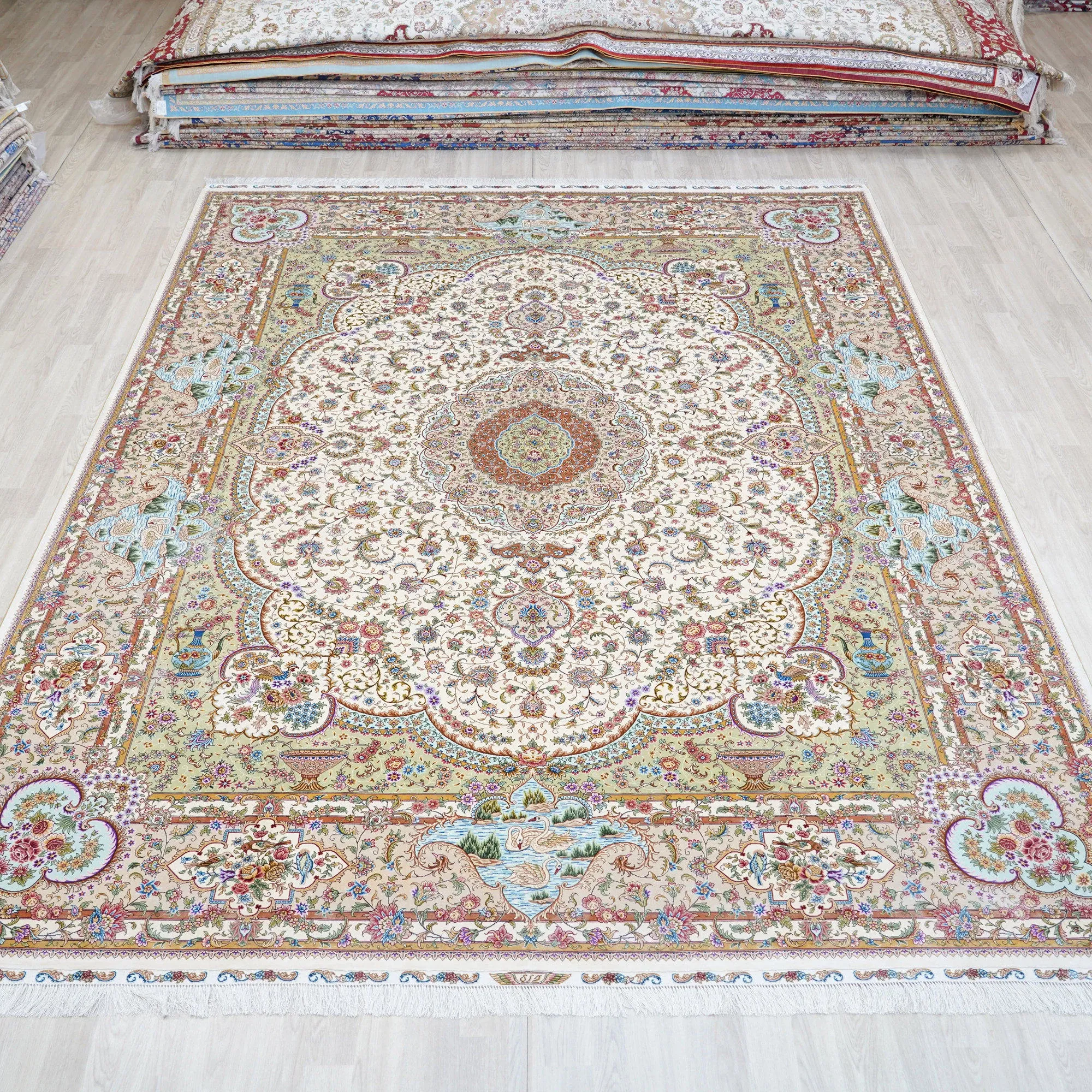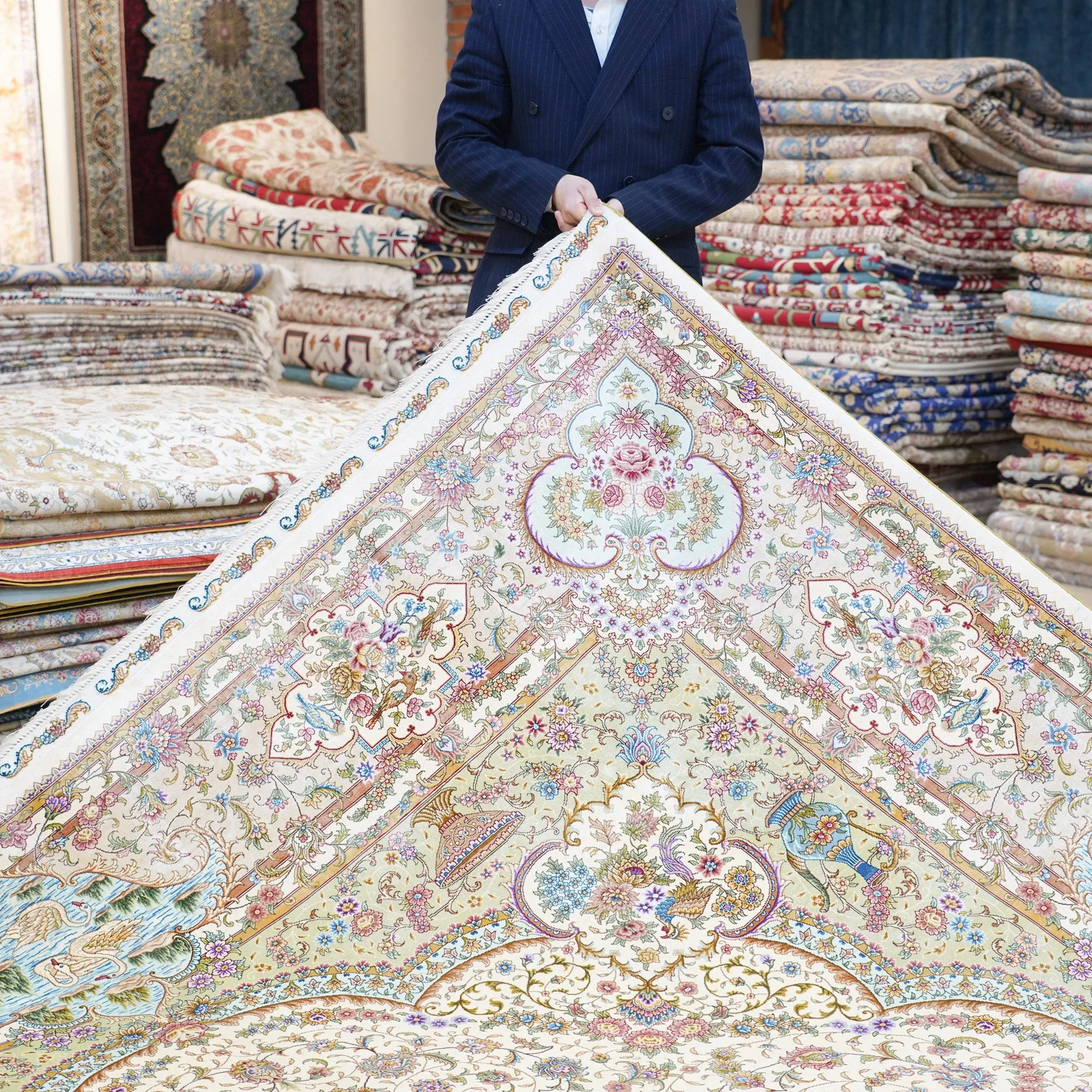 天匠の手作りシルクラグ - ヴィラの寝室にぴったりな高級手編みカーペット (270x370cm) - 贅沢な質感でお部屋を華やかに演出!