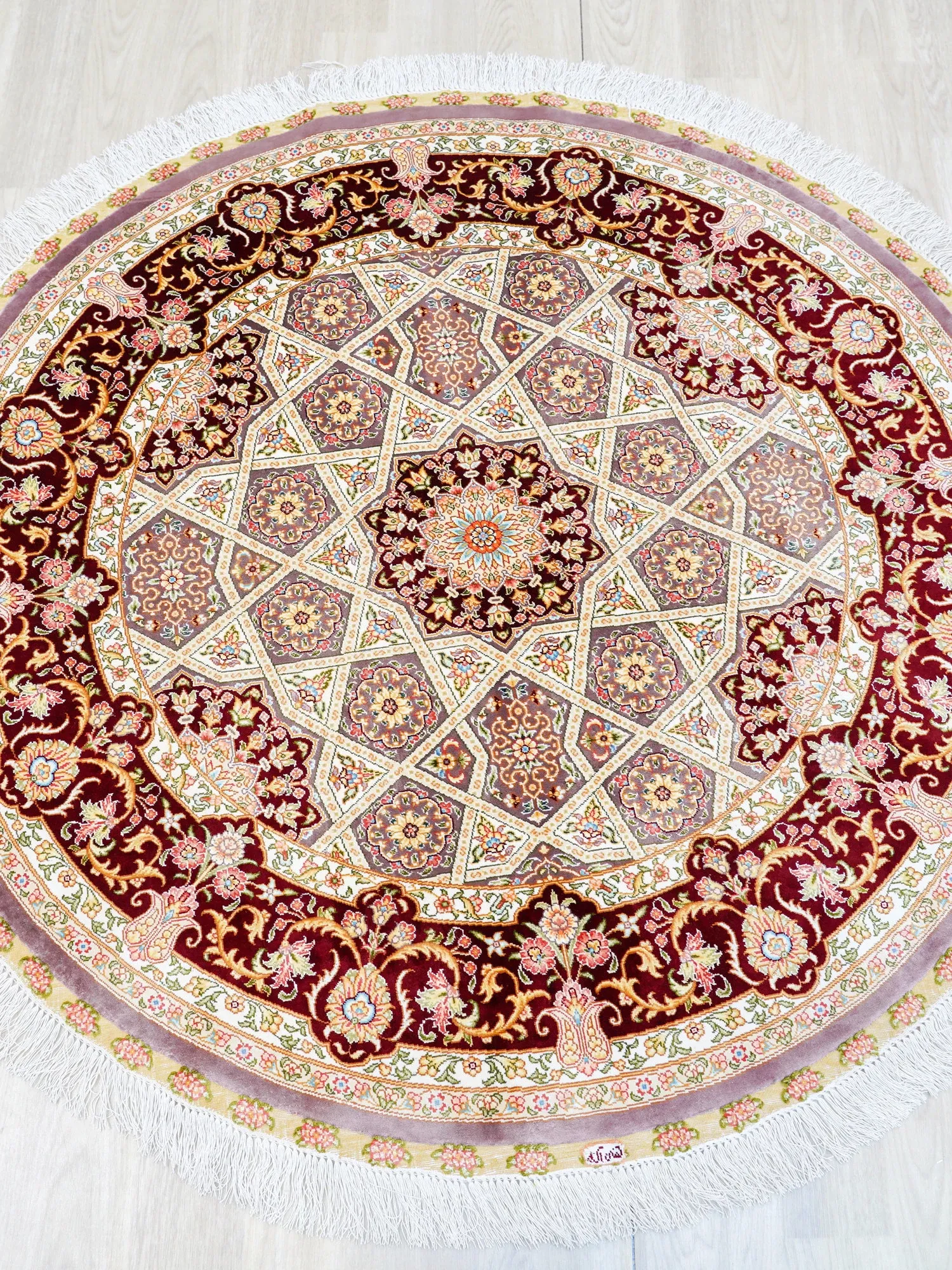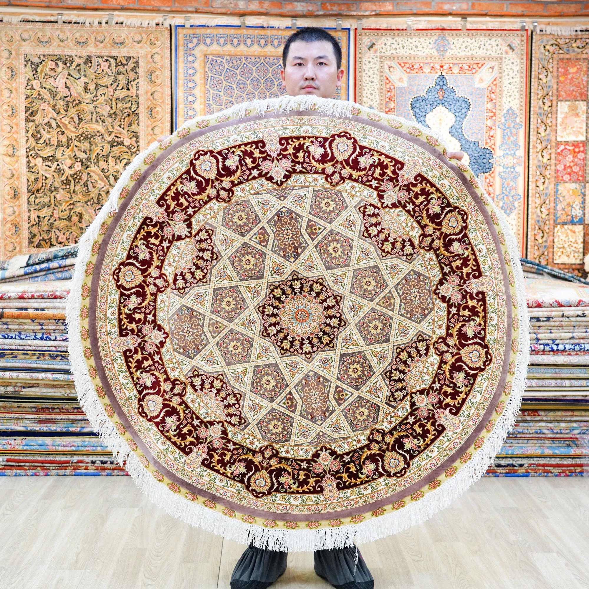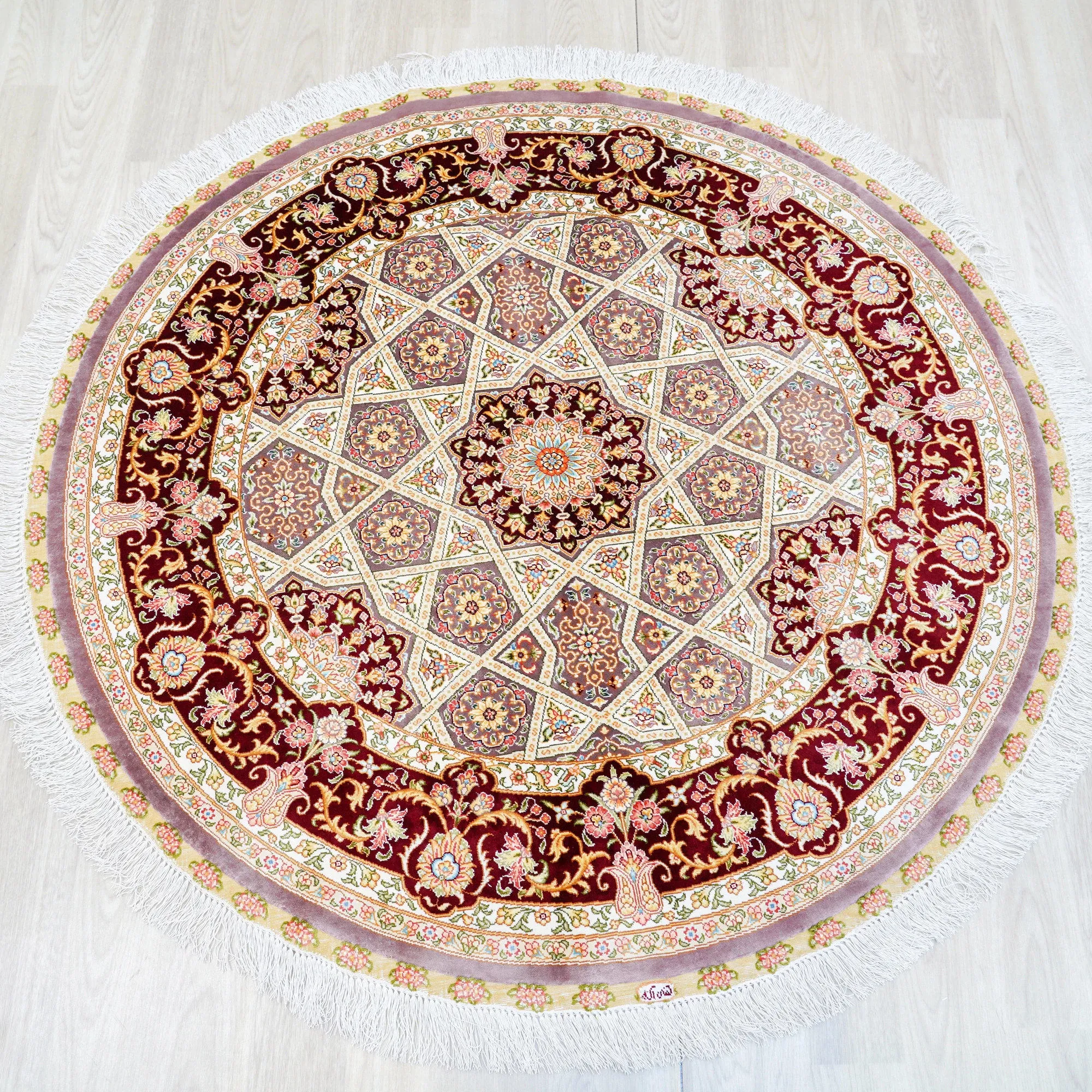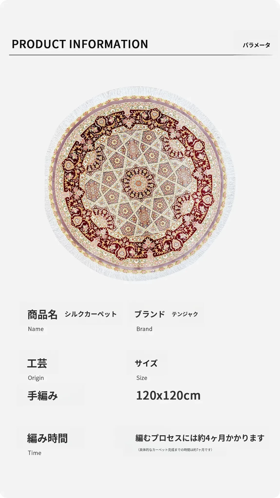 天匠の手作りシルクカーペット - リビングやピアノに最適!アメリカンスタイルで耐汚れ、120x120cmの使いやすいサイズ。高級感あふれるデザインで、あなたの空間を華やかに彩ります!