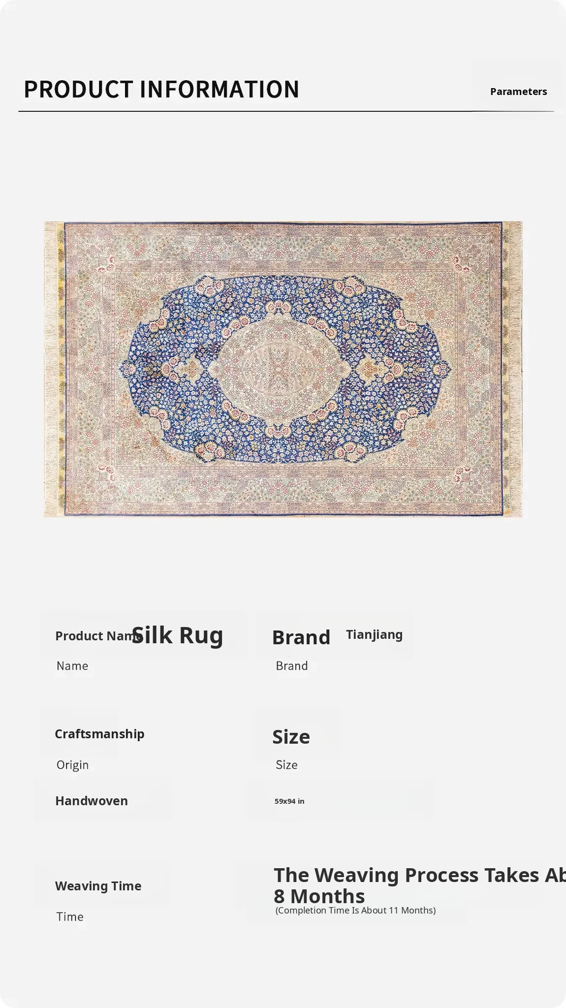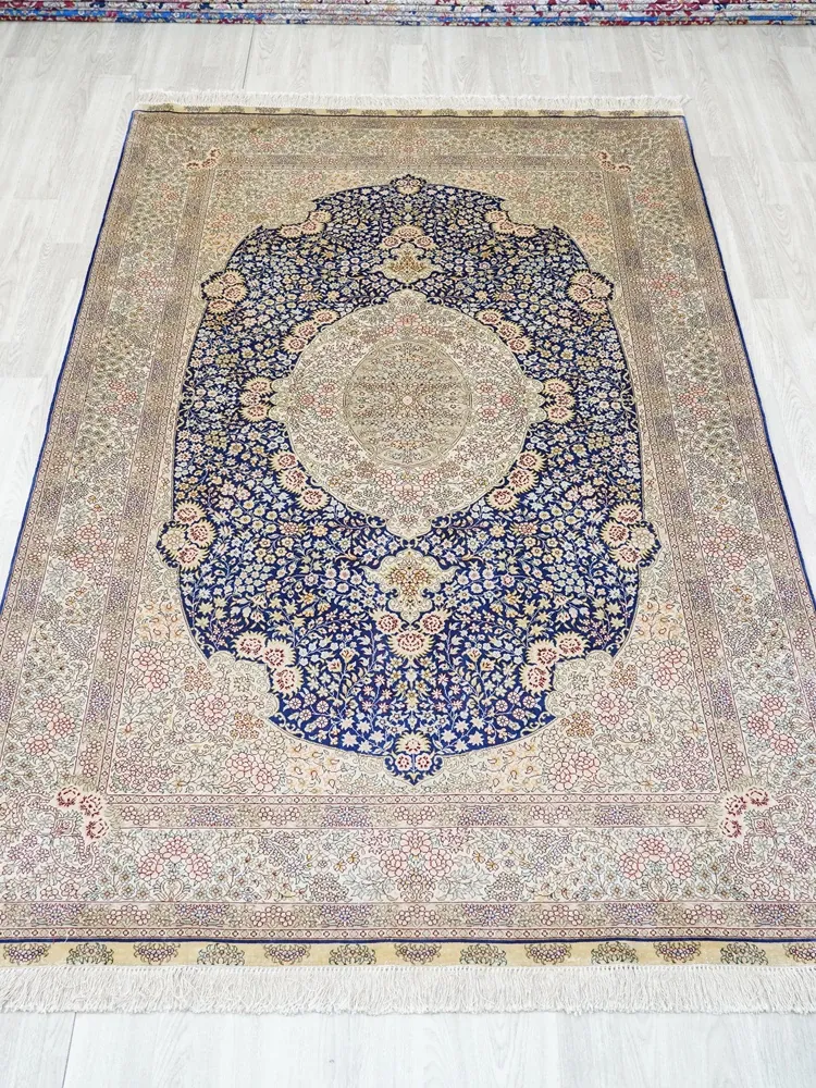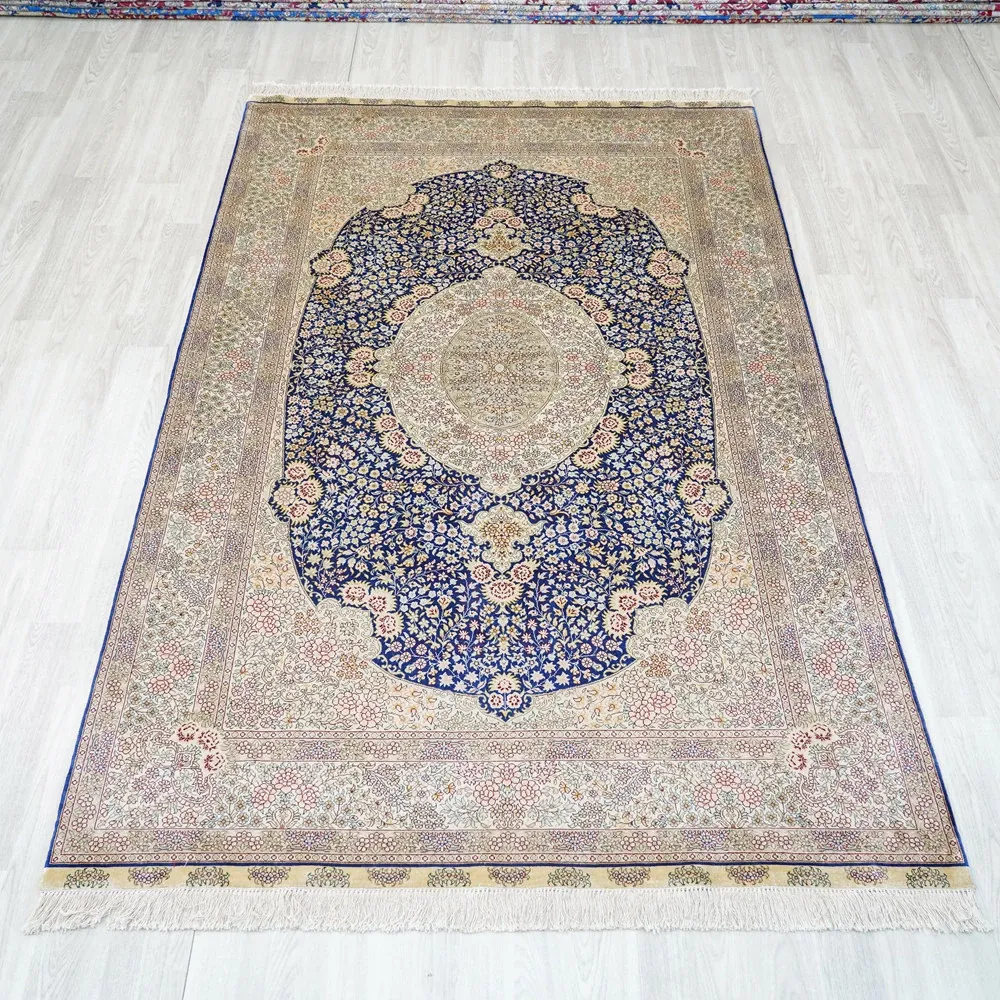 Heaven Artisan Handmade Silk Carpet - 150x240cm Persian Silk Area Rug for Bedroom and Bedside, Exquisite Handwoven Design