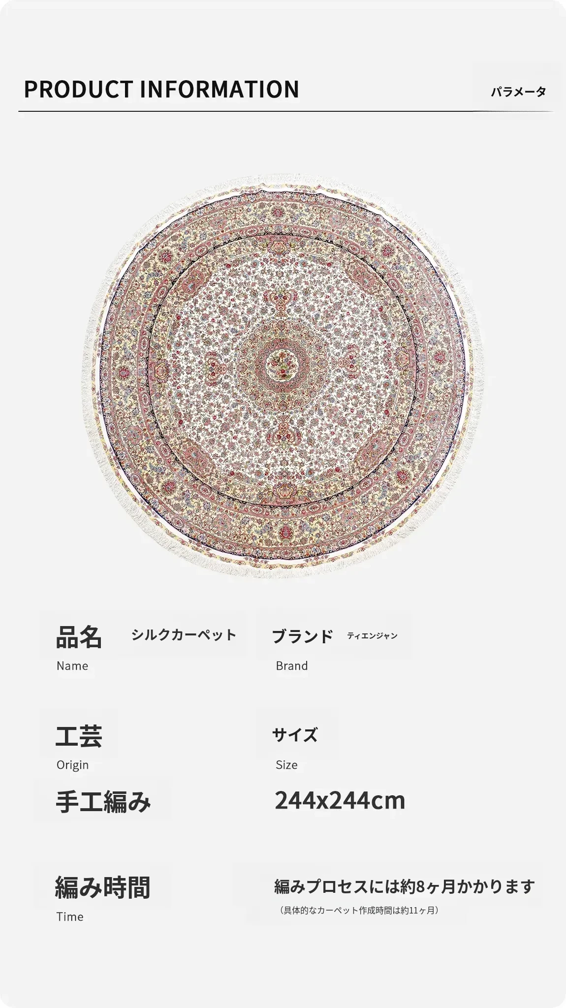 天匠手作の本物シルクラグ - 欧米向け、リビングや寝室に最適!全国どこでも試し敷きサービスあり、240x240cmの贅沢なサイズで、優雅な空間を演出します。