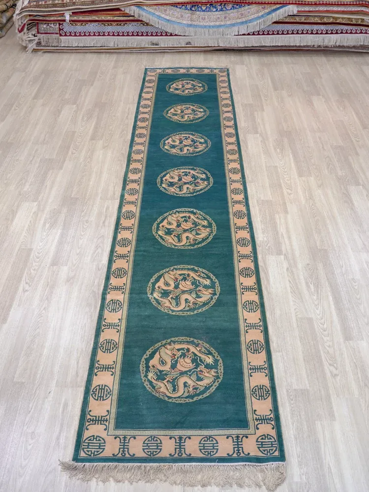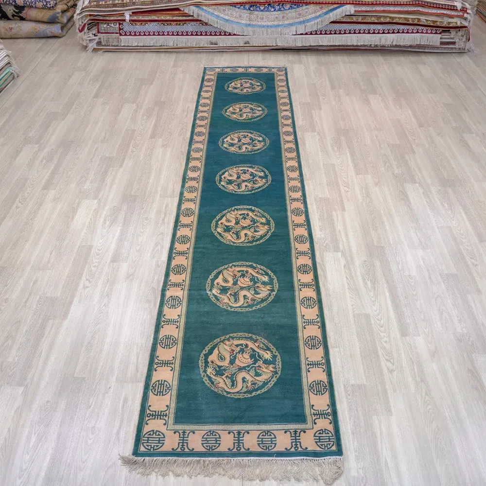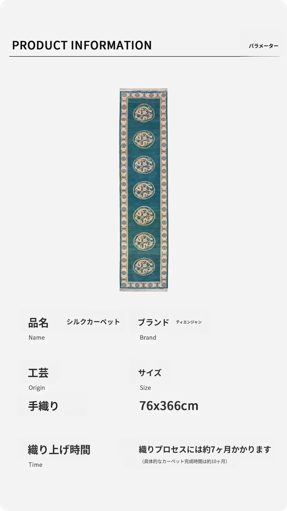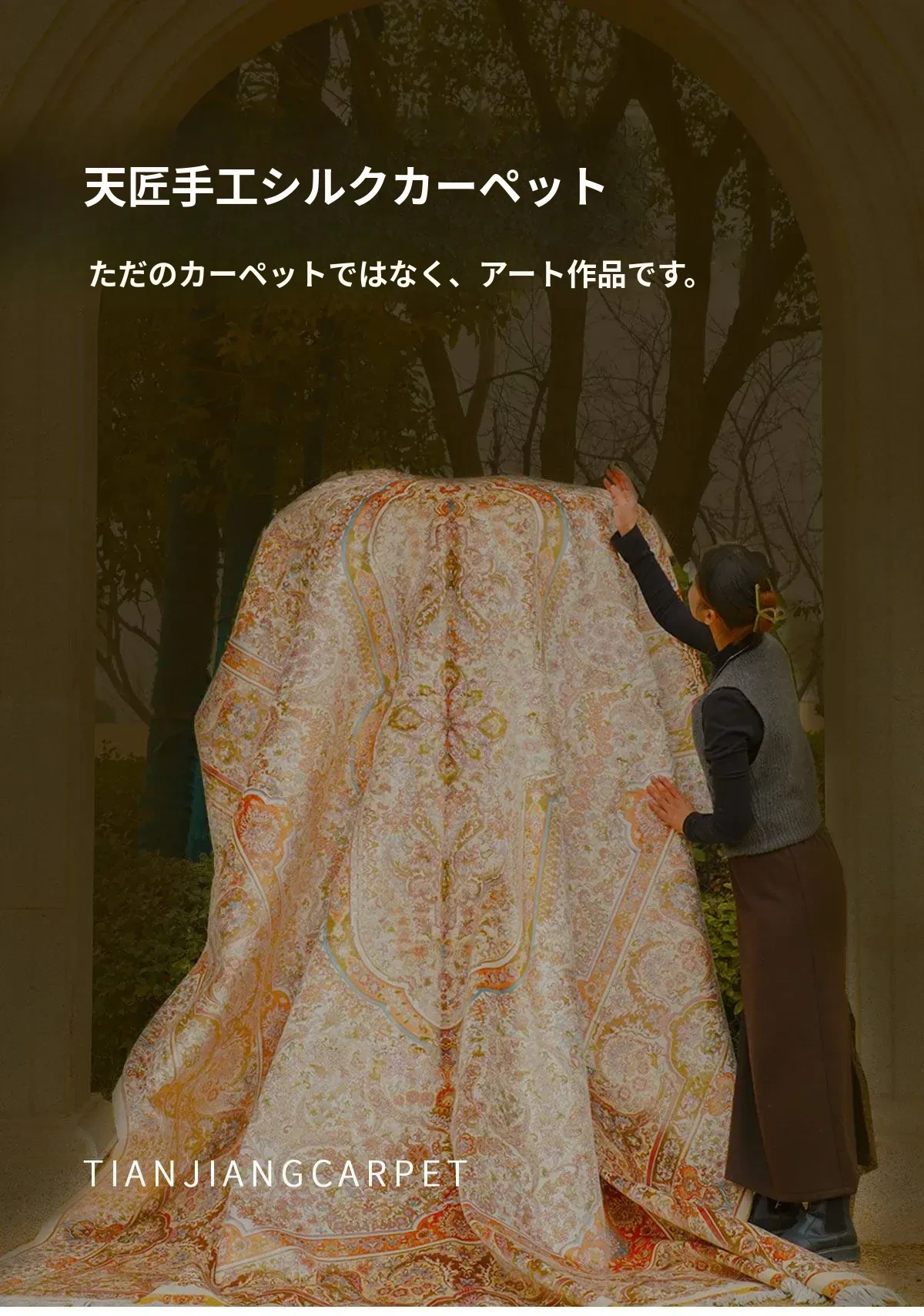天匠手作の本物シルクラグ - リビングや玄関にぴったりの花柄デザイン!フォーマルな空間を演出し、ホルムアルデヒド不使用で安心。高級感あふれる耐汚れ仕様、76x366cmの使いやすいサイズ!