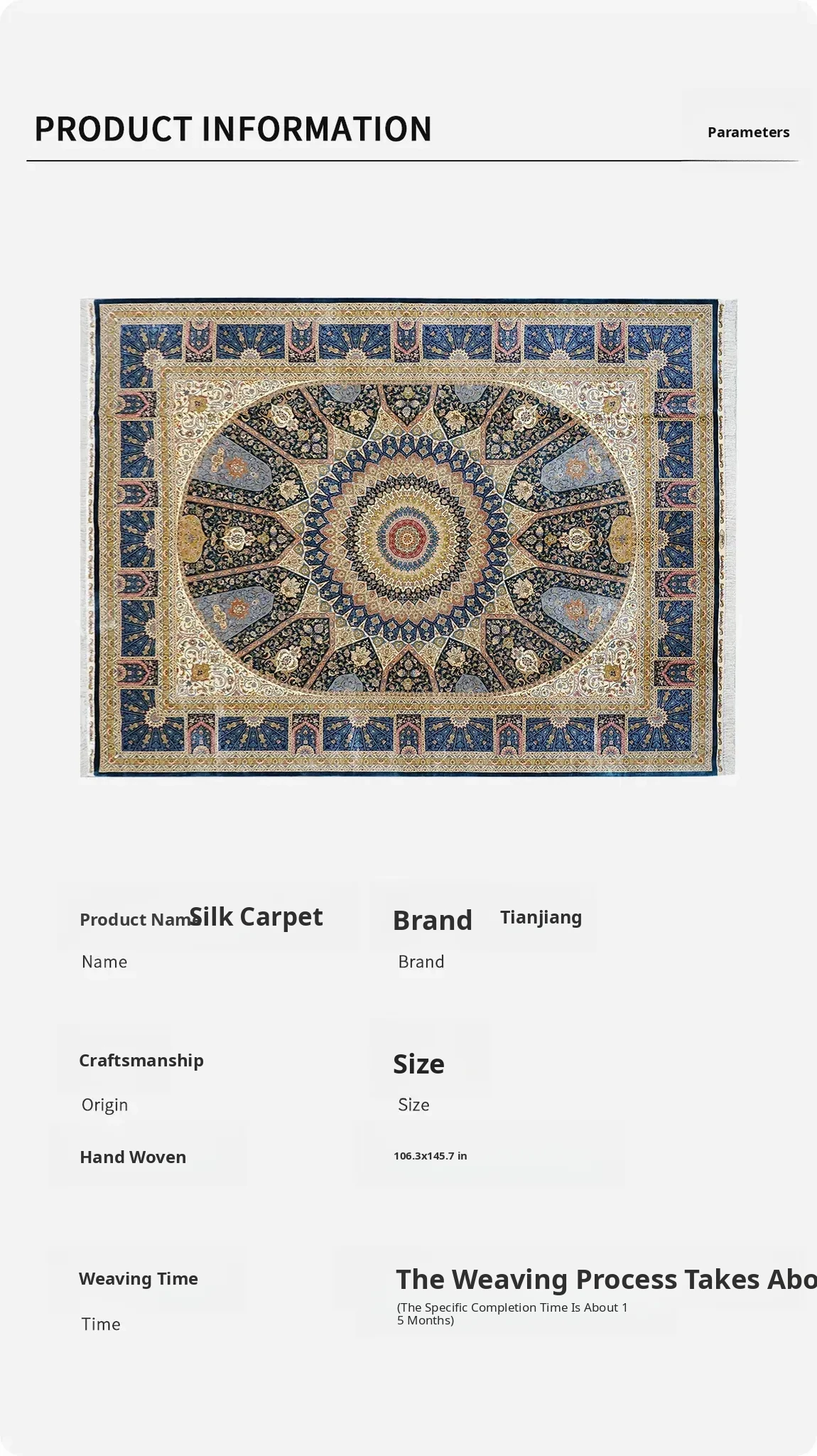 Heaven Crafts Handmade Silk Area Rug - Elegant European Style for Living Room, Bedroom, and Study - Luxurious 270x370cm Silk Carpet, Perfect for Enhancing Your Home Décor