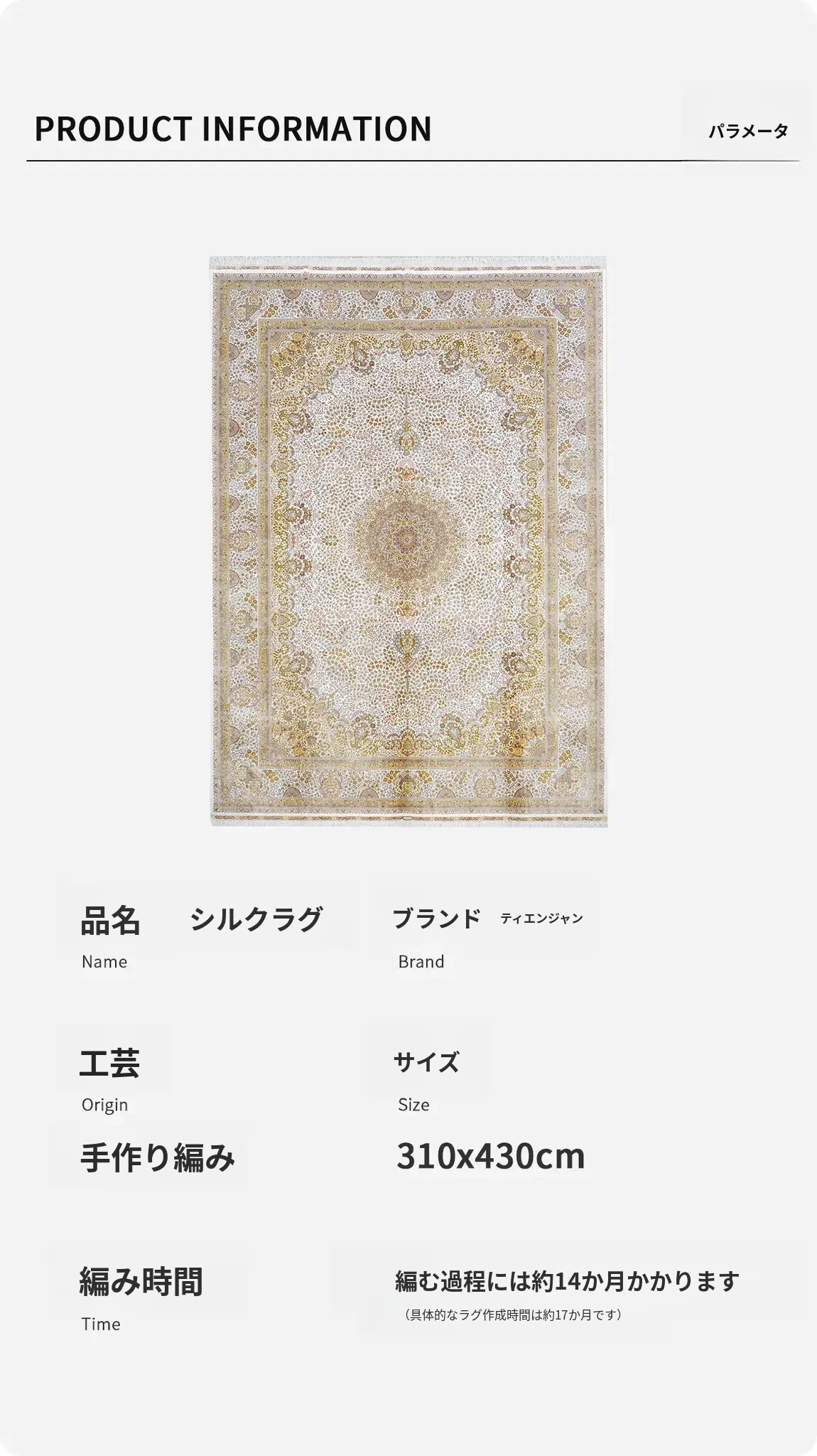 匠心手作!南阳産の本物のシルクカーペット、トルコ向け輸出商品。豪華な310x430cmサイズ、贅沢な肌触りでお部屋を彩ります。