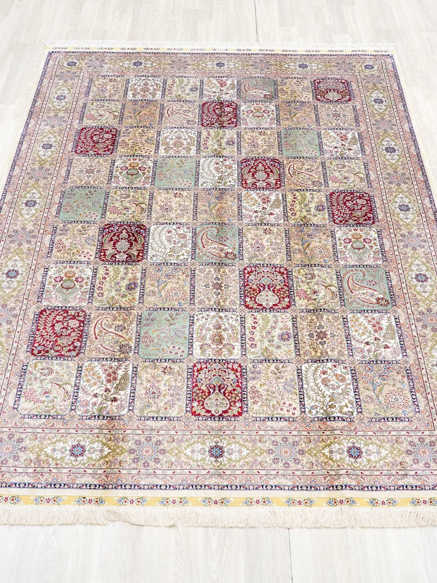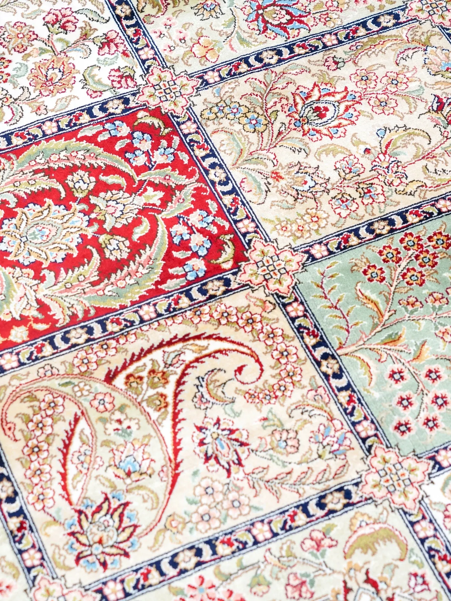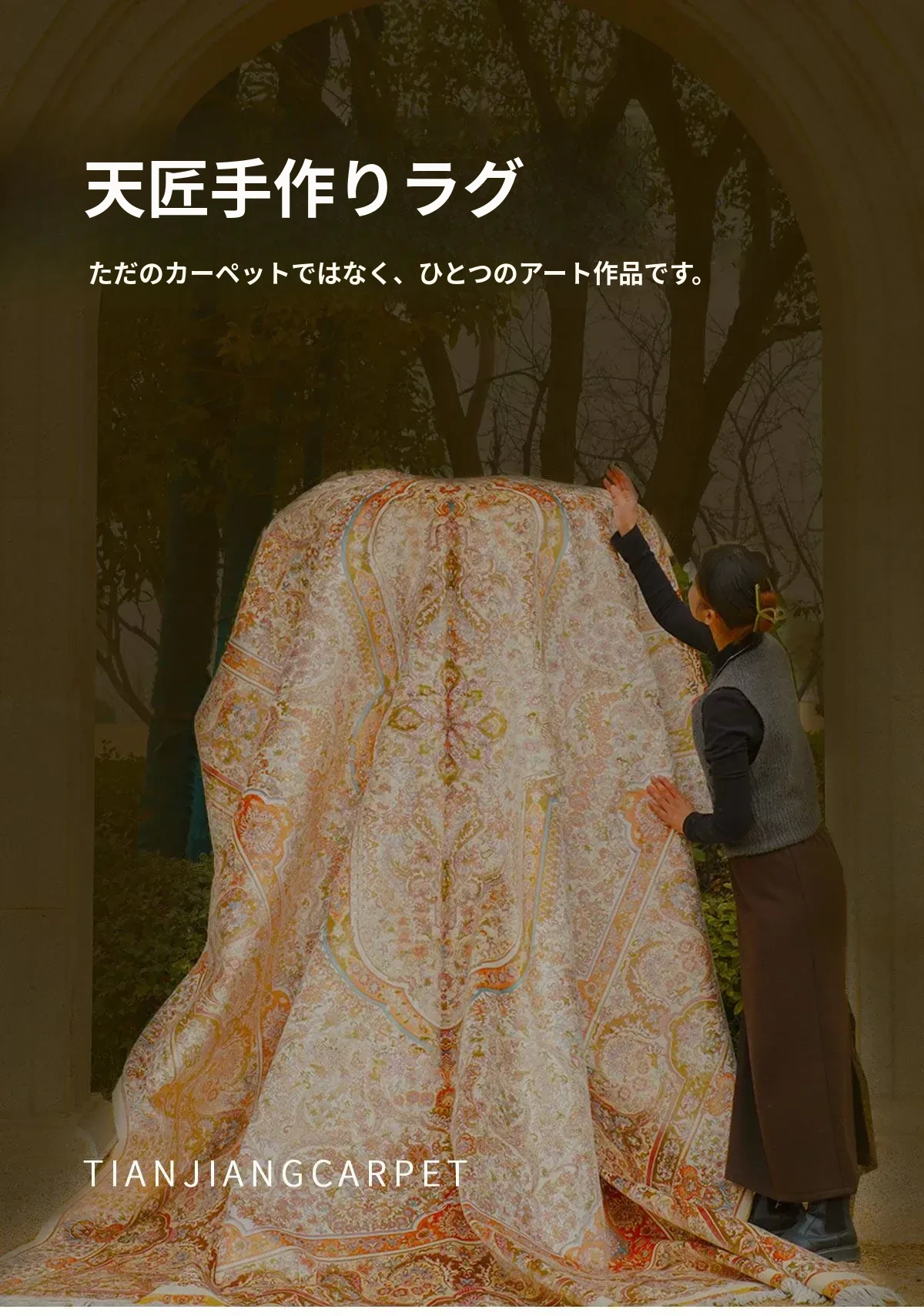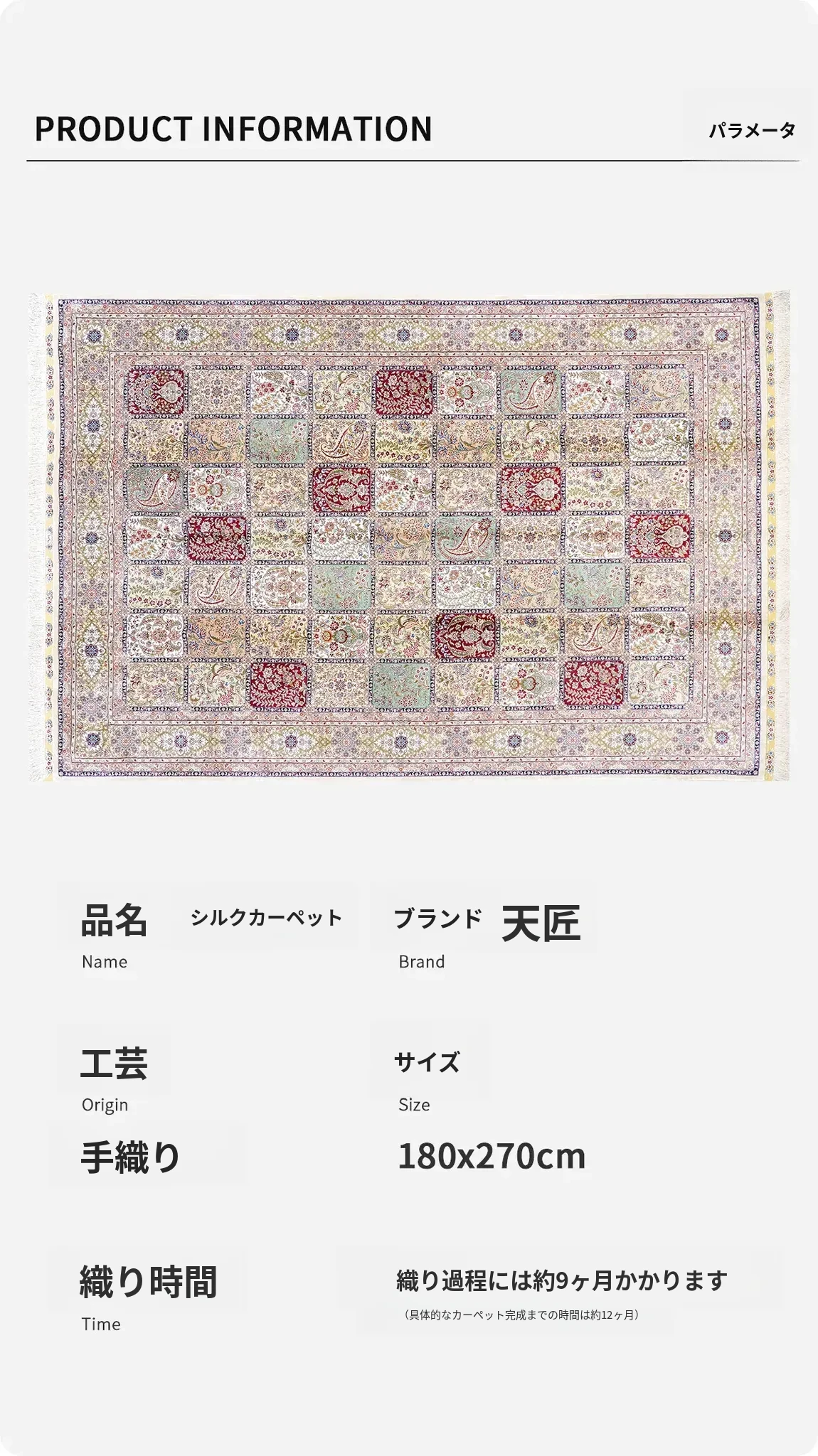 天匠の手作りシルクカーペット|ペルシャ絨毯|欧風植物染め|リビングにぴったりの180x270cmサイズ|高級感あふれるデザインでお部屋を華やかに演出!