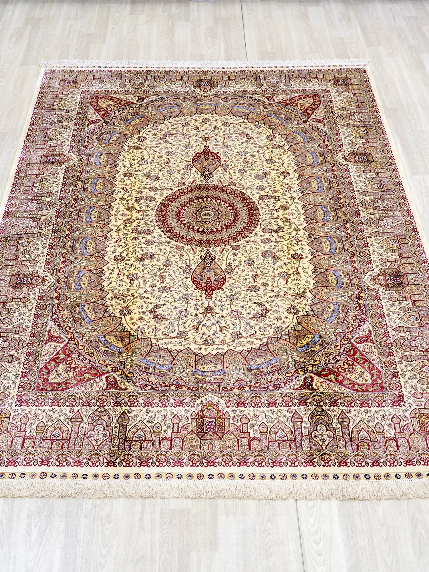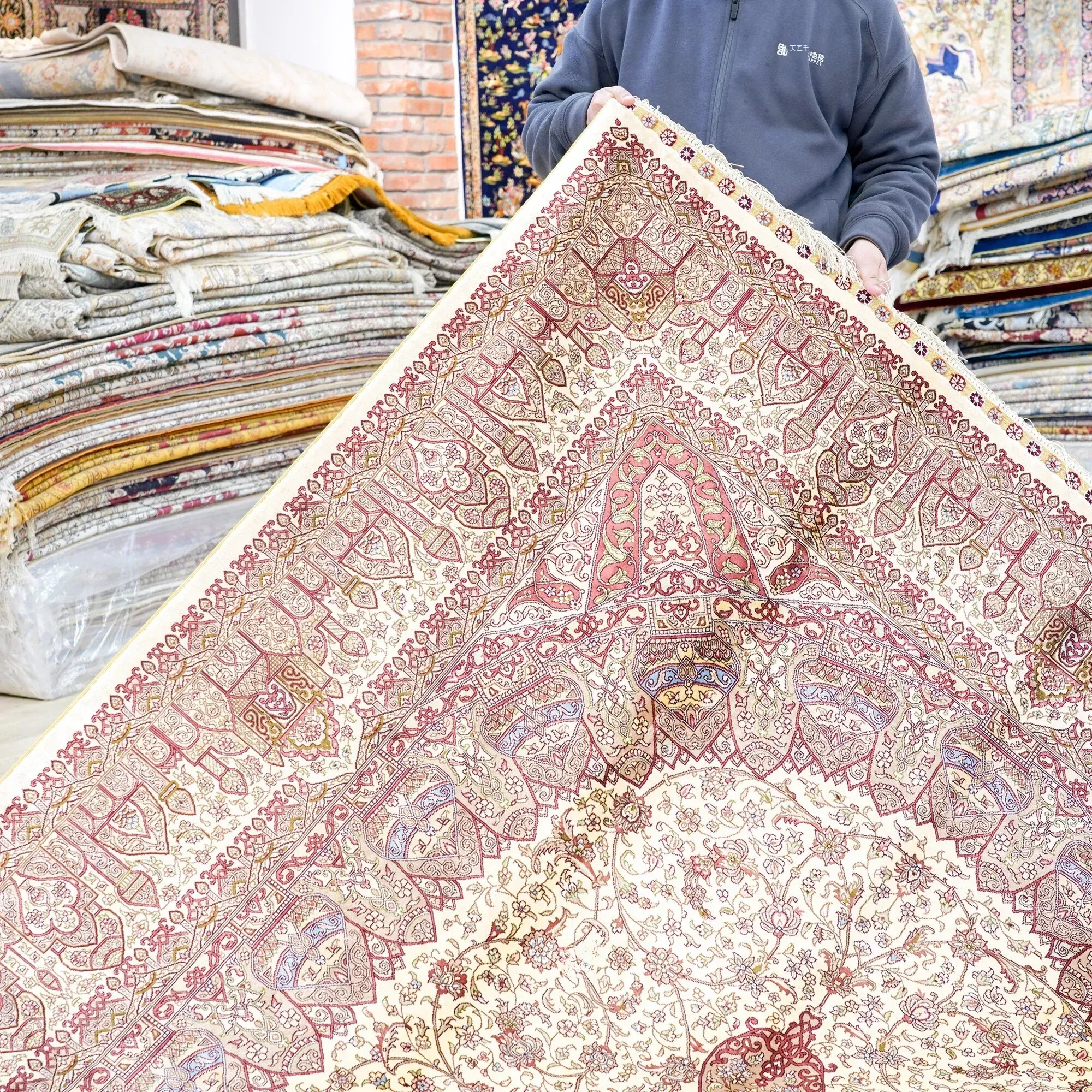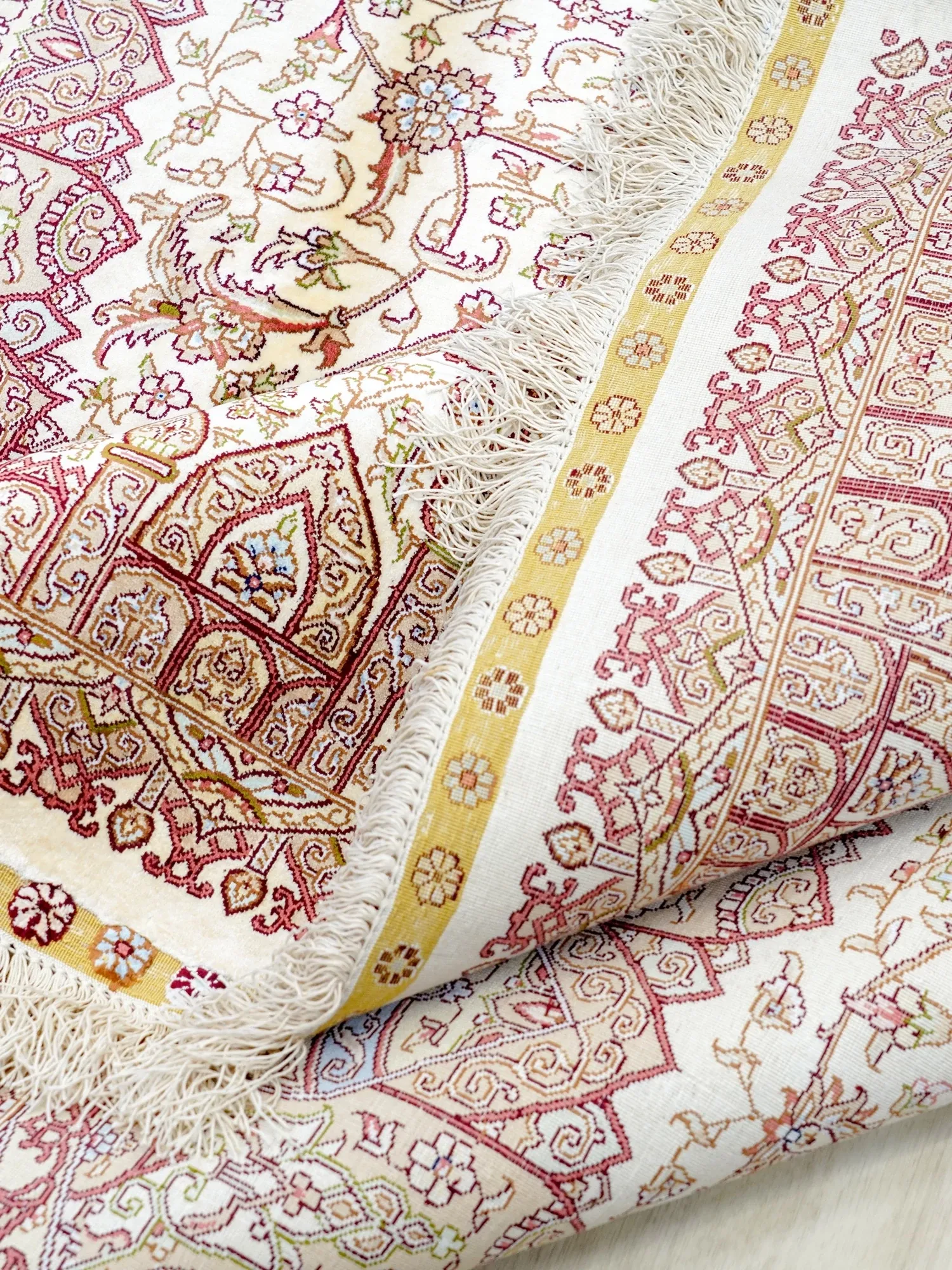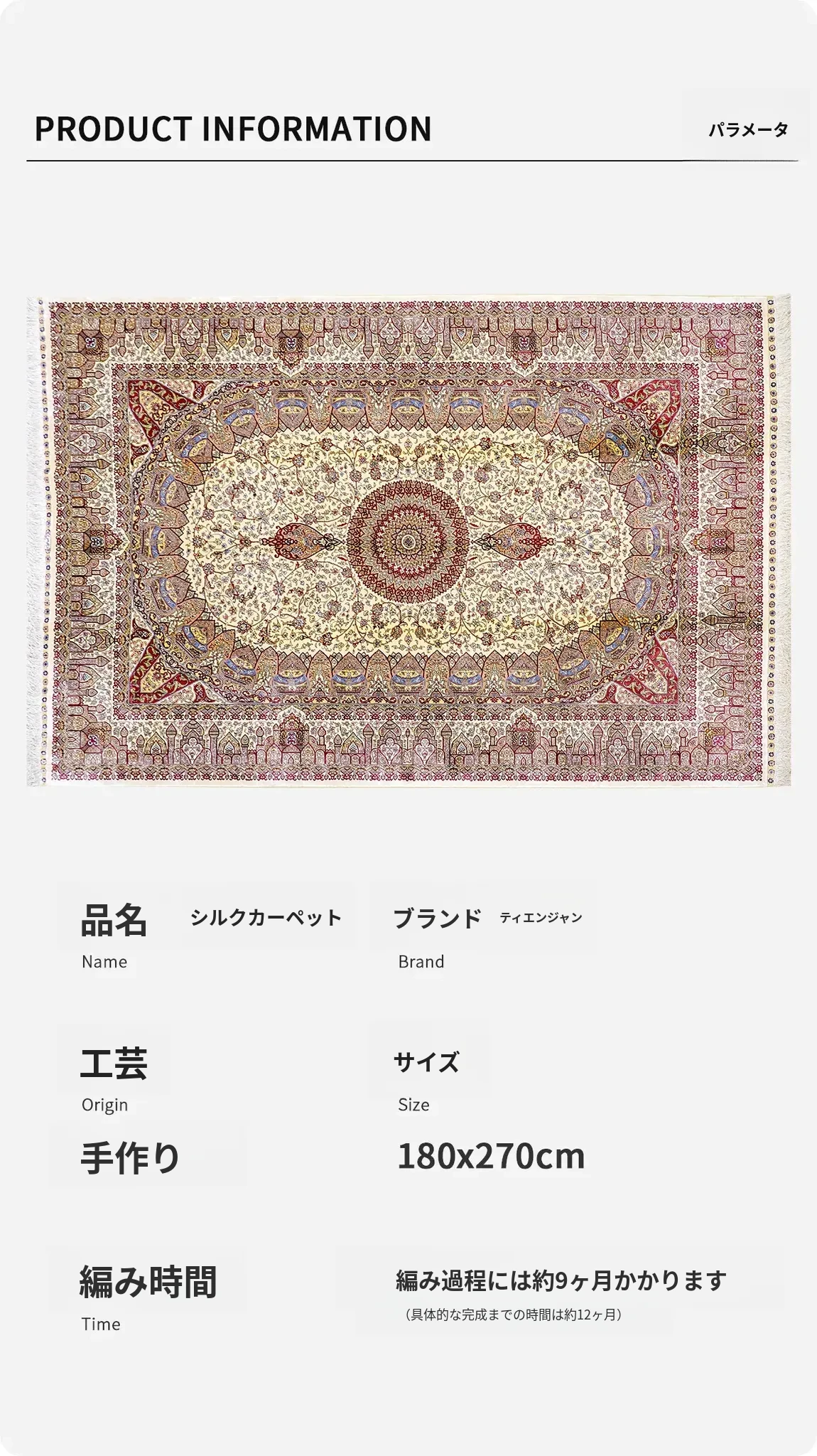 天匠手作シルクラグ ペルシャ絨毯 豪華な別荘リビング・寝室用 180x270cm サイズ、心を込めた手仕事で贅沢な空間を演出!