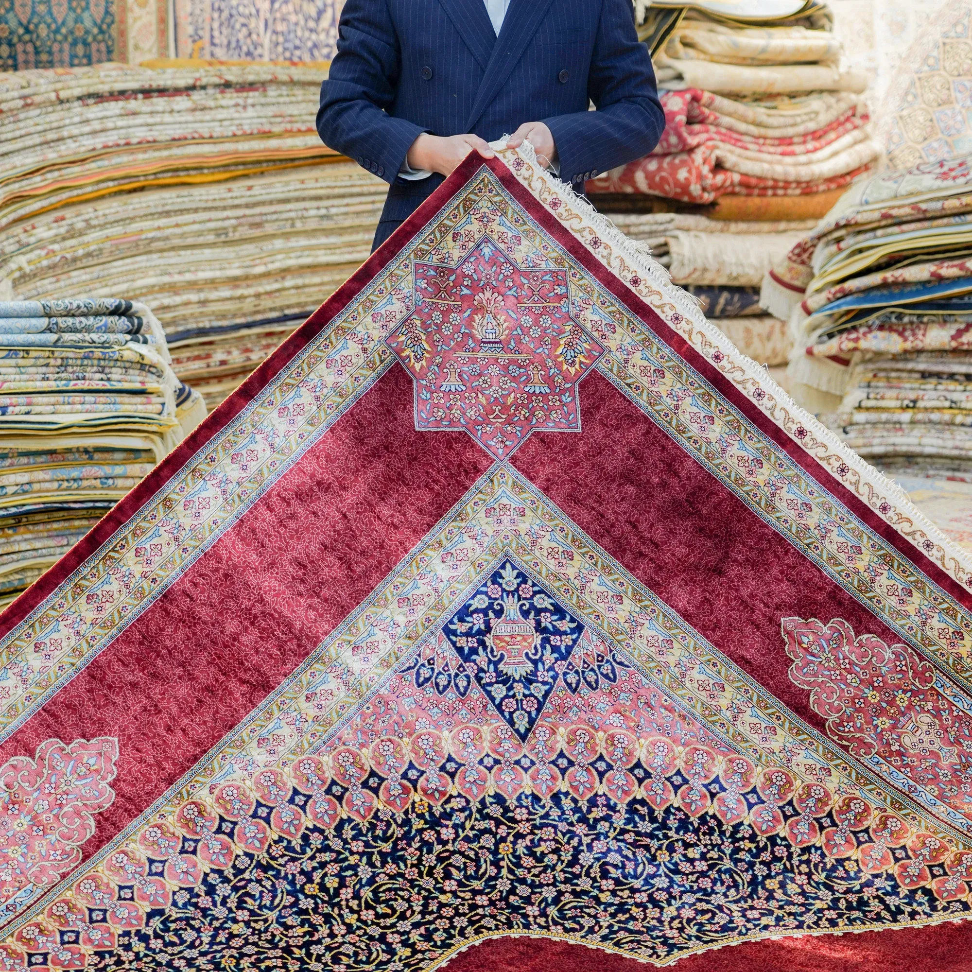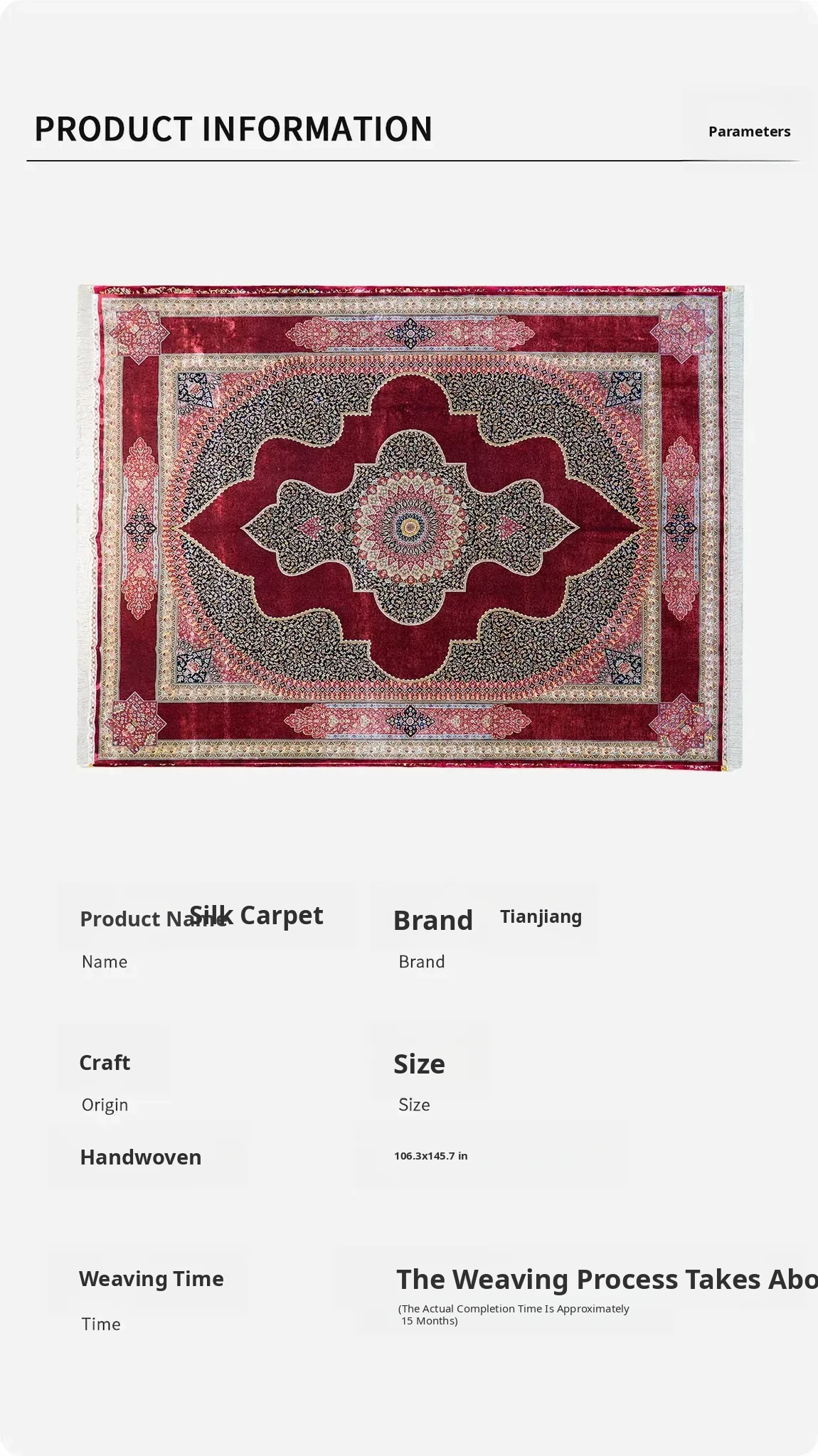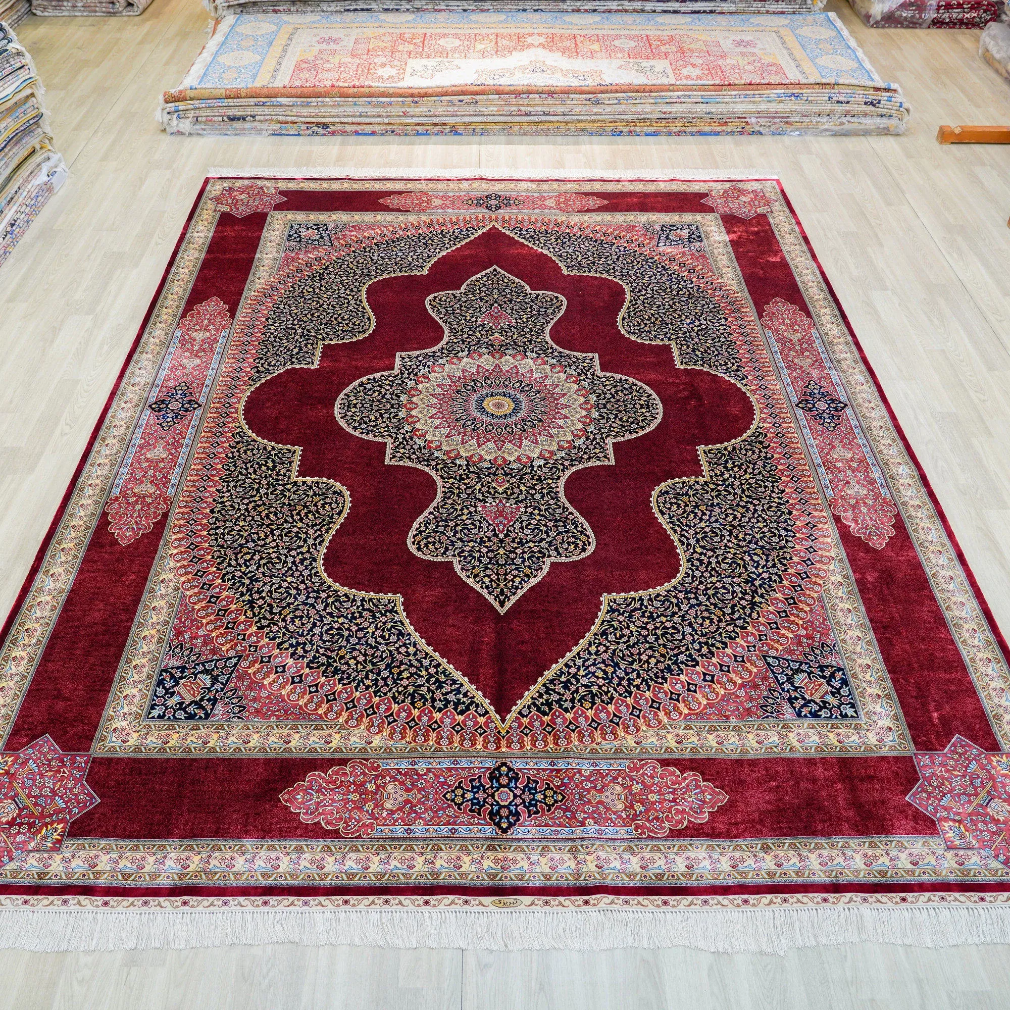Heaven Crafts Handwoven Genuine Silk Carpet - Persian, Minimalist American, European, and French Styles - 270x370cm Luxury Area Rug for Elegant Home Décor
