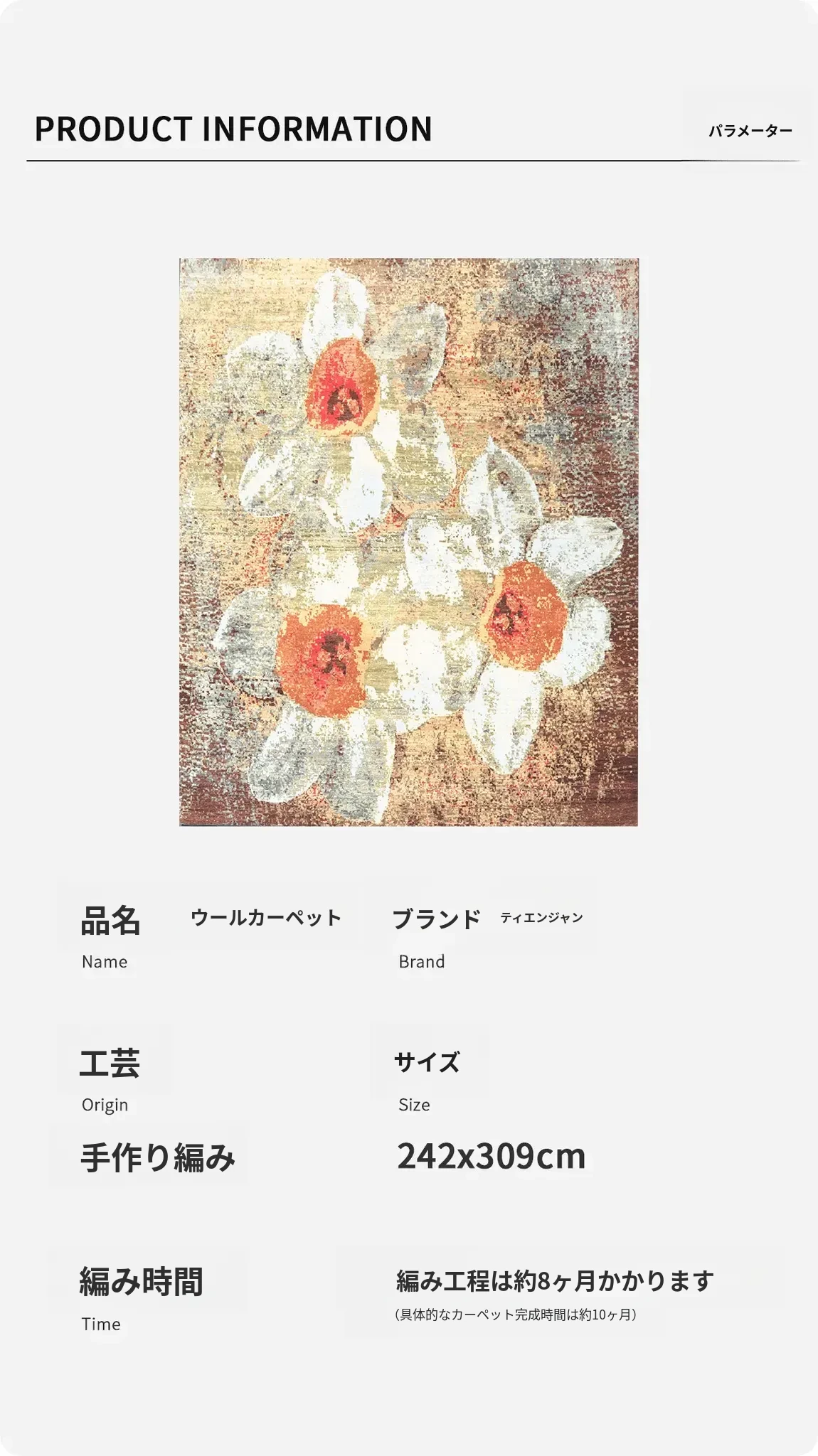 天匠輸入手作ウールカーペット 商用会議室用 高級感漂う多用途デザイン 242x309cm