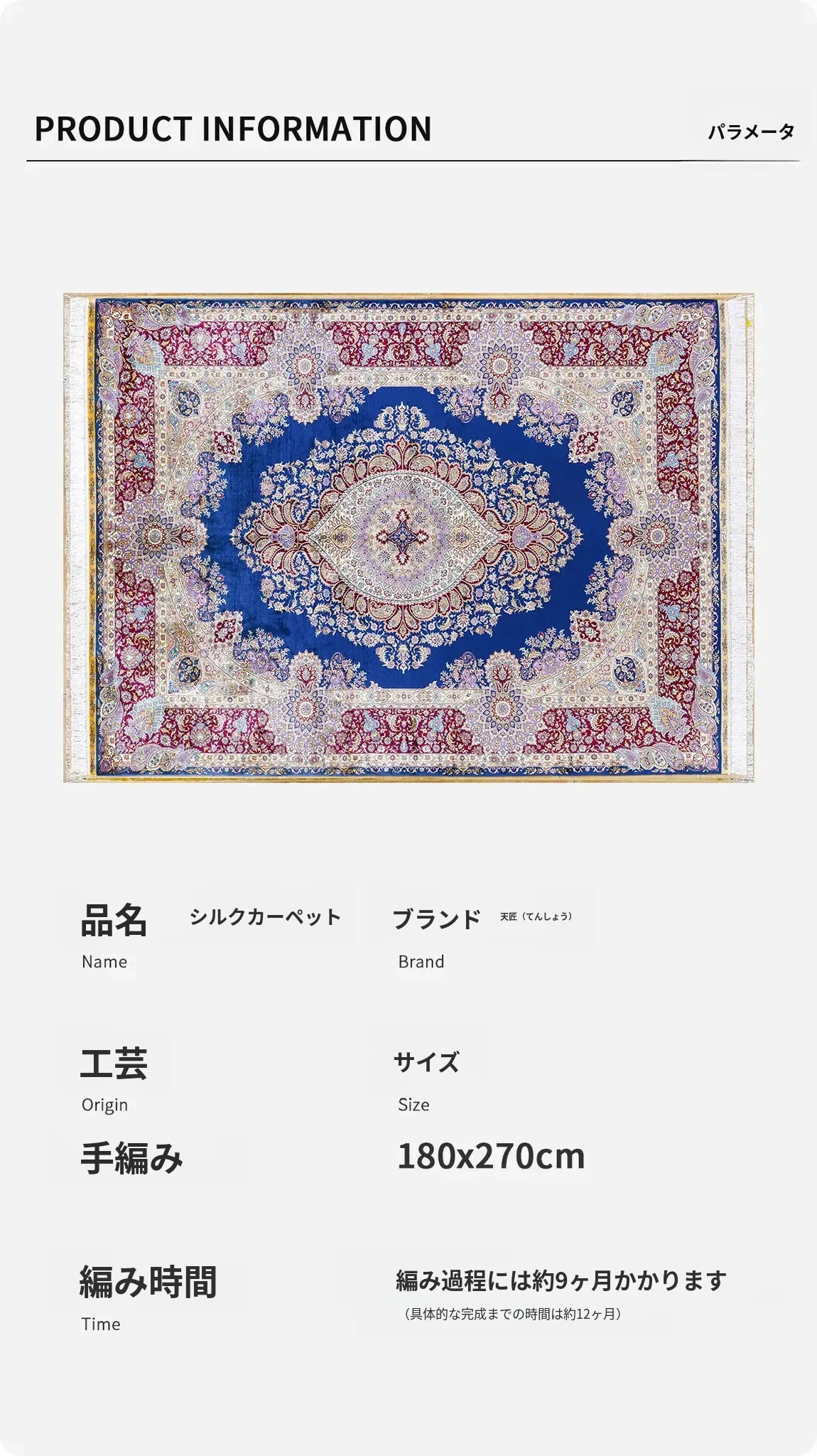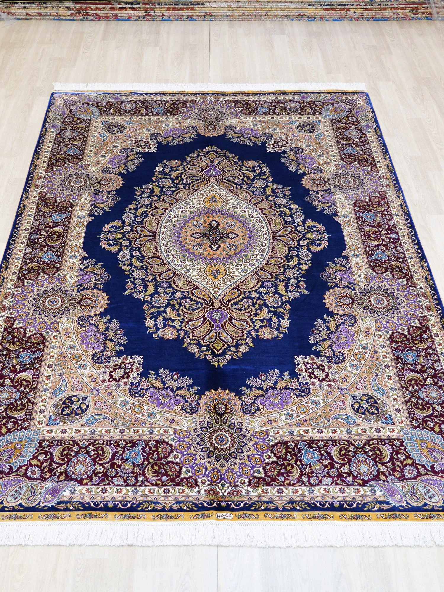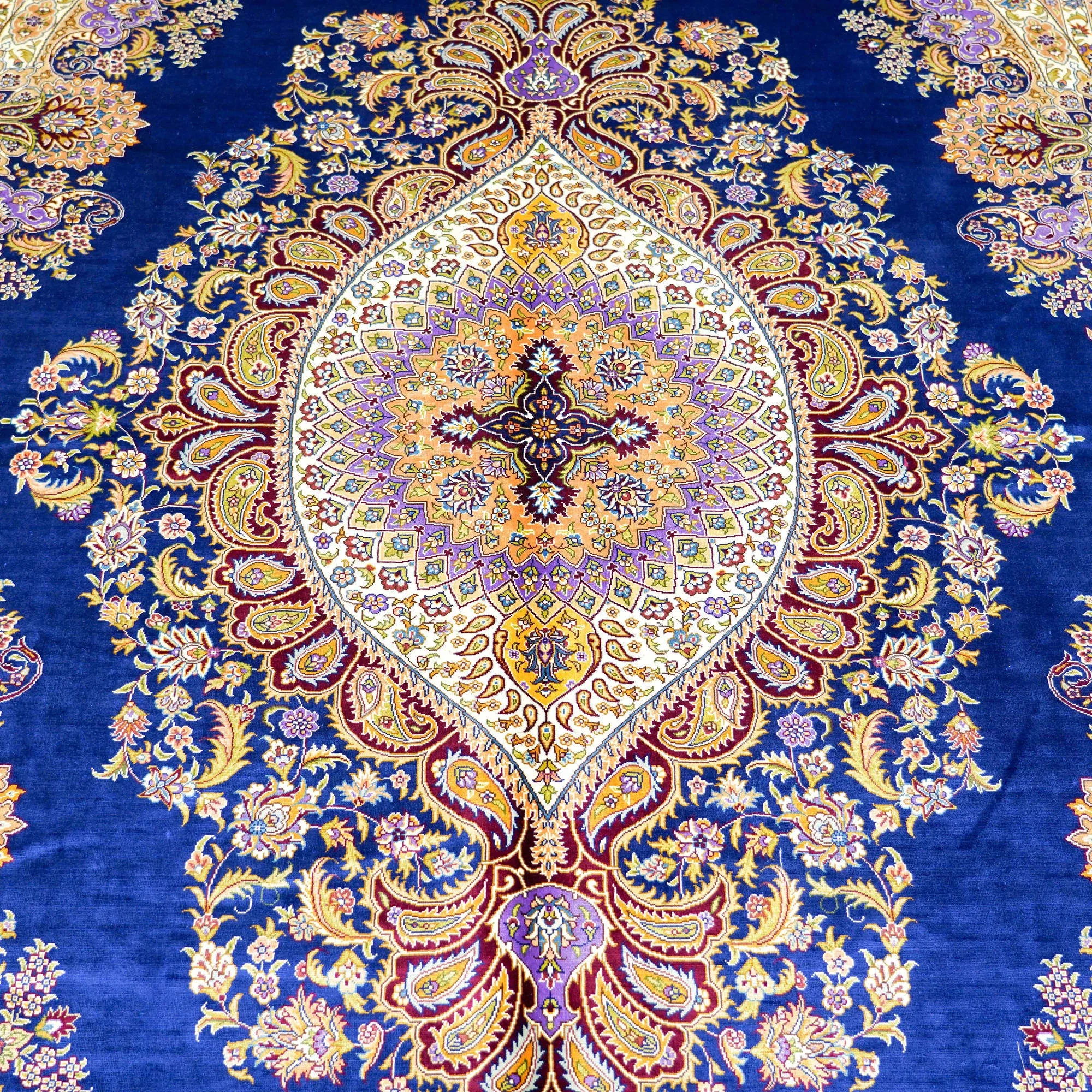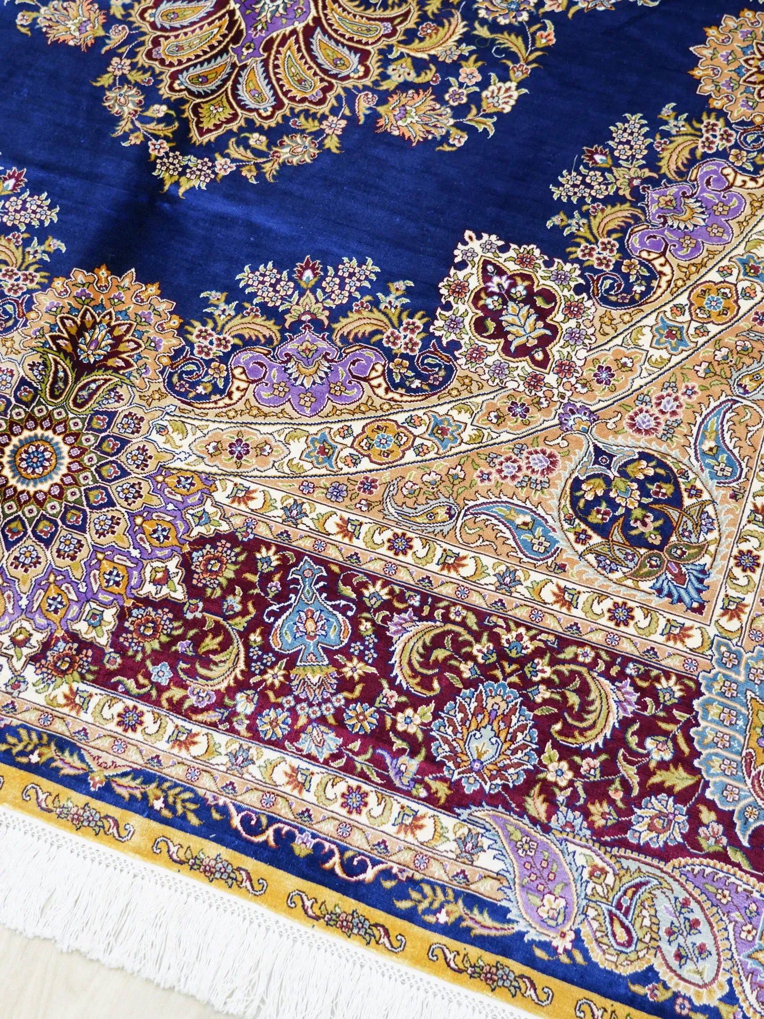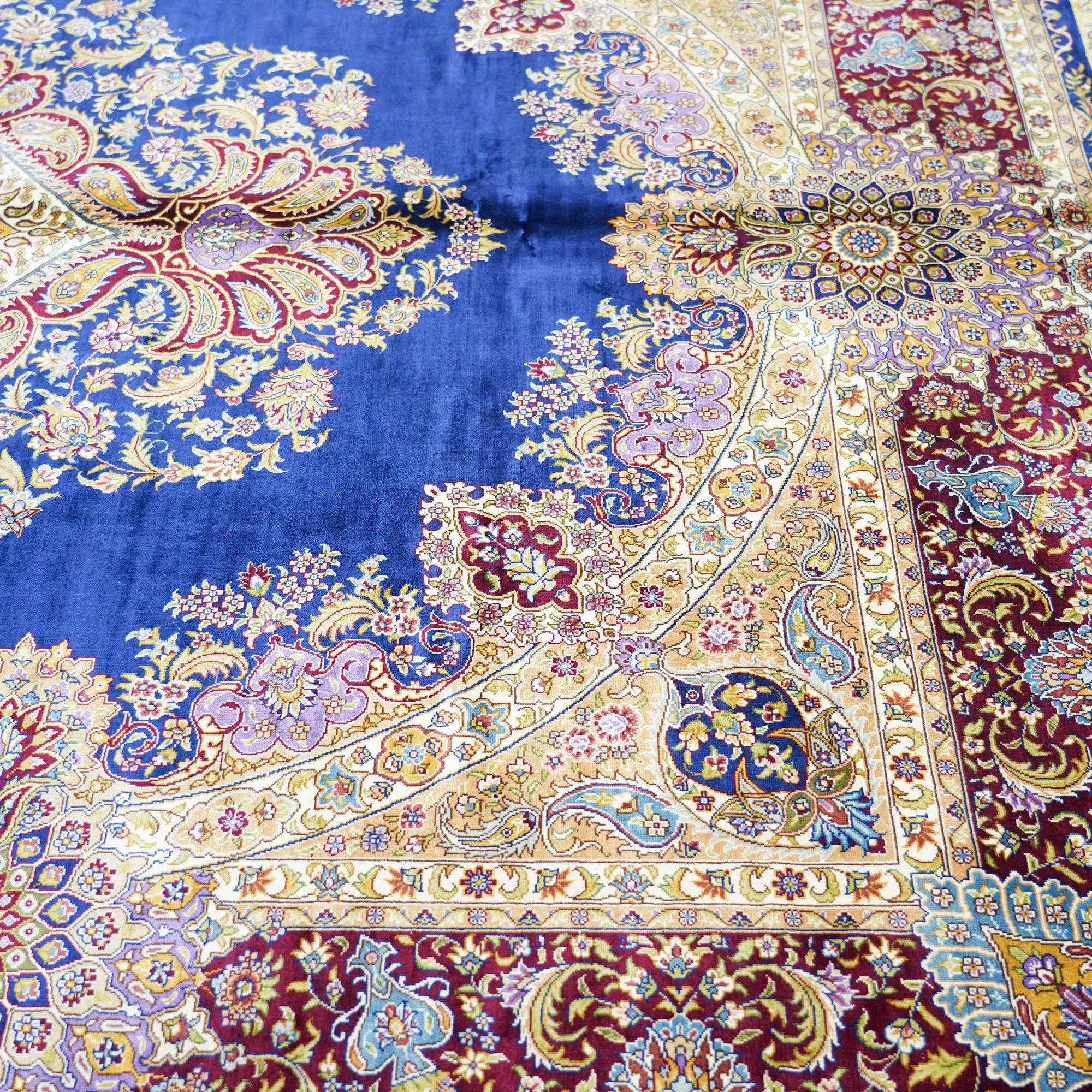 天匠の手作りシルクカーペット - クラシックなブルーのペルシャ絨毯、欧米向け高級仕様!180x270cmの贅沢なサイズで、あなたの空間に優雅さをプラス!