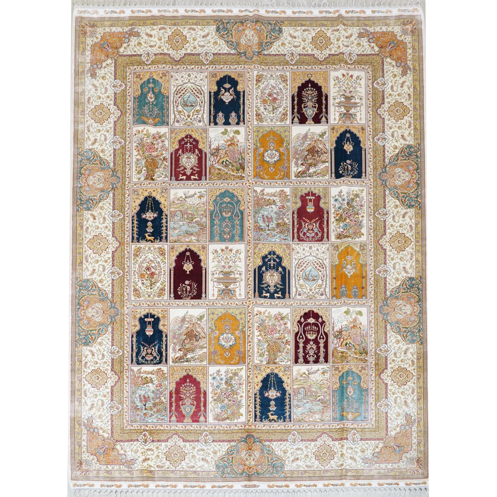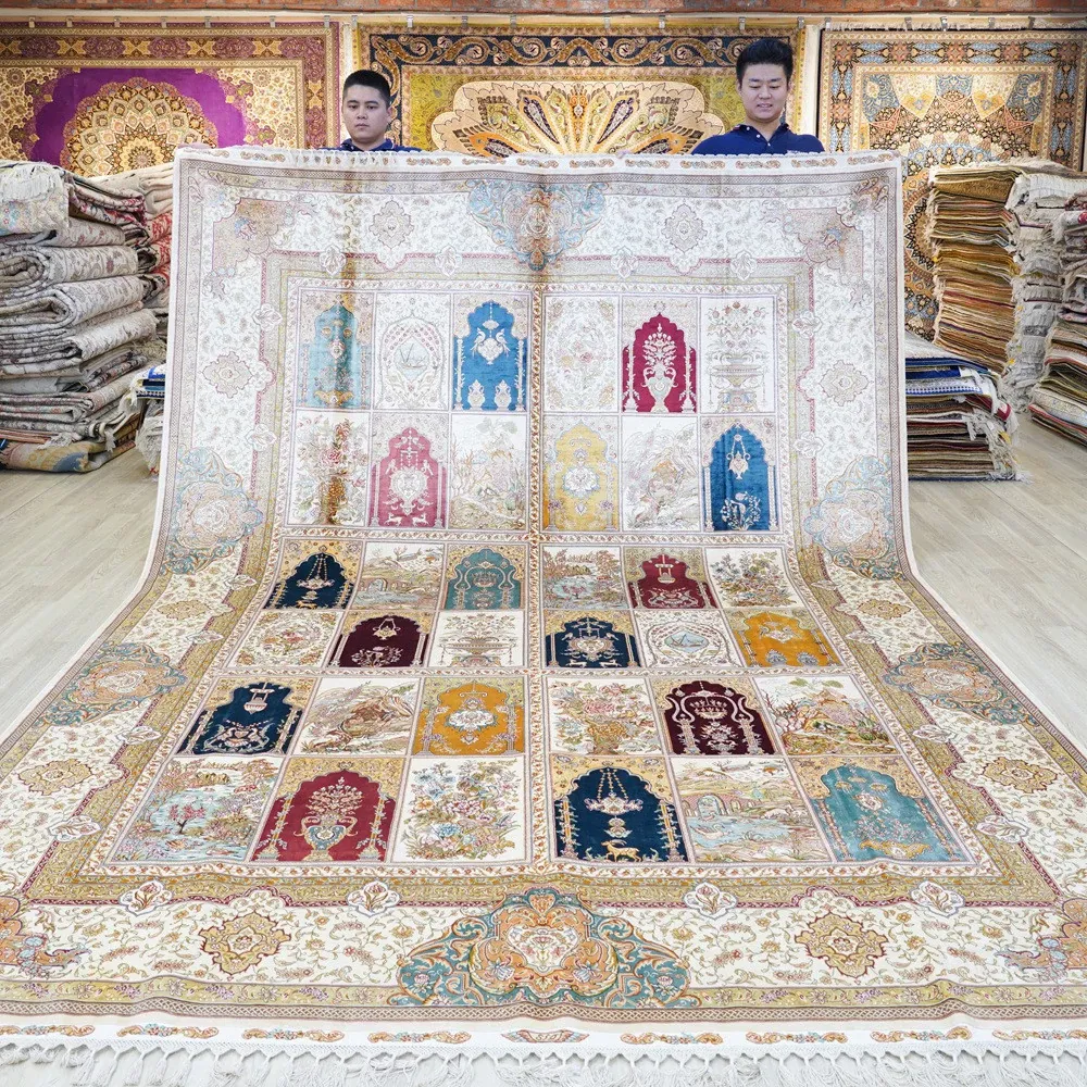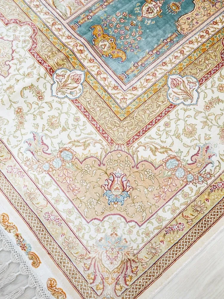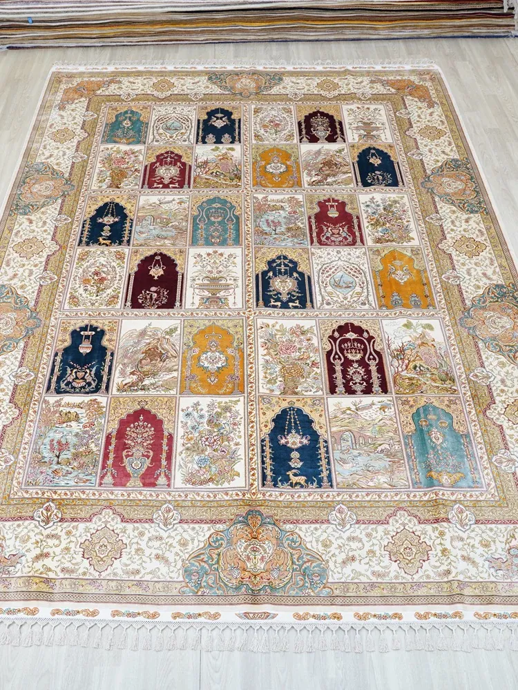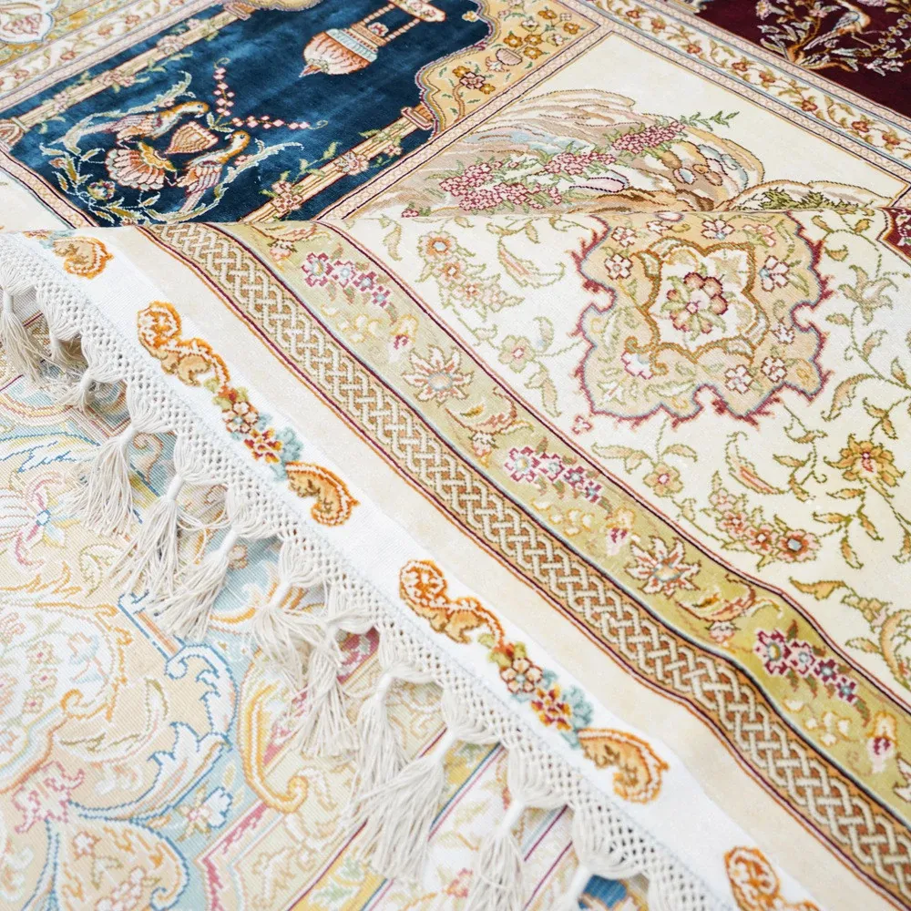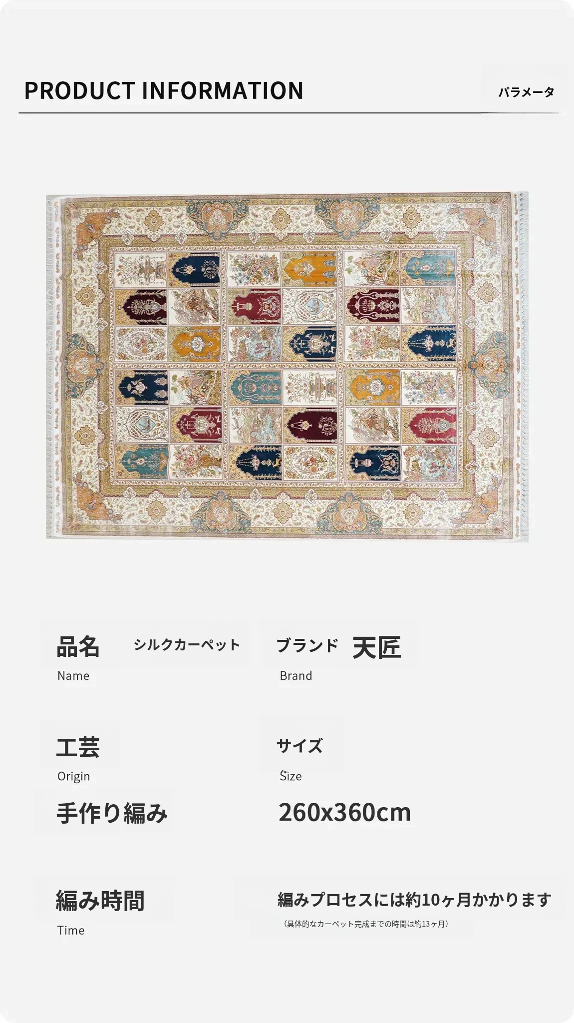 天匠の手作り本絹ラグ - ヴィラや豪邸にぴったりのクラシックなブルーとブラウンのデザイン、260x360cmの贅沢サイズ!あなたの空間を華やかに彩ります。