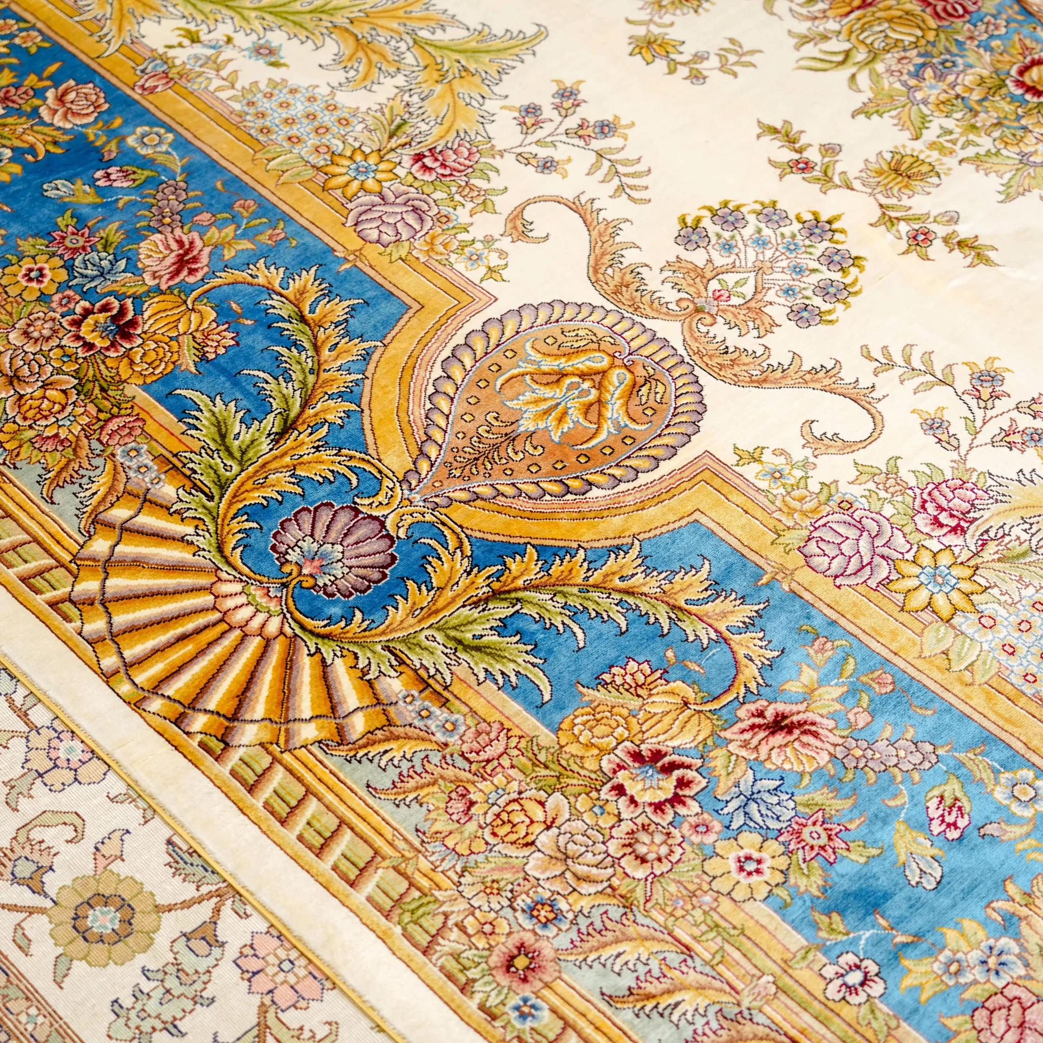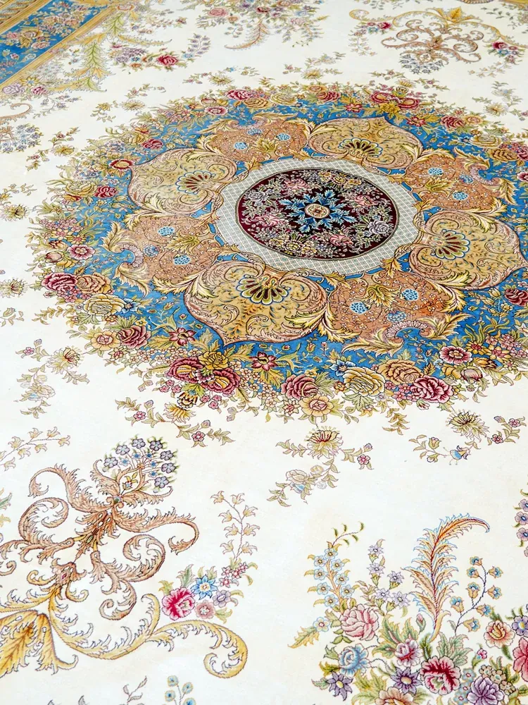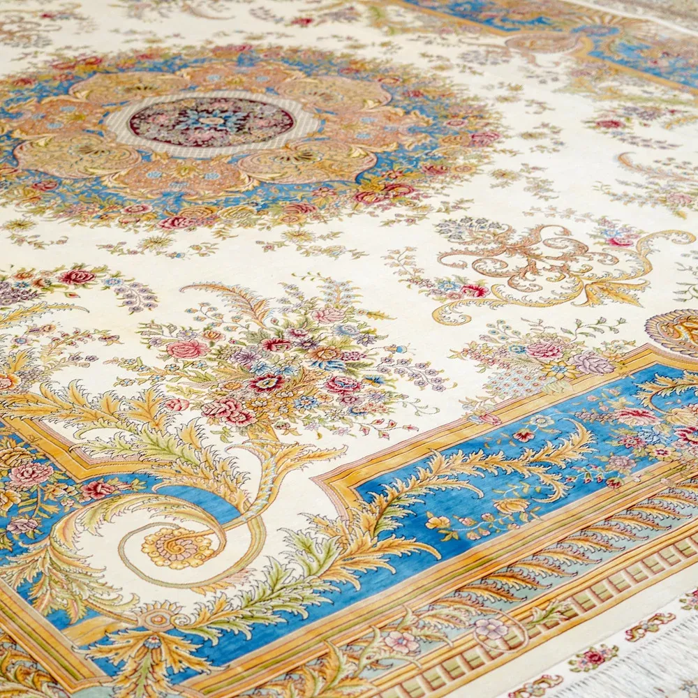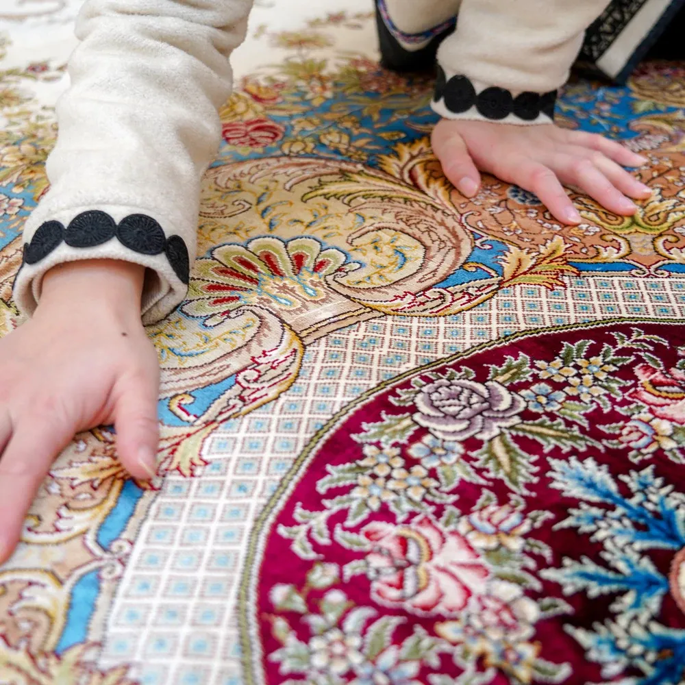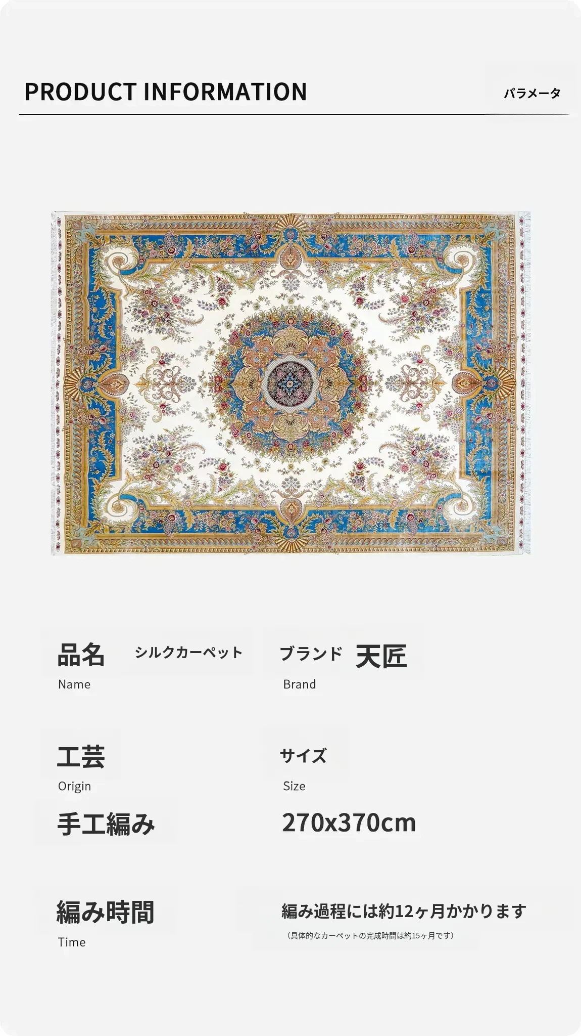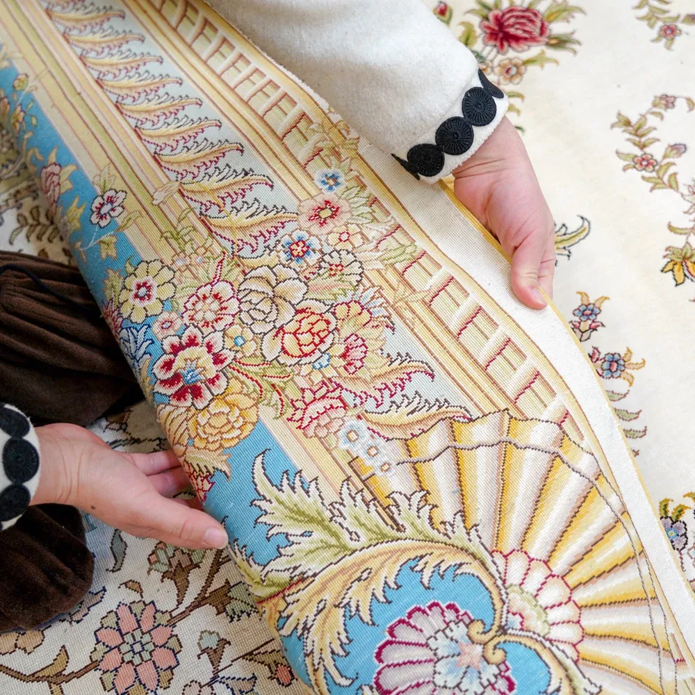 天匠手作の本真絲ラグ - 高級感溢れるフレンチスタイル、リビングや寝室にぴったり!270x370cmの広々サイズで、豪華な別荘空間を演出します。手作りの温もりを感じて、特別なひとときをお楽しみください。