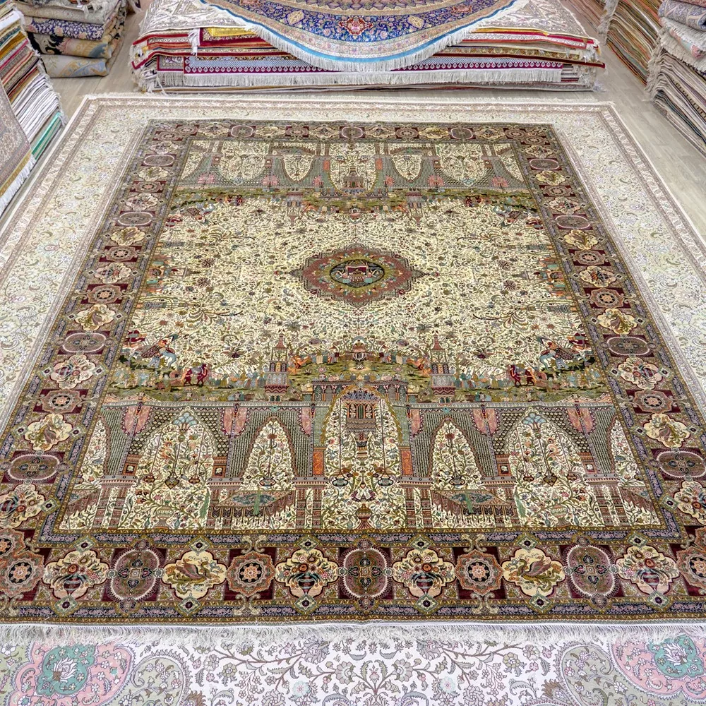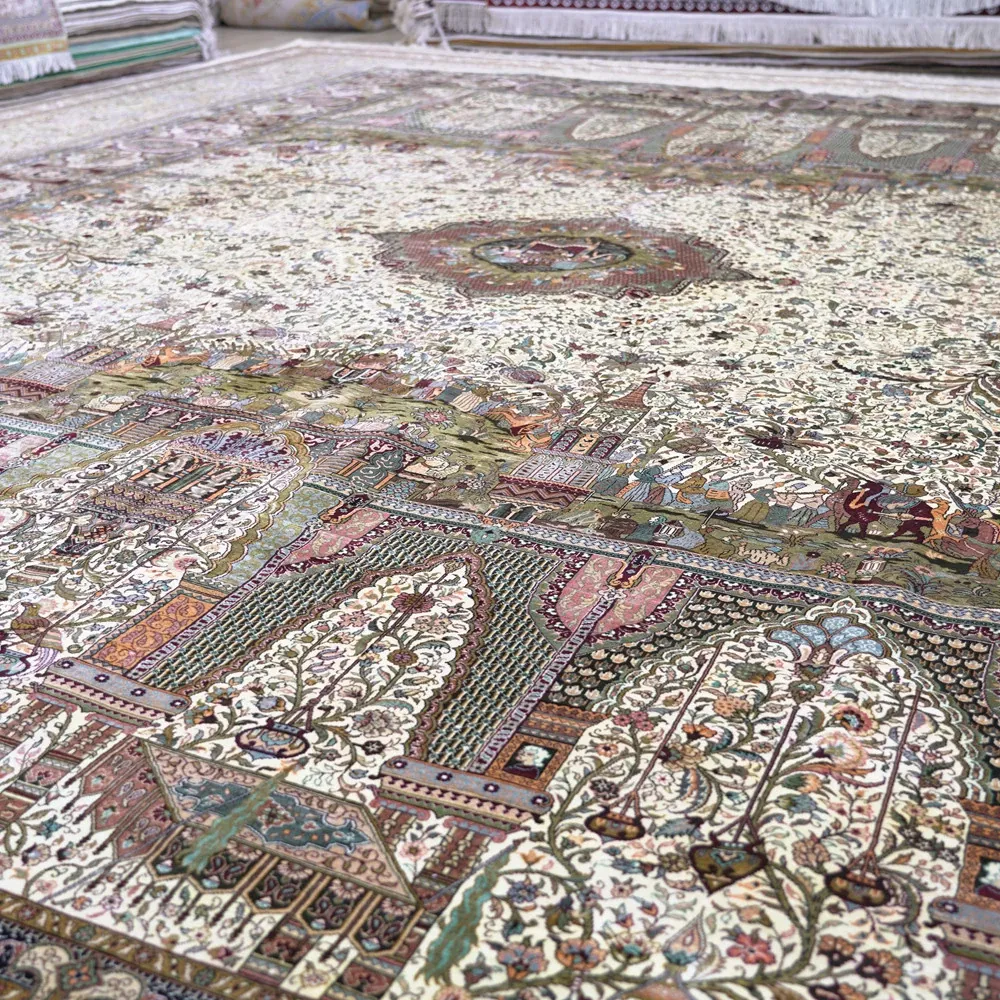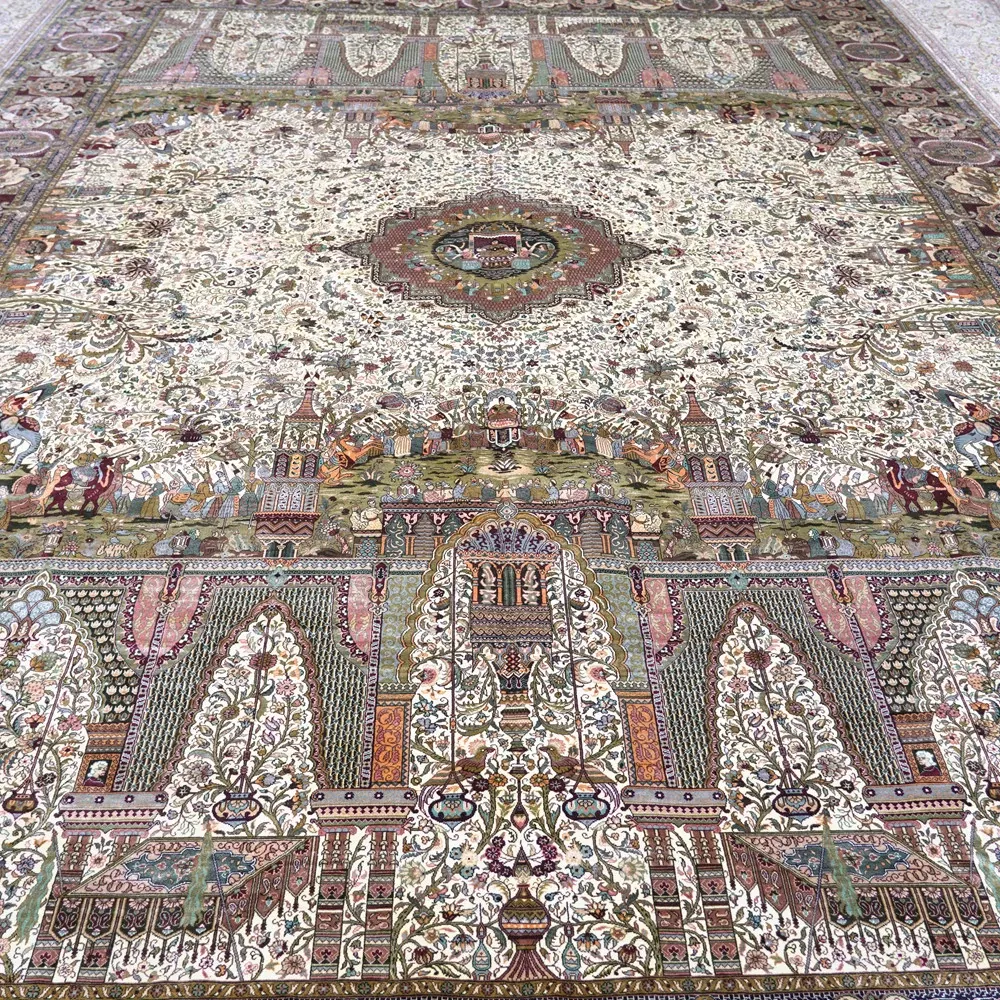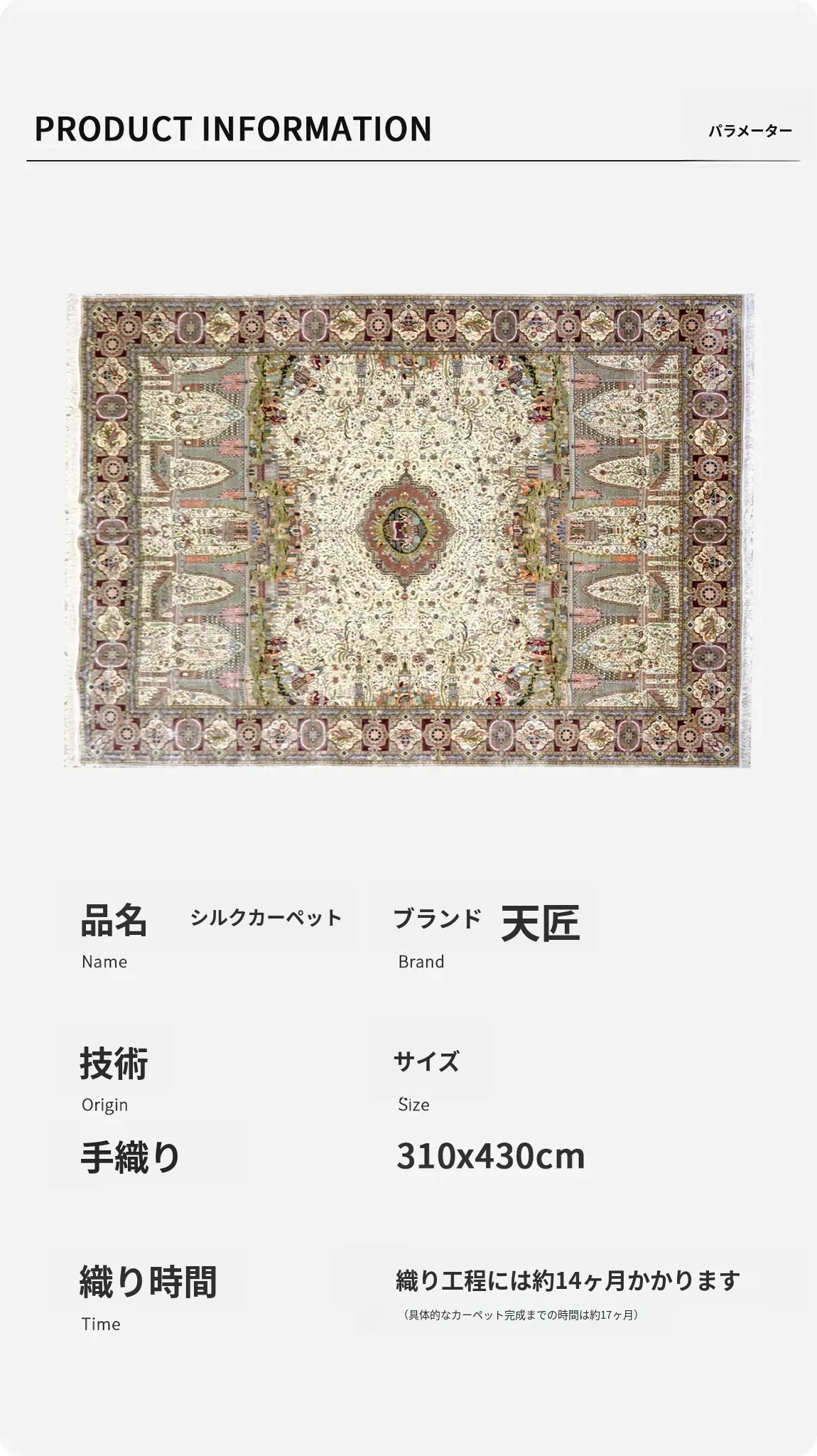 天匠の手作りシルクカーペット - ラグジュアリーなデザインのイタリア製、リビング・書斎・寝室に最適!310x430cmの贅沢な広さで、上質な空間を演出します。