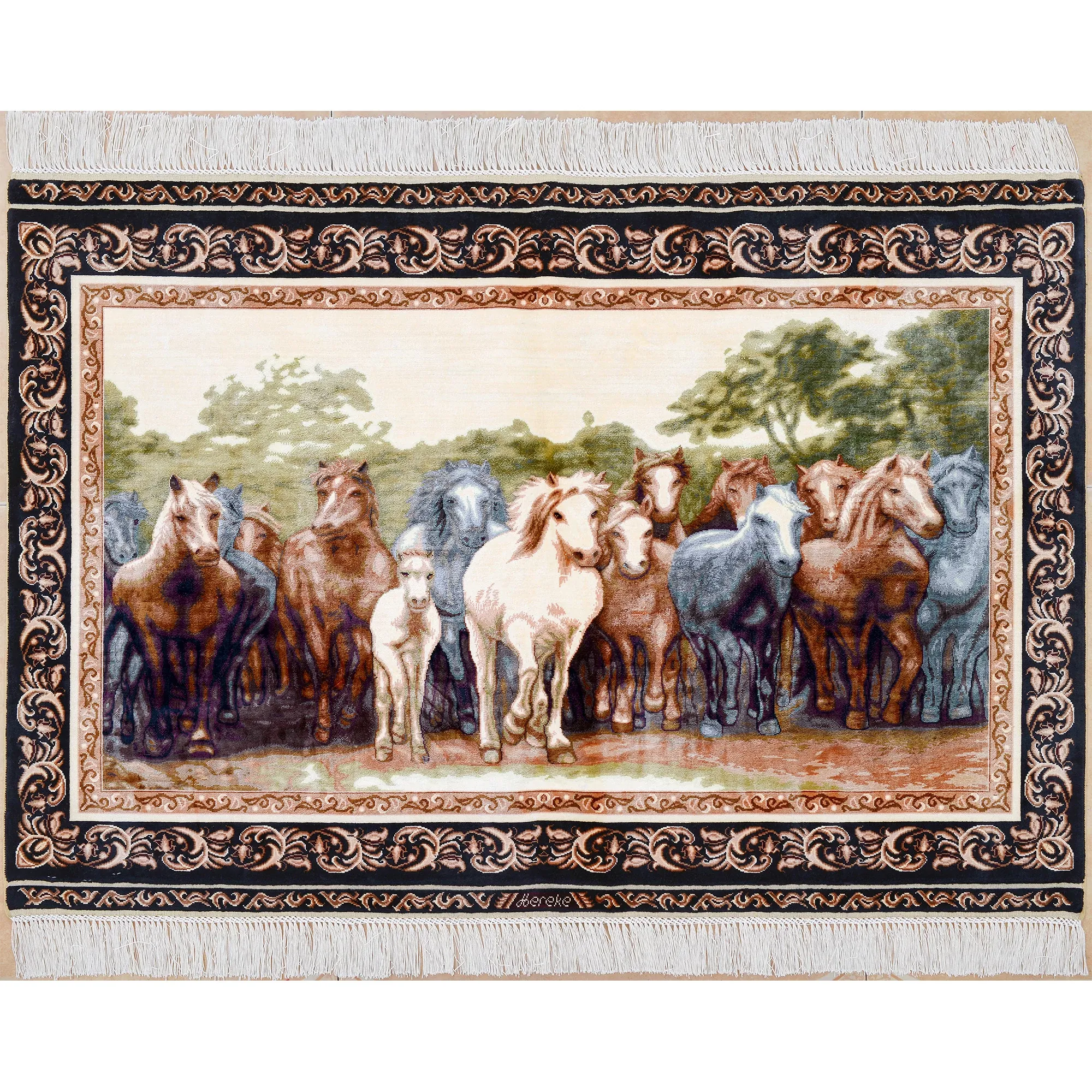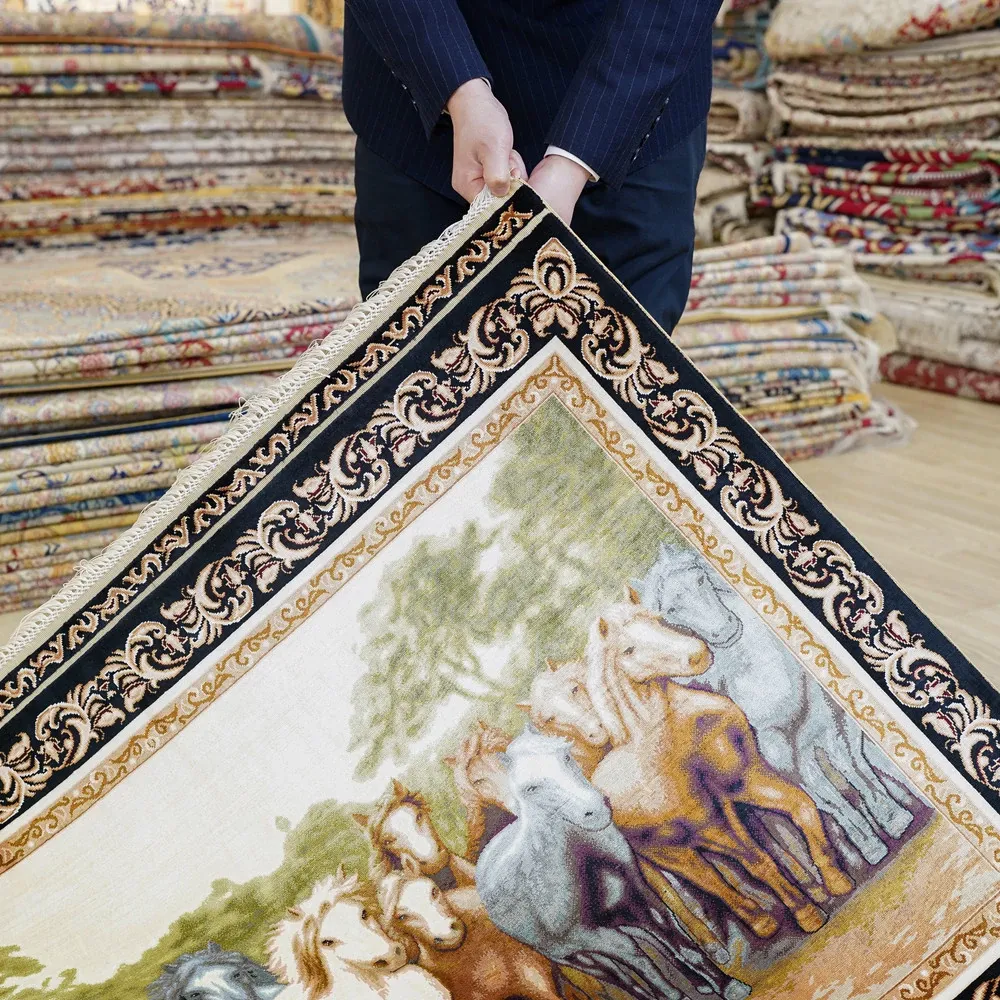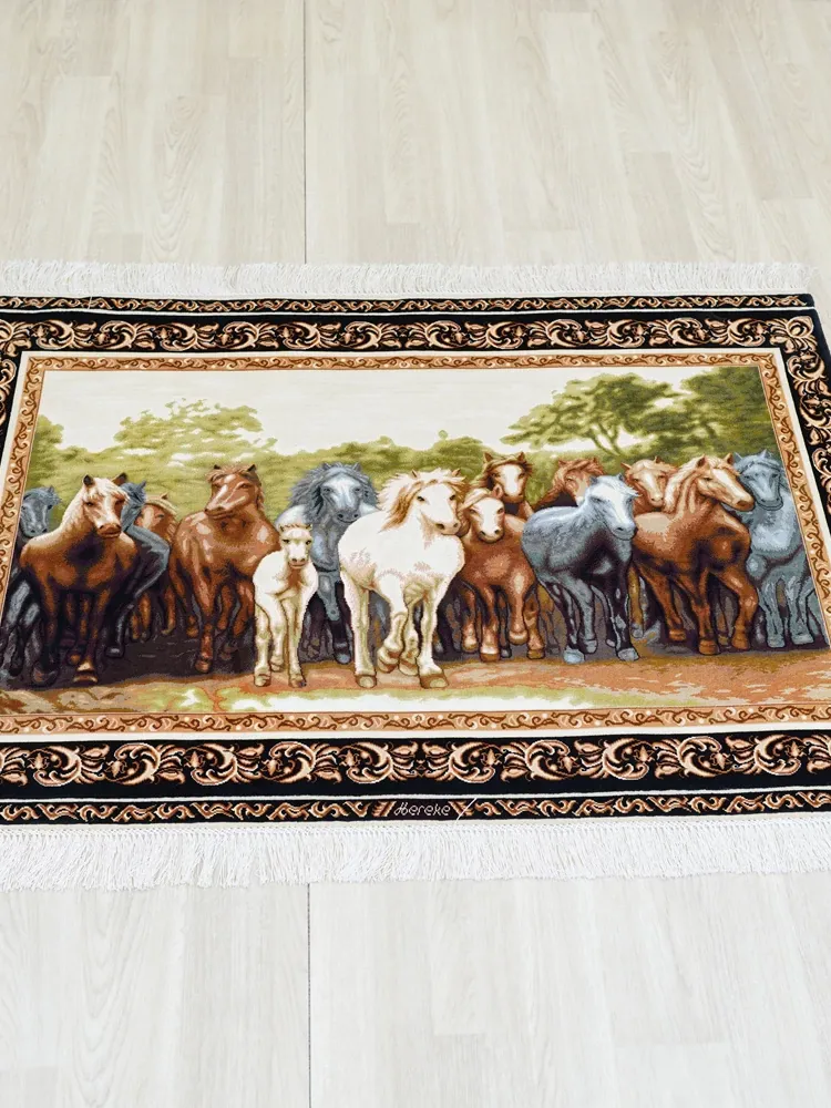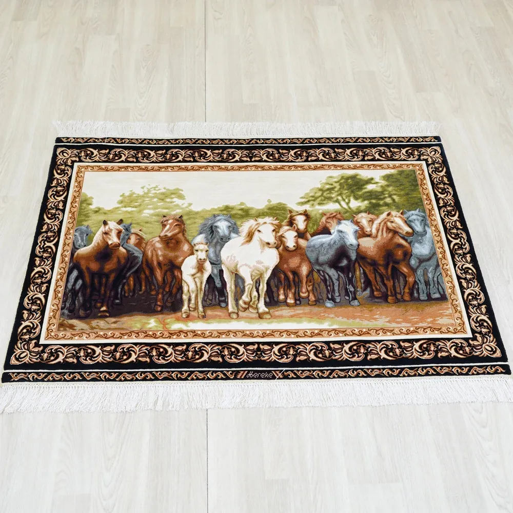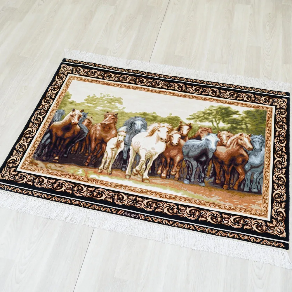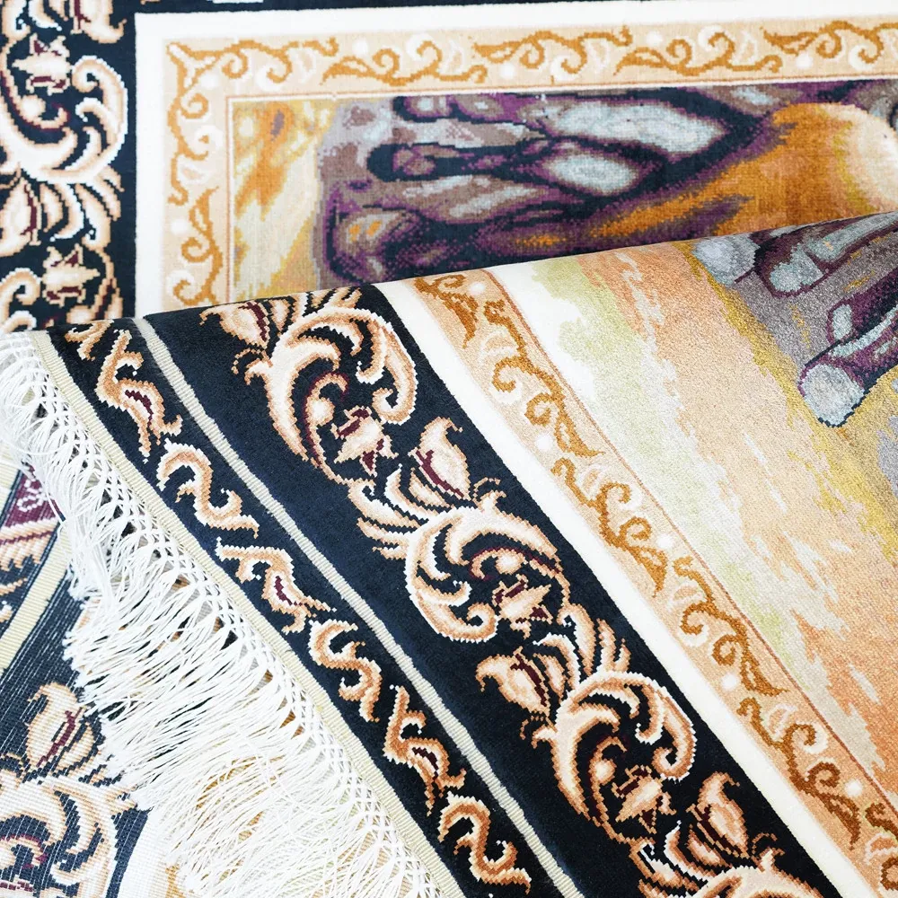 職人の手作りシルクカーペット - 高級ヴィラにぴったりなペルシャ風デザイン!居心地の良いリビングや寝室に最適、90x122cmのサイズで贅沢な空間を演出します。