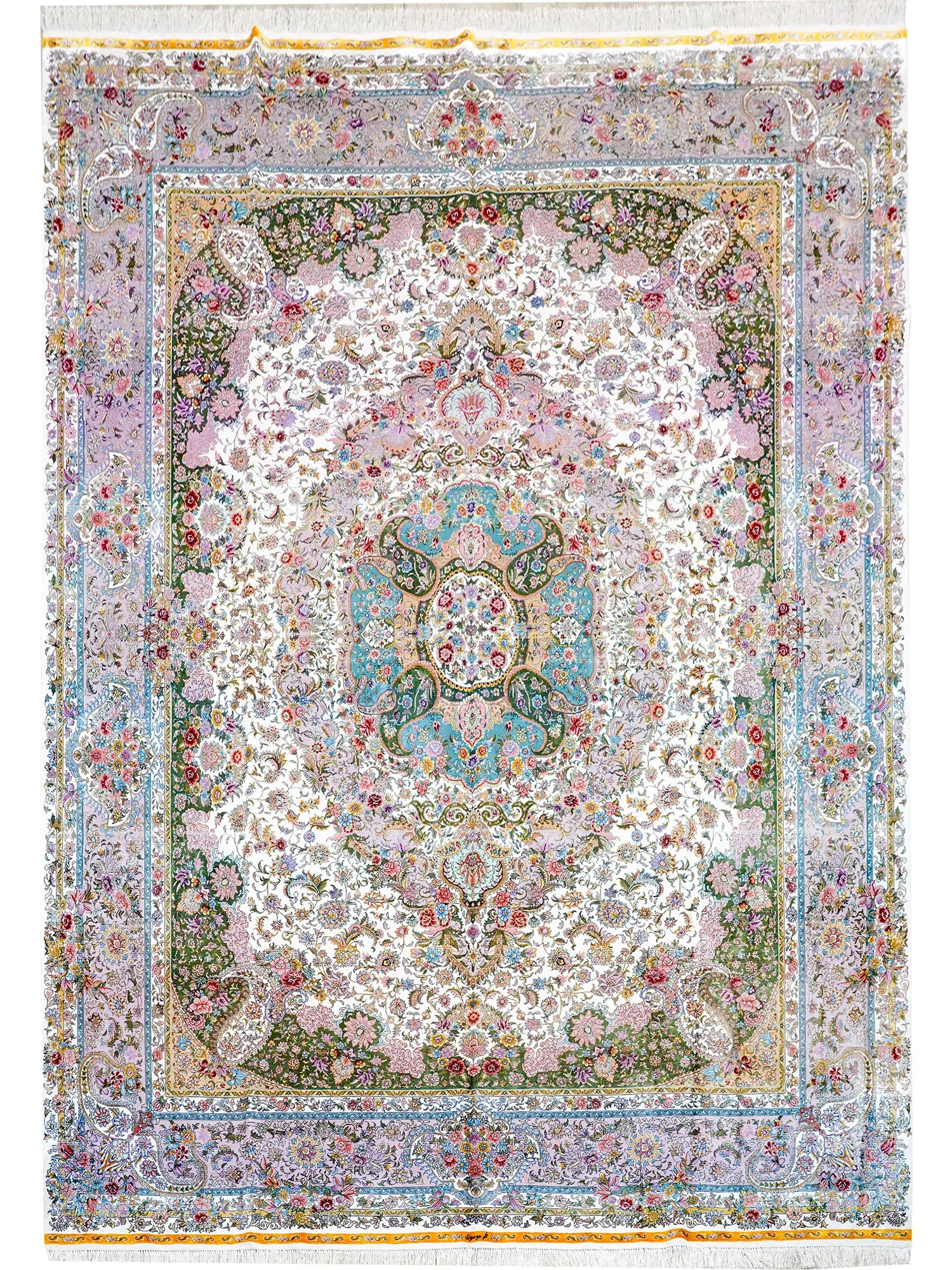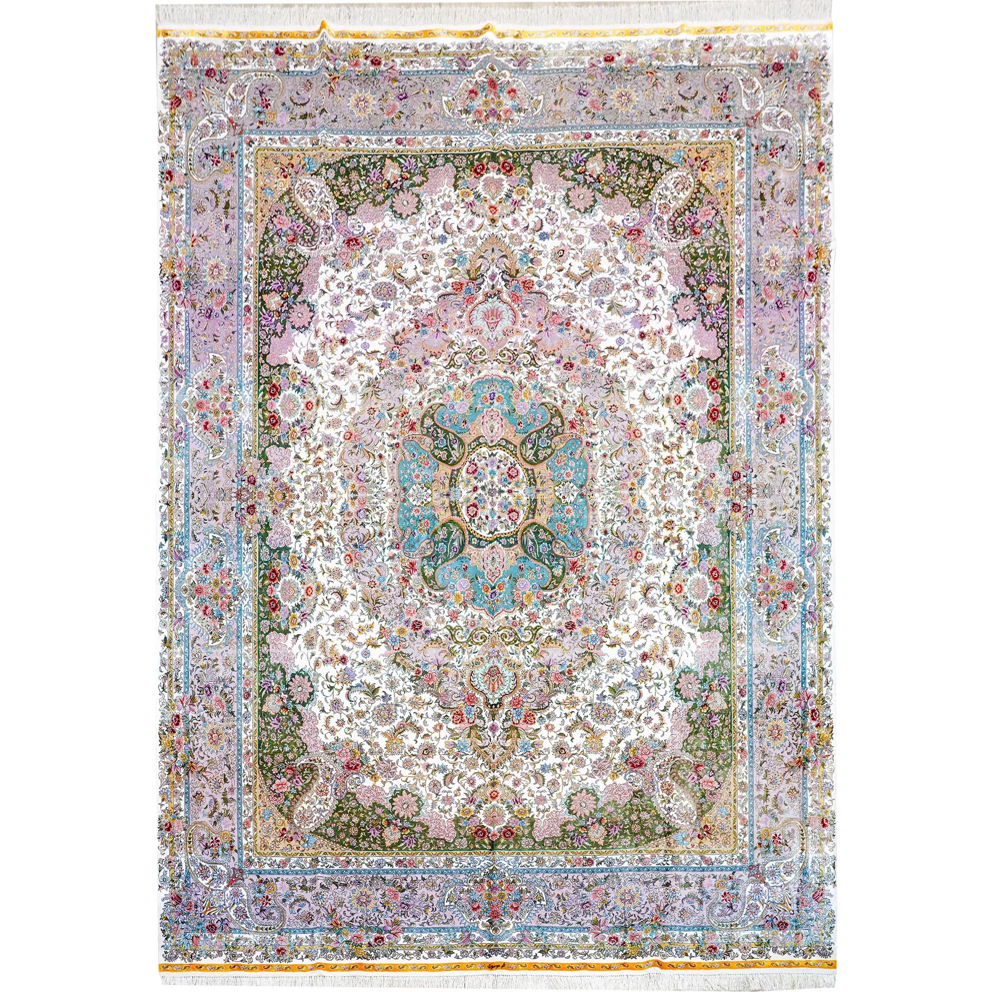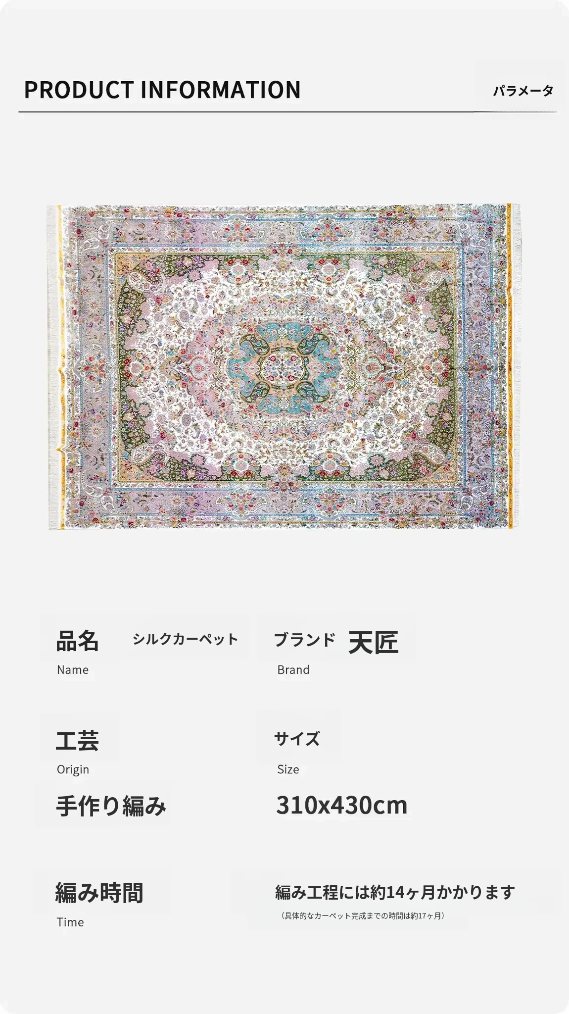 天匠の手作りシルクカーペット - イラン製の高級ヴィラ向けアートカーペット、310x430cmの贅沢なサイズで、あなたの空間を華やかに彩ります!