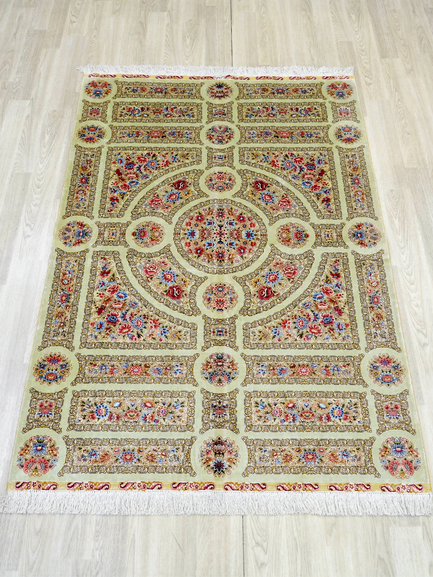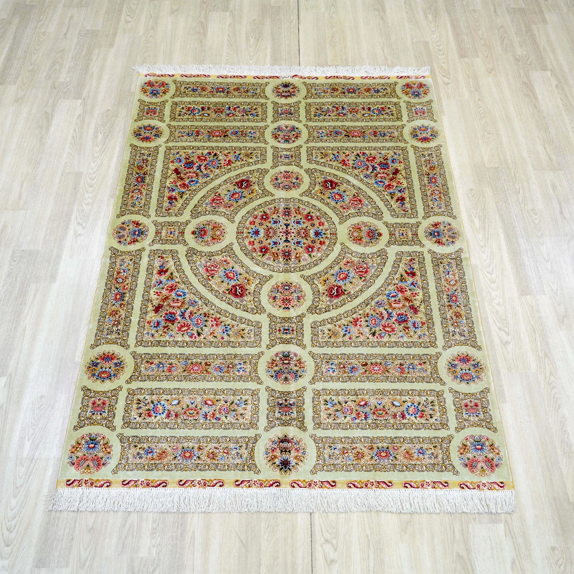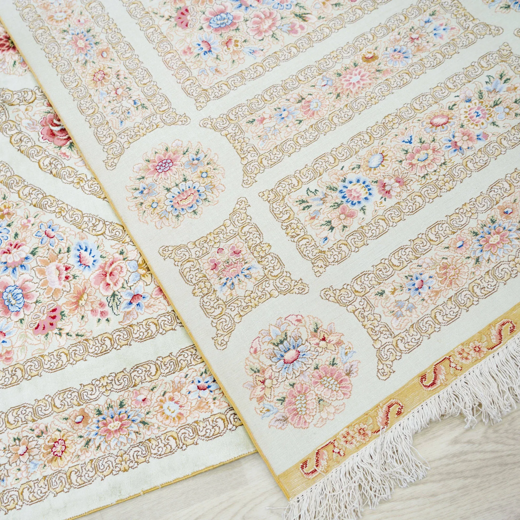 職人手作の本絹ペルシャ絨毯 - ヴィラにぴったりのクラシックなヨーロッパ風フレンチデザイン、120x180cmの豪華さをお楽しみください!