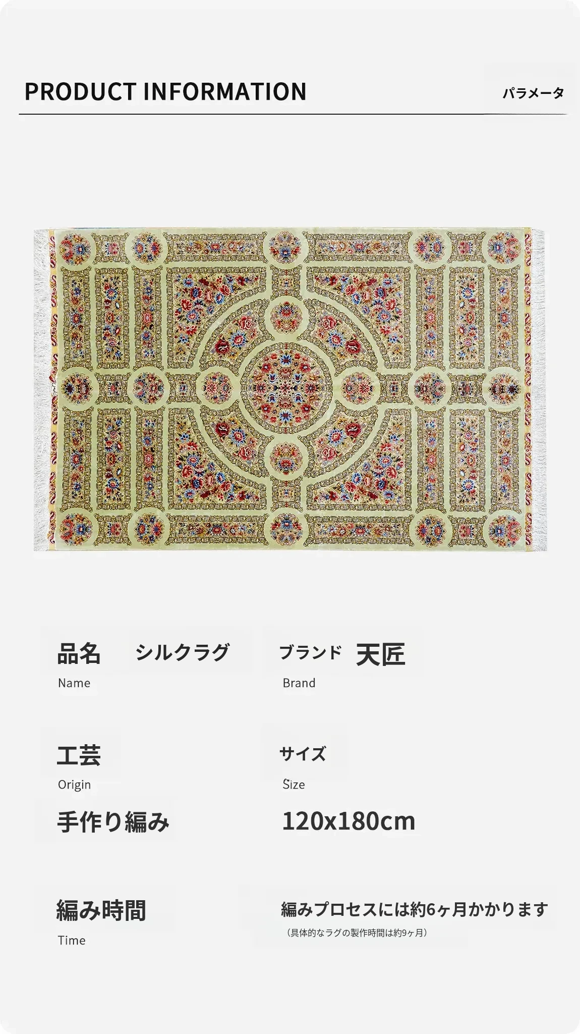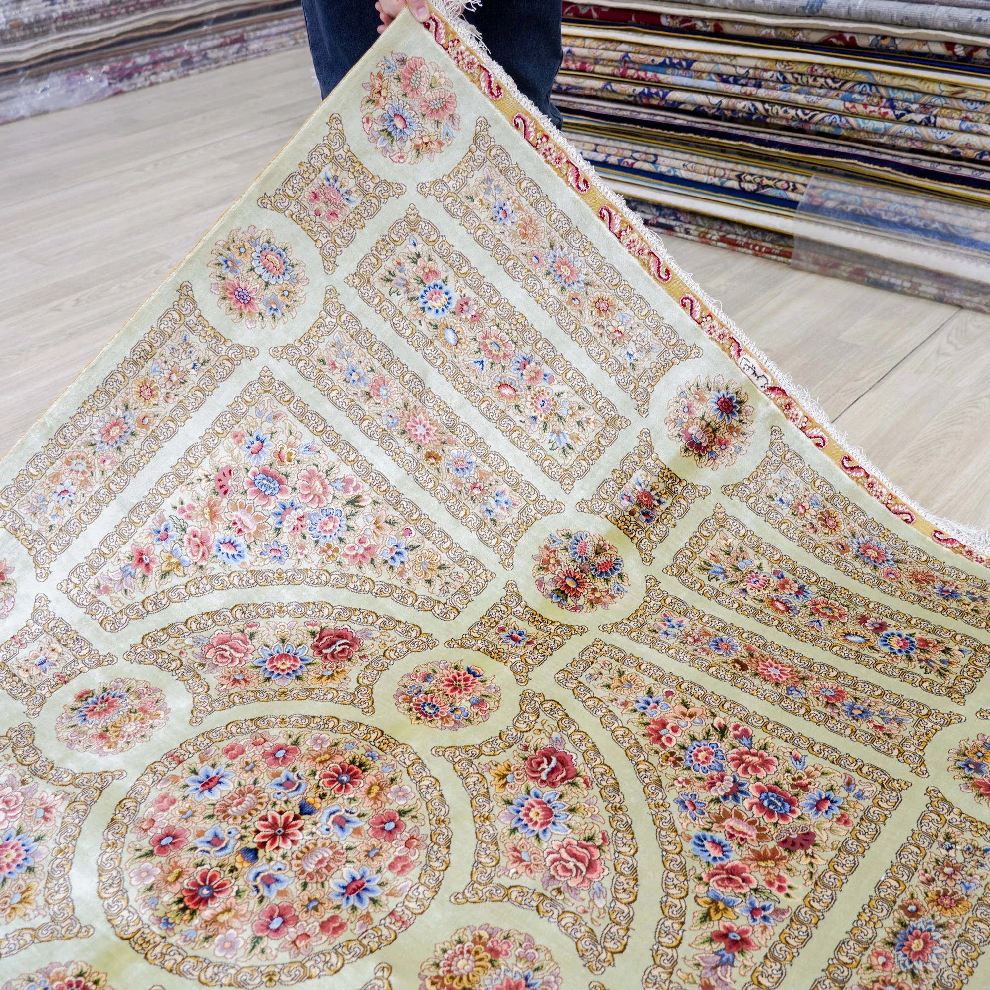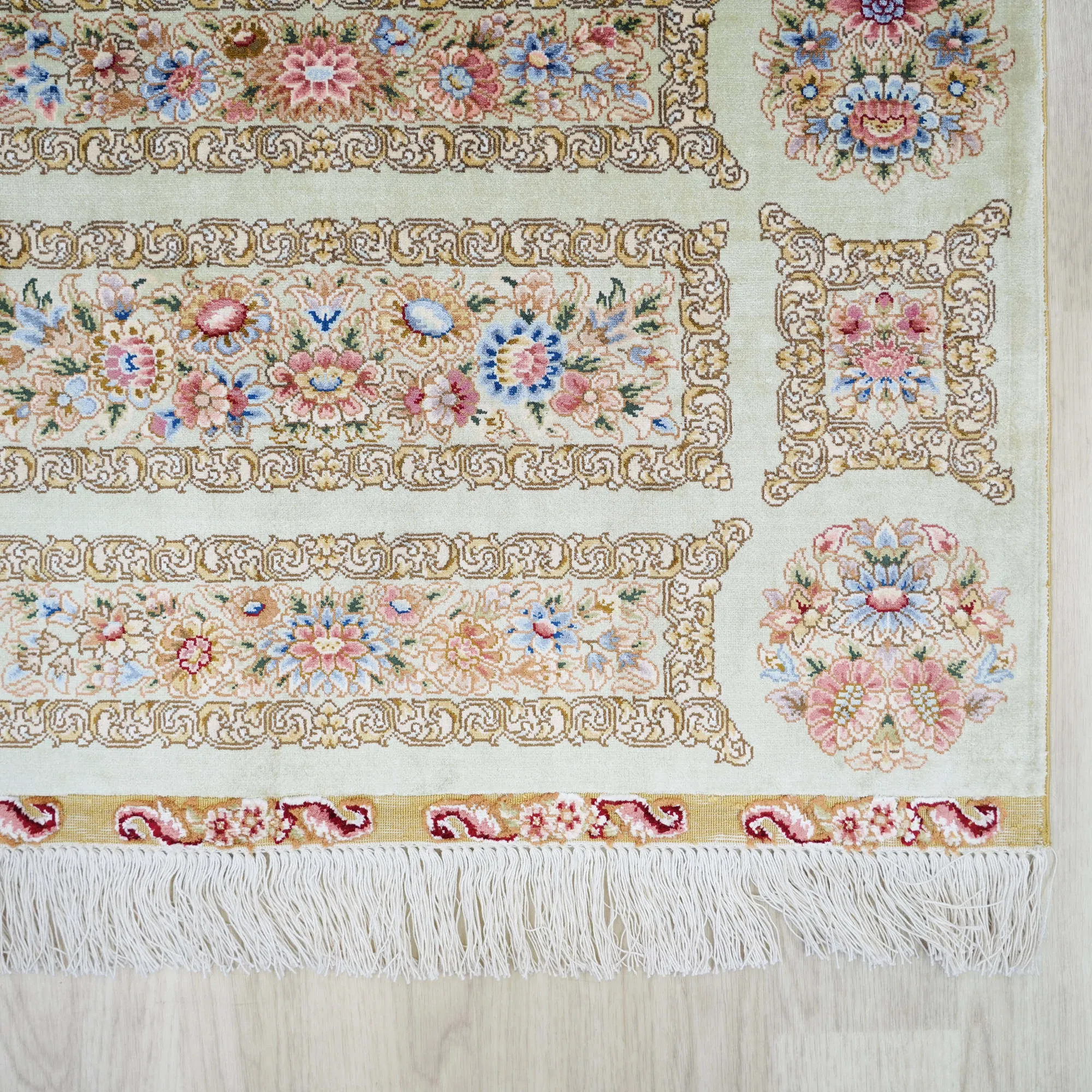 職人手作の本絹ペルシャ絨毯 - ヴィラにぴったりのクラシックなヨーロッパ風フレンチデザイン、120x180cmの豪華さをお楽しみください!