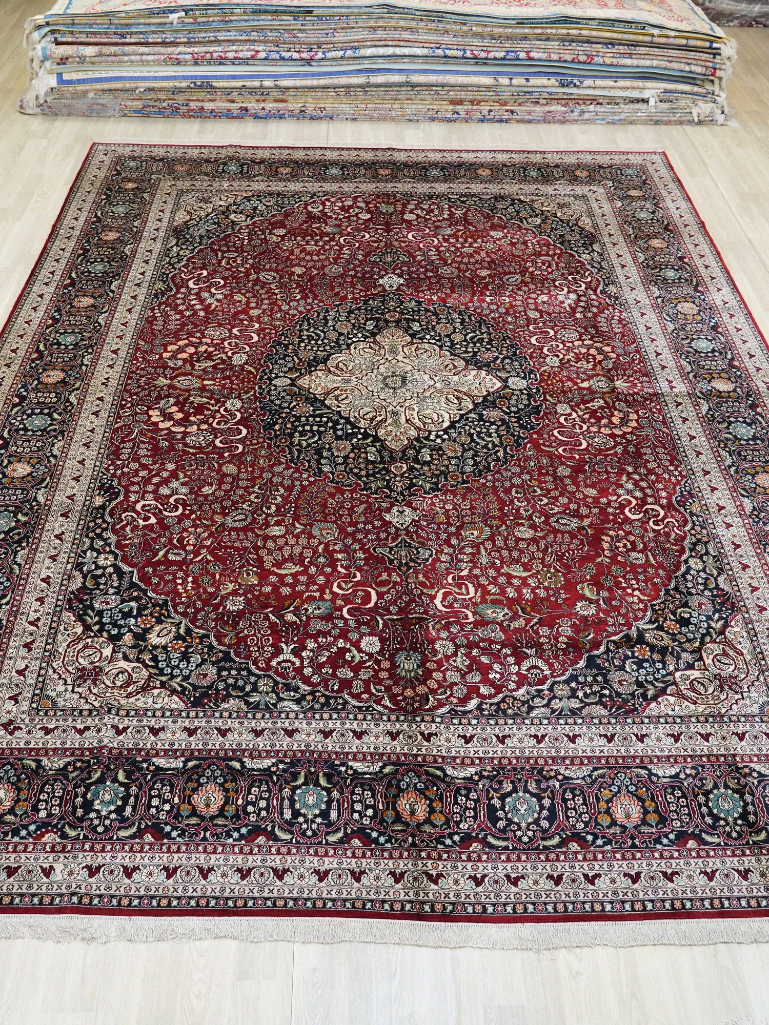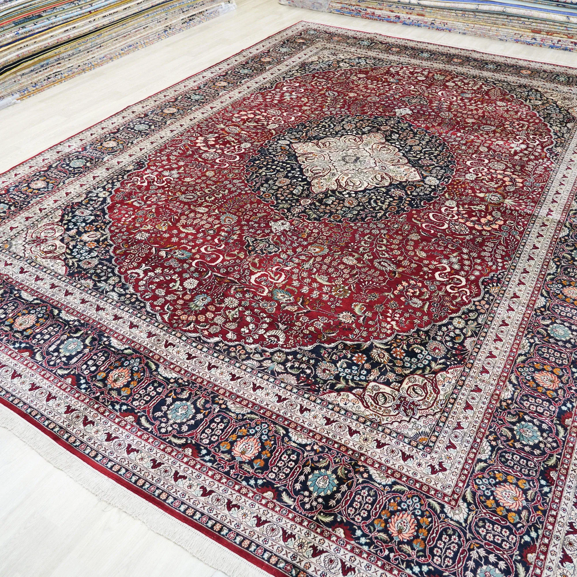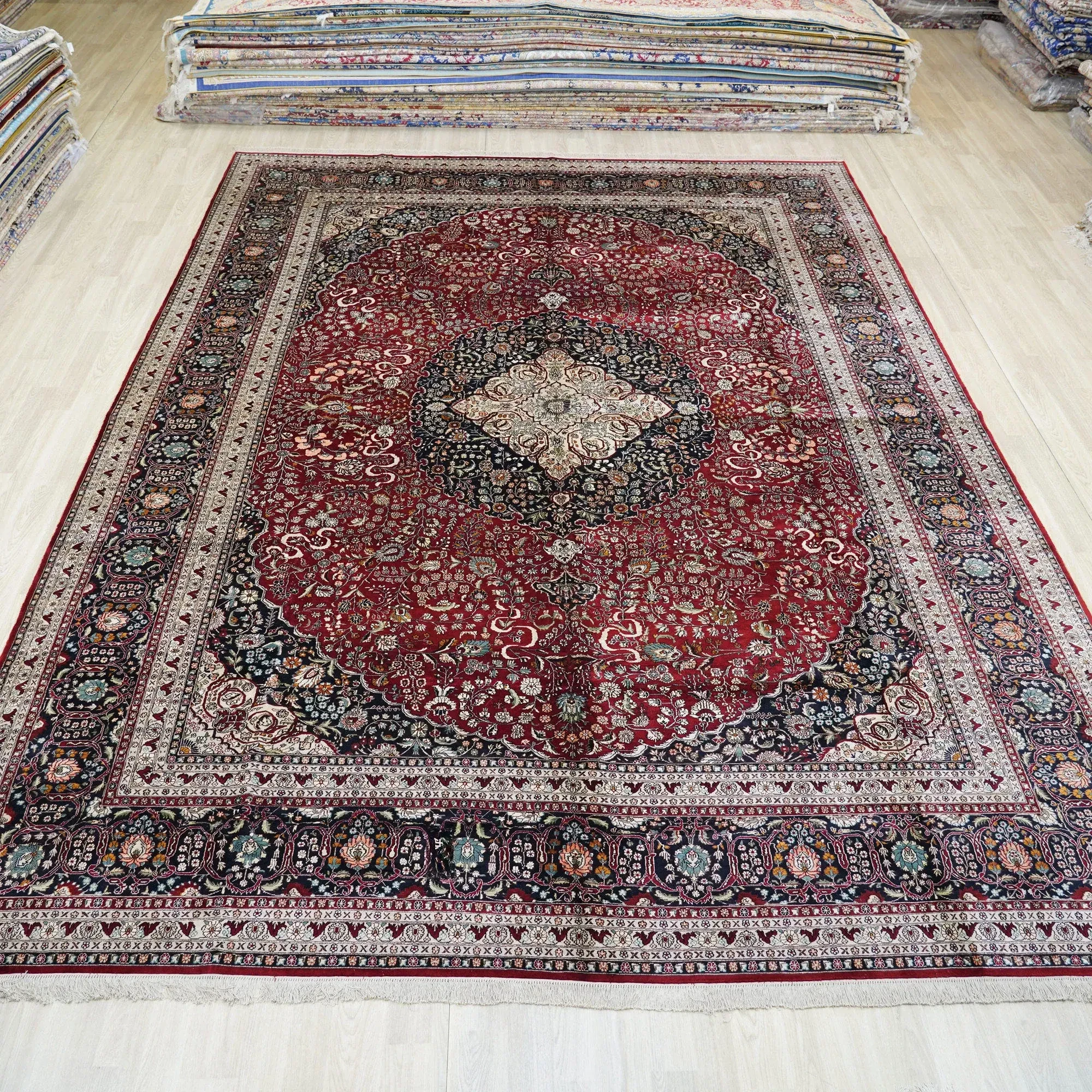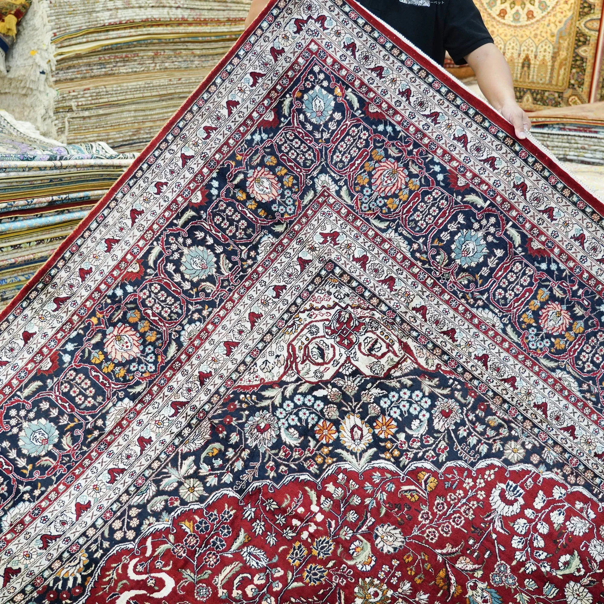 天匠手作の本絹カーペット - ペルシャスタイルの輸出用、イラン製の欧米風カーペット (310x430cm) - 高級感溢れる手織りで、あなたの空間を華やかに彩ります!