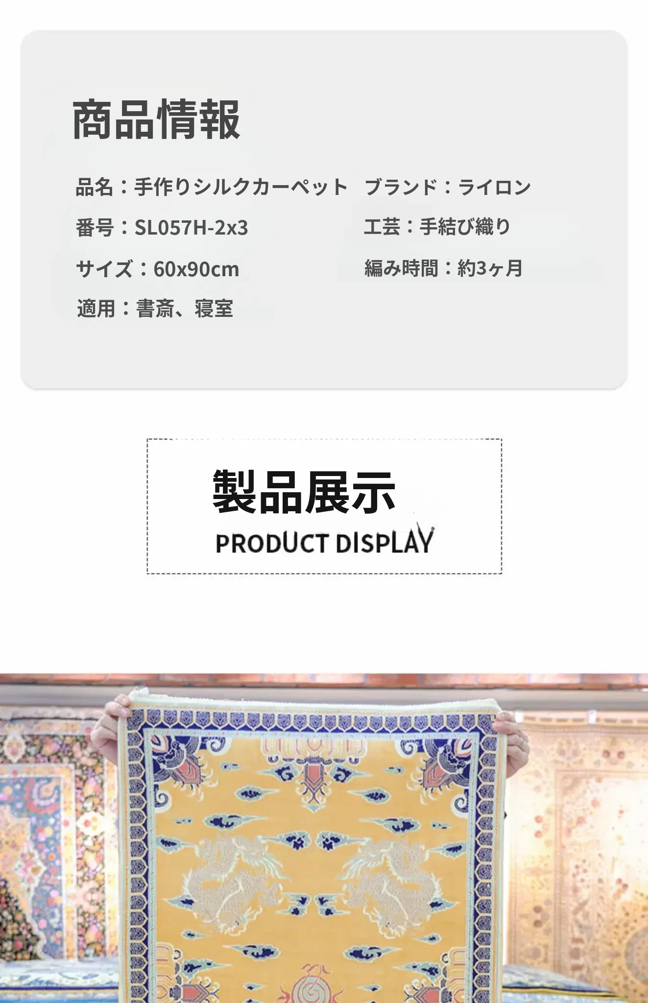 天匠の本物シルクラグ 60x90cm 手作り結び シルク製 中華風家具にぴったりの書斎ラグ - 高級感あふれる手触りで、あなたの空間を優雅に演出します!