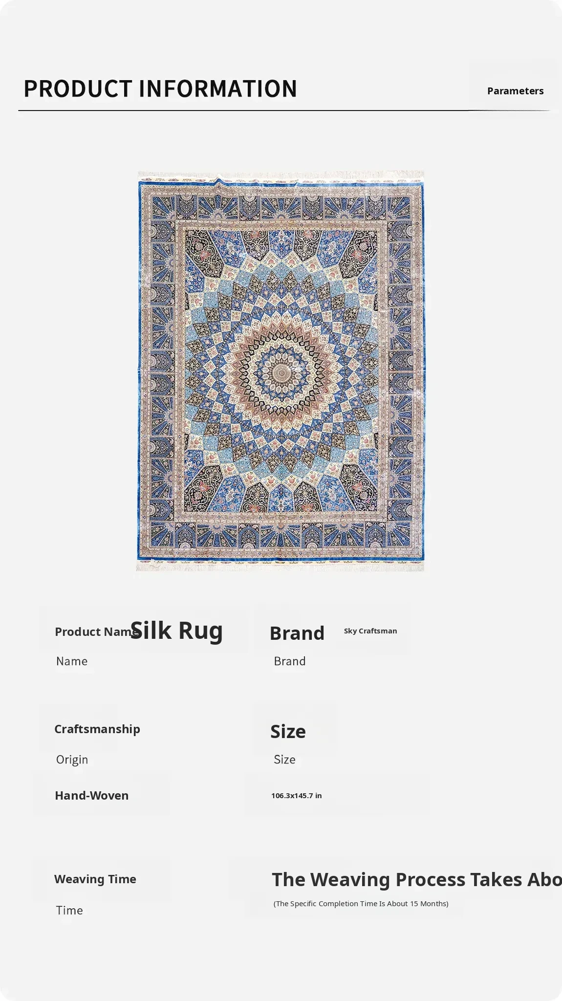 Heavenly Artisan Handmade Real Silk Carpet - Luxurious and Unique Area Rug for Bedroom, Home Office, and Living Spaces - Size: 270x370cm