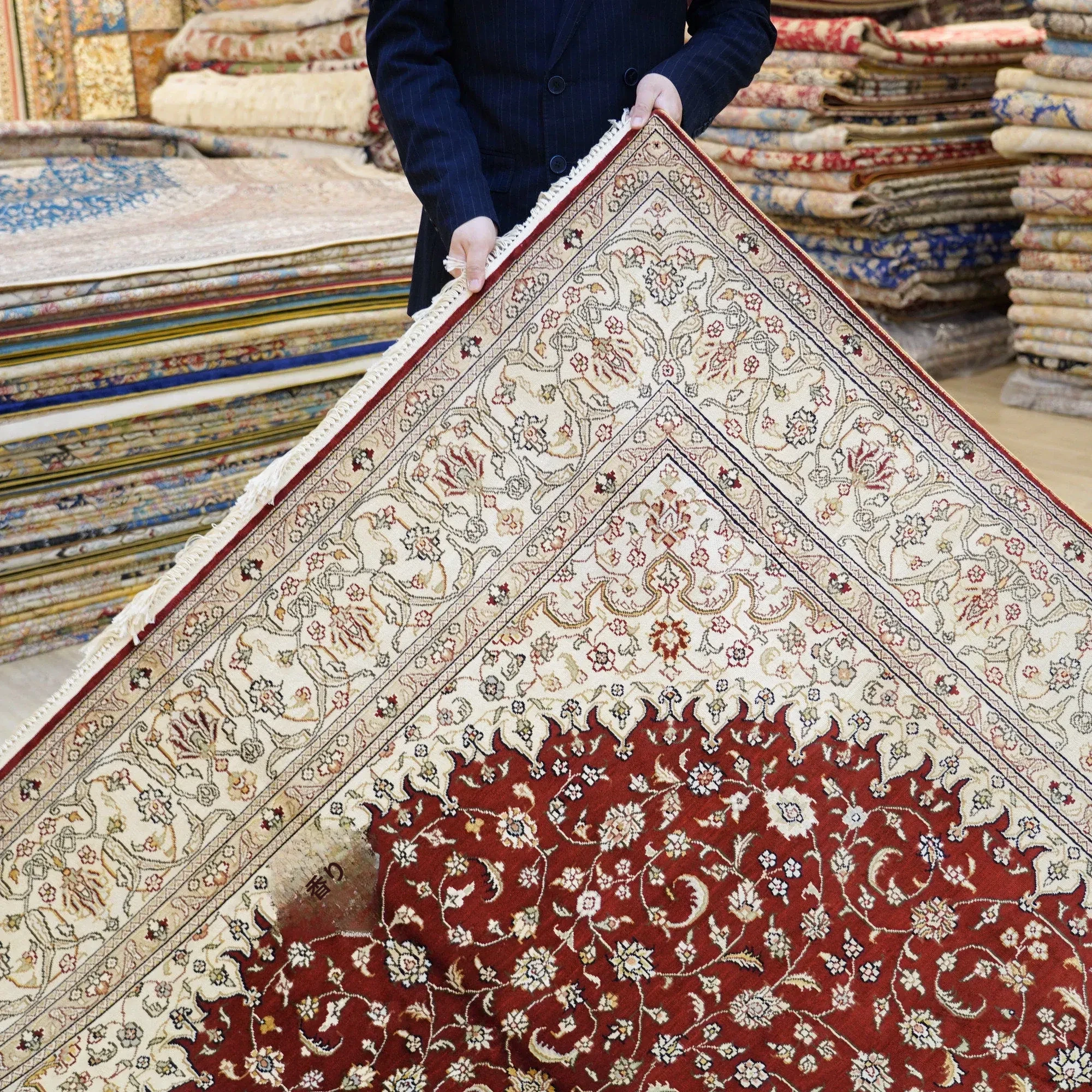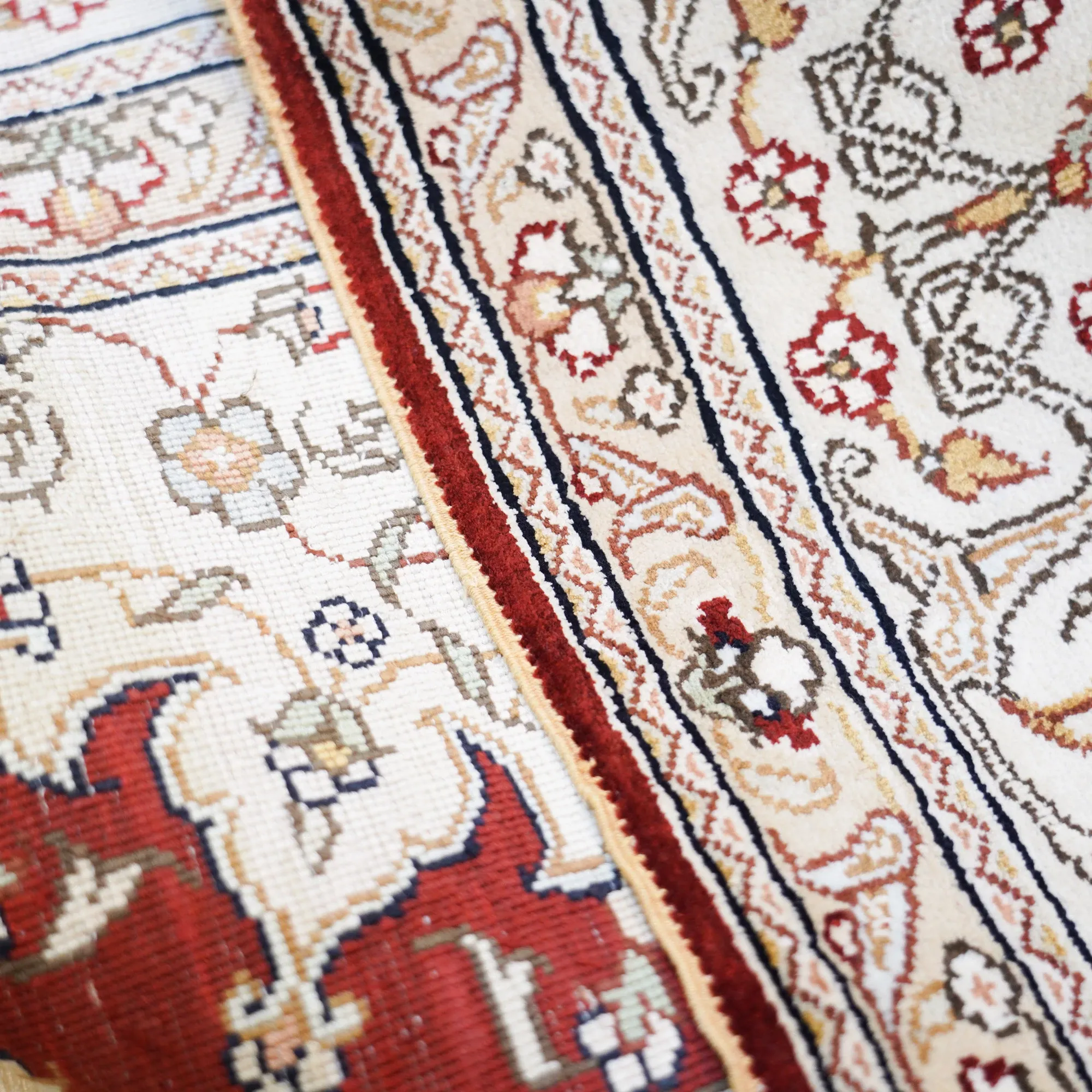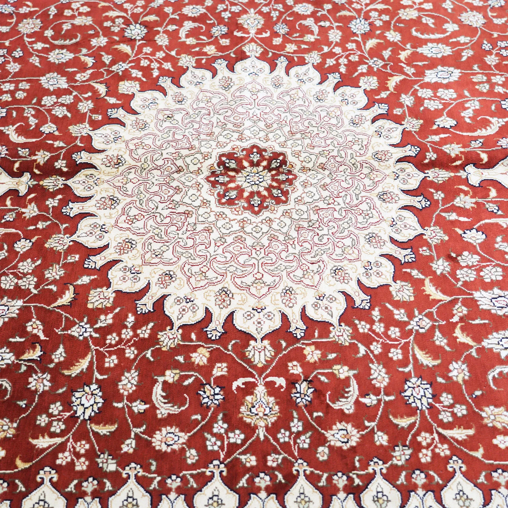 天匠手作の本格シルクラグ - 赤色クラシックペルシャ絨毯、トルコ輸出入高級カーペット、サイズ180x270cm。あなたの空間を華やかに彩る一品!