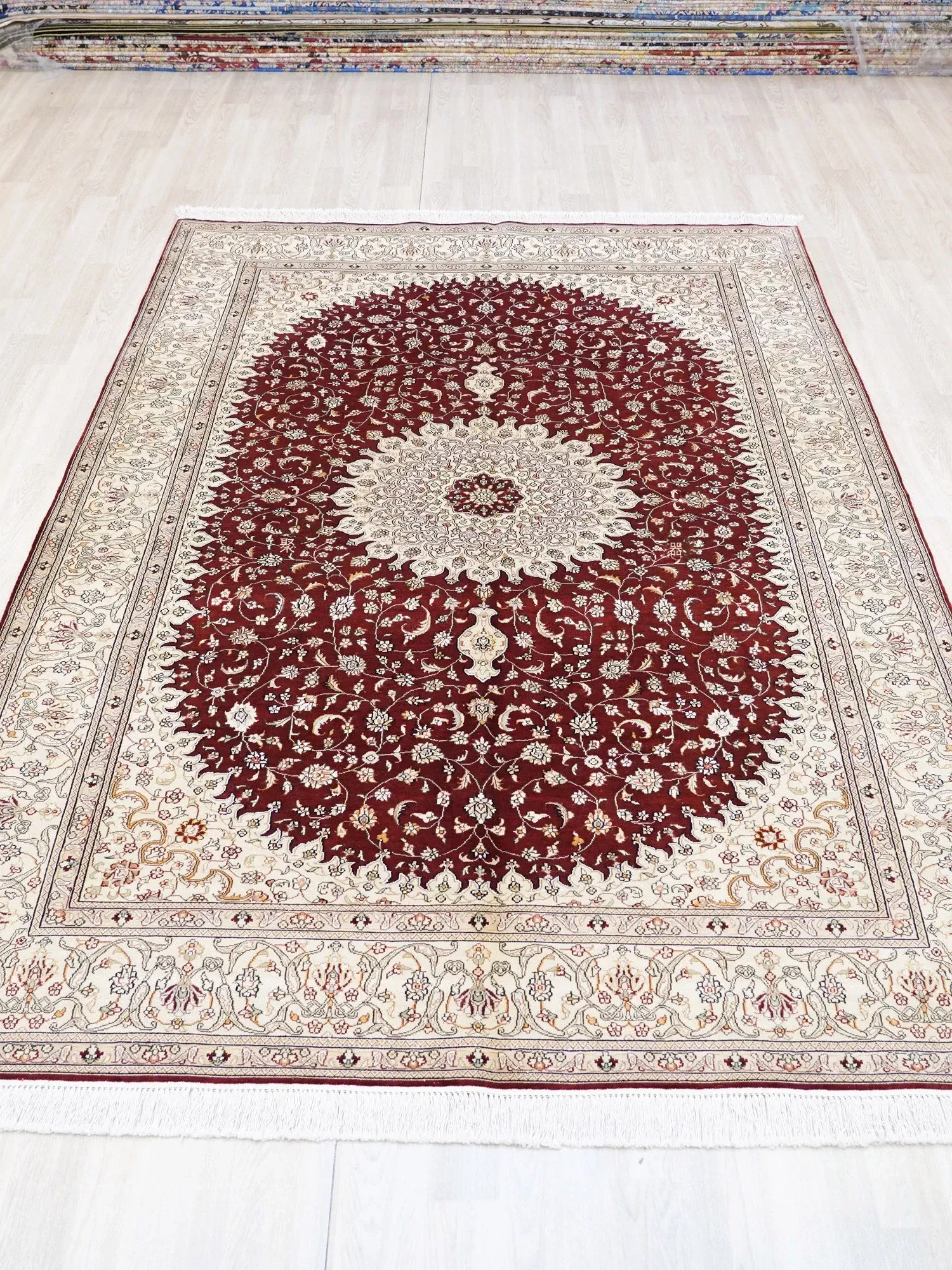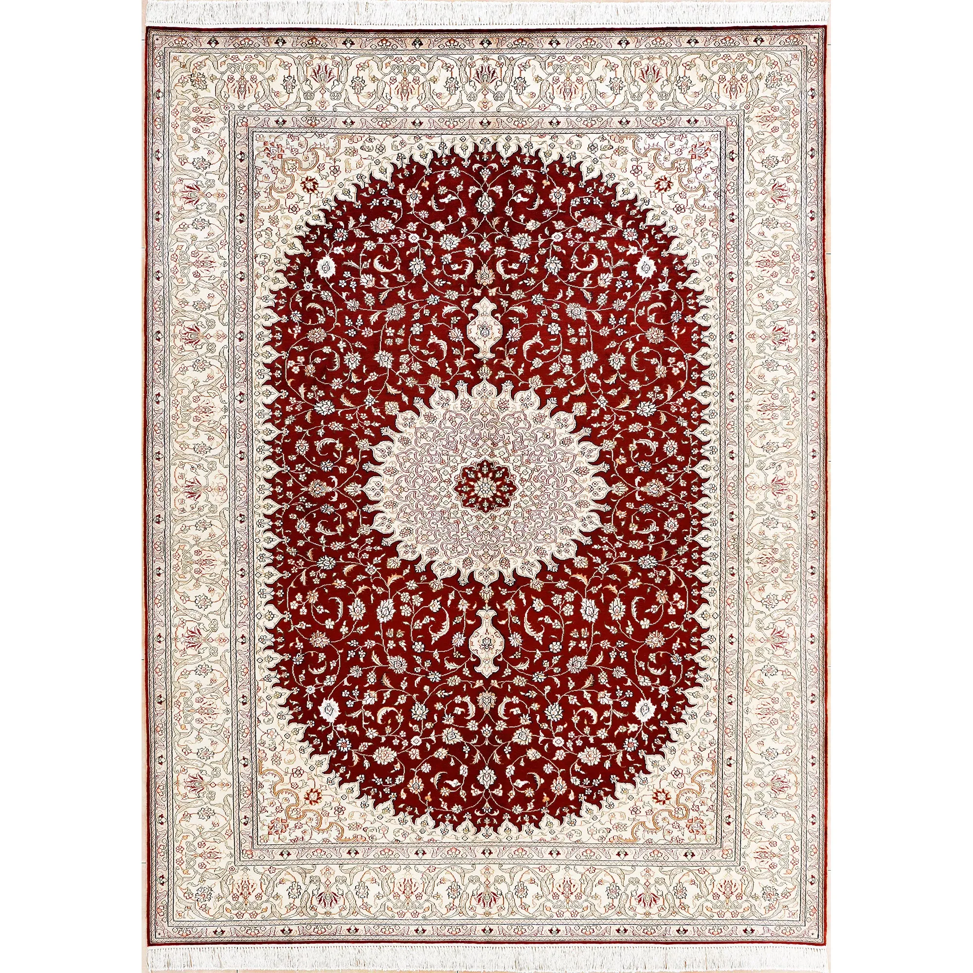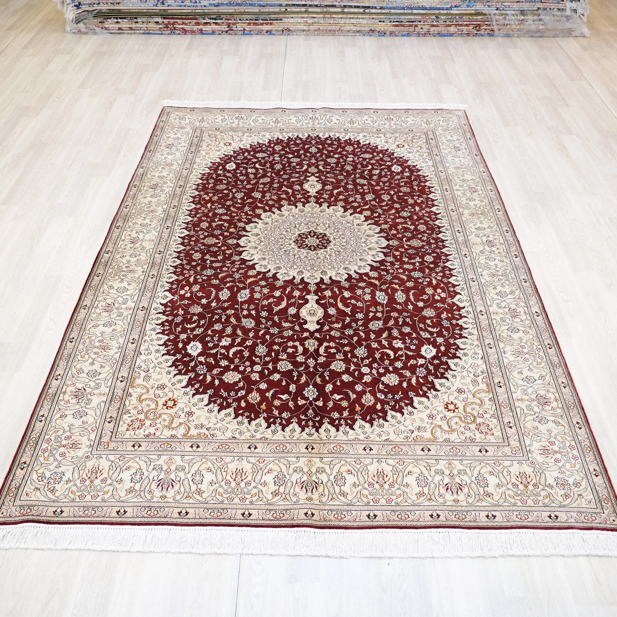 天匠手作の本格シルクラグ - 赤色クラシックペルシャ絨毯、トルコ輸出入高級カーペット、サイズ180x270cm。あなたの空間を華やかに彩る一品!