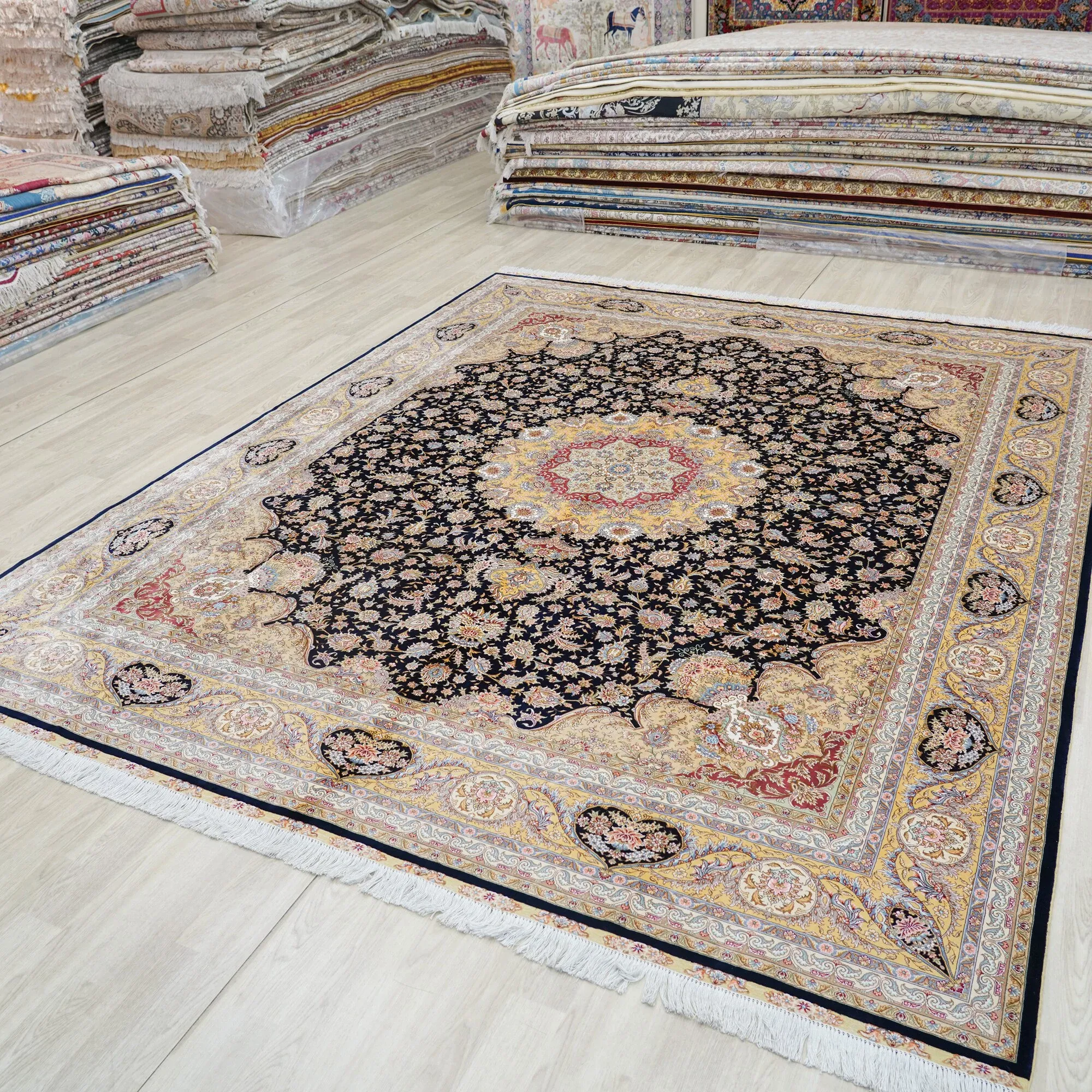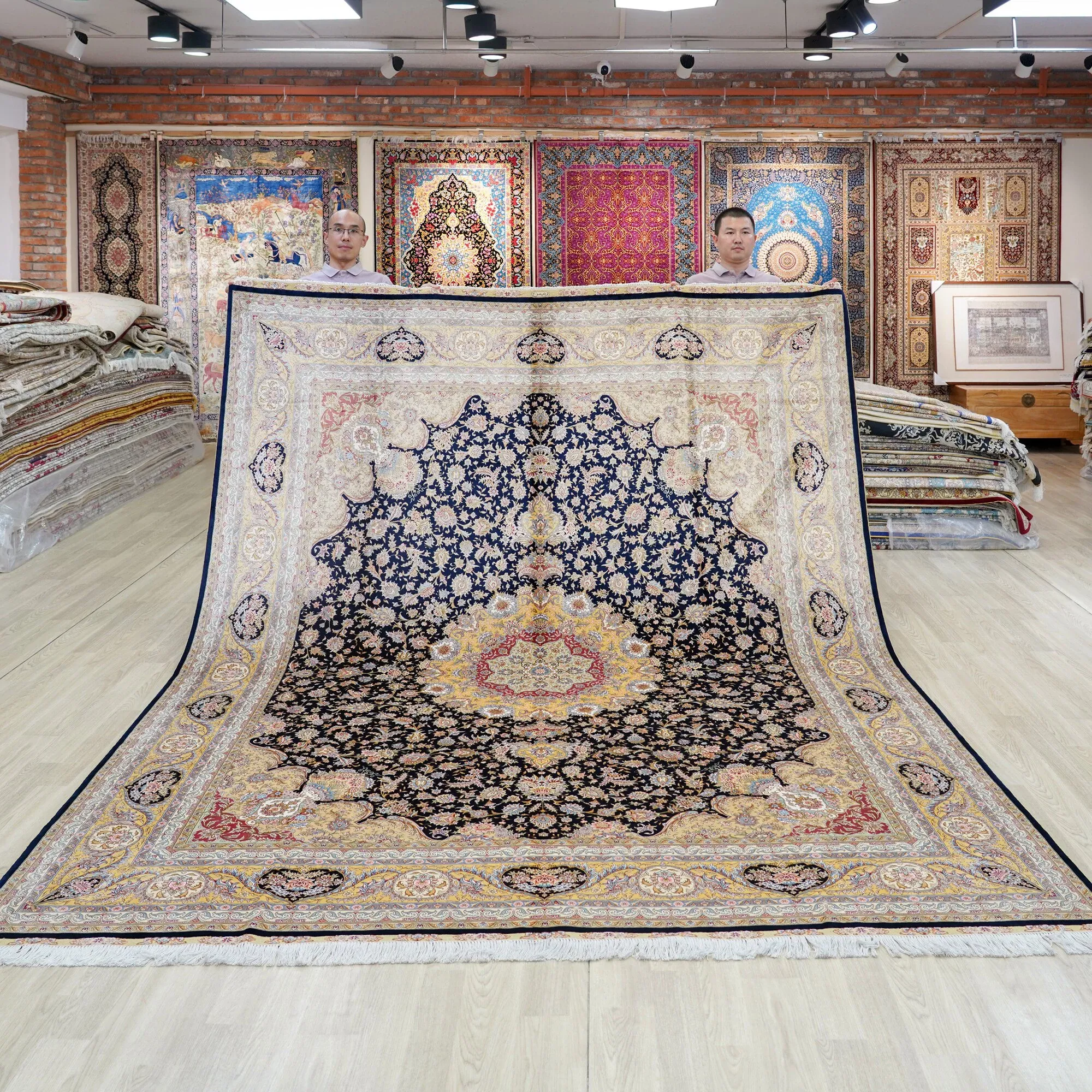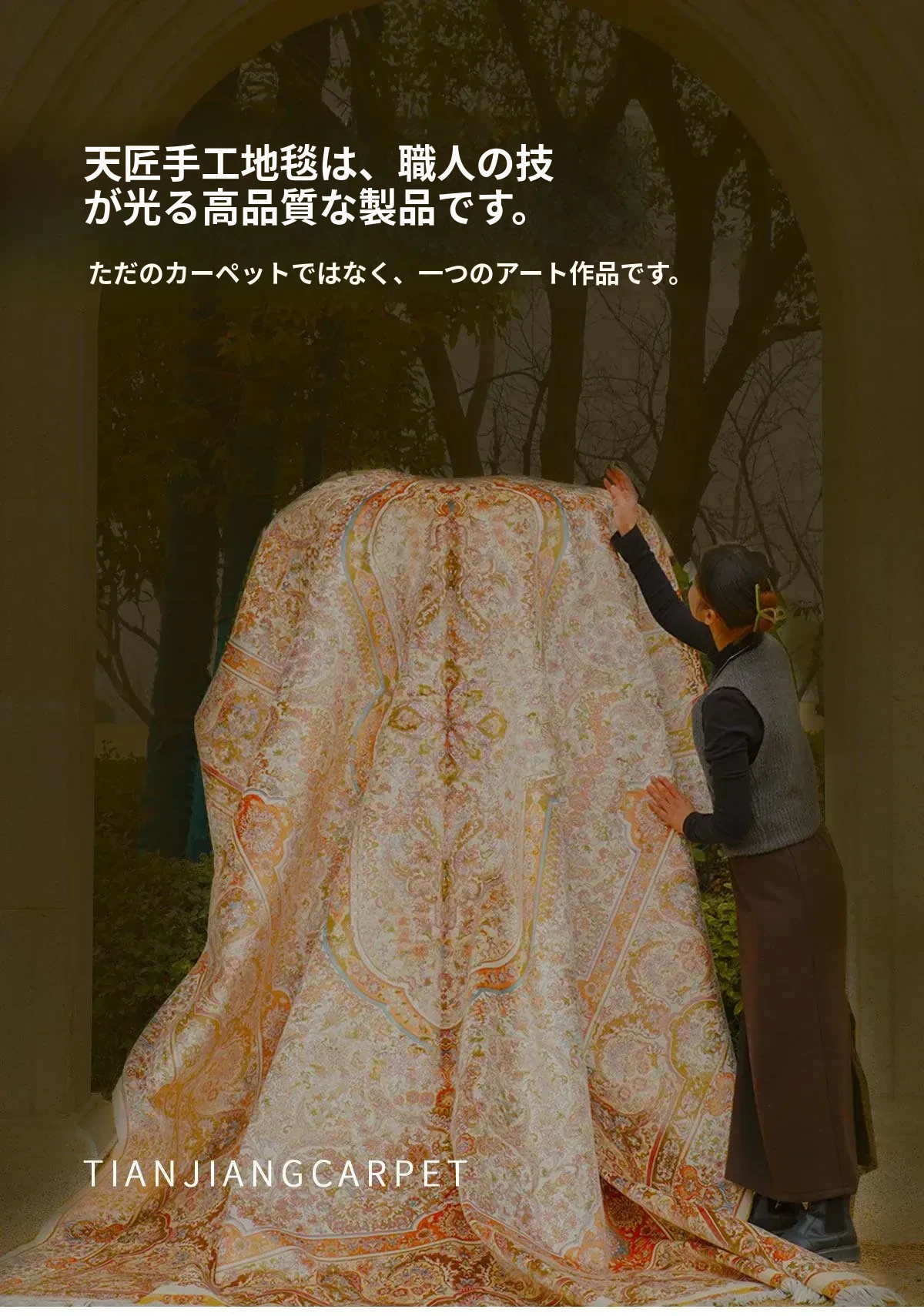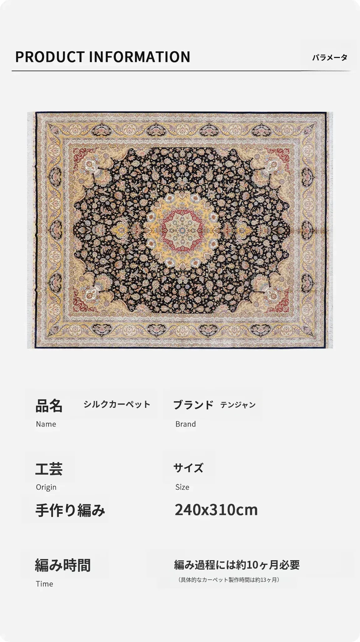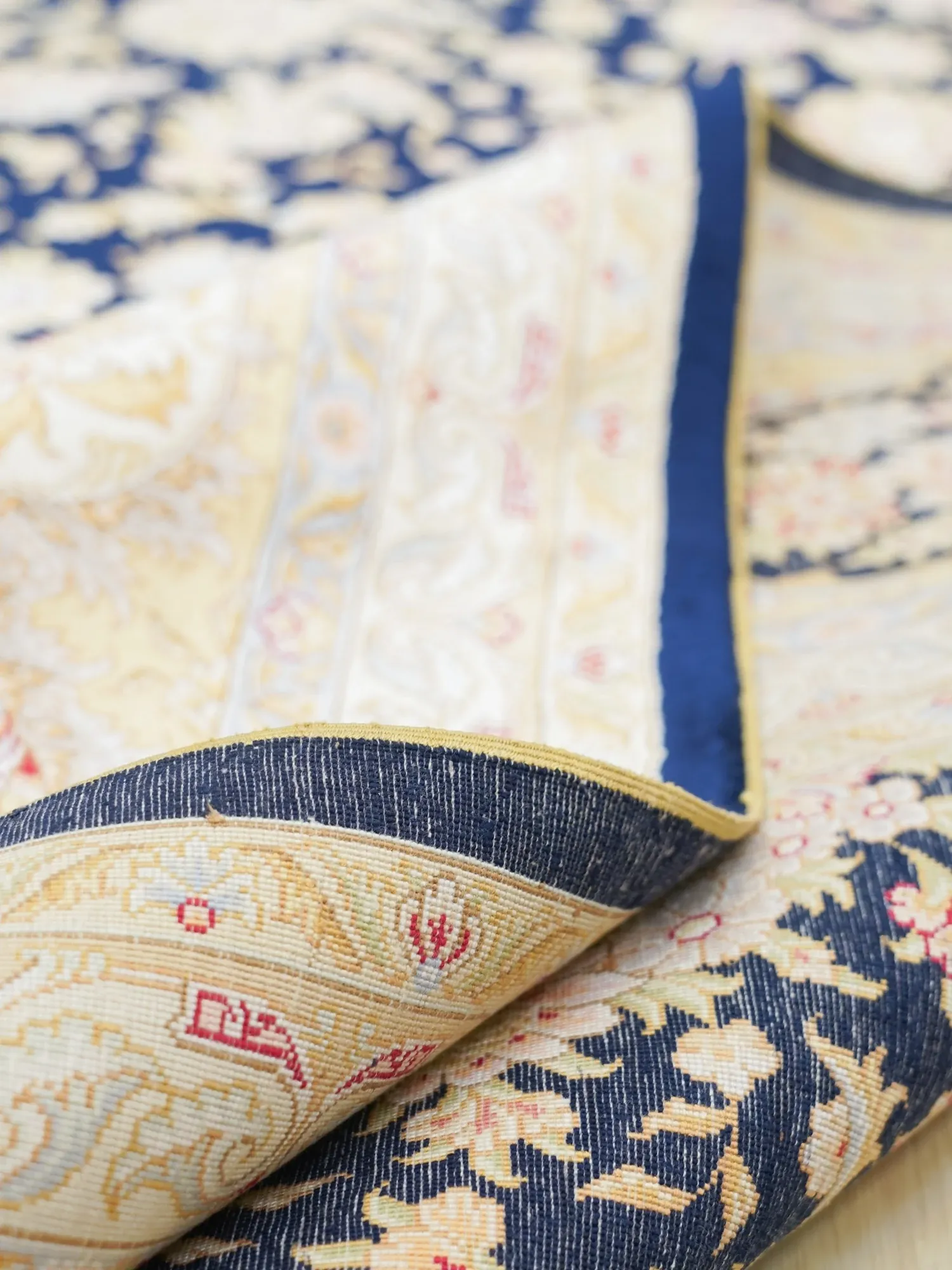 天匠手作の本物シルクカーペット - 豪邸にぴったりなクラシックブルーとコーヒーカラーの240x310cmサイズ!高級感溢れる一品で、あなたの空間を格上げします。